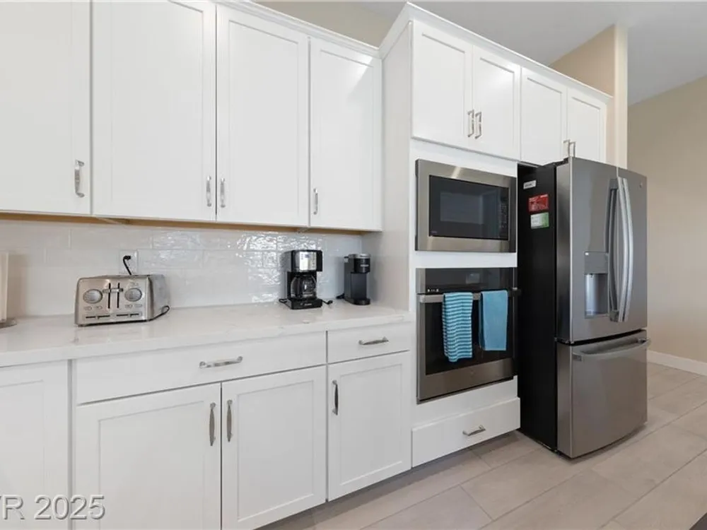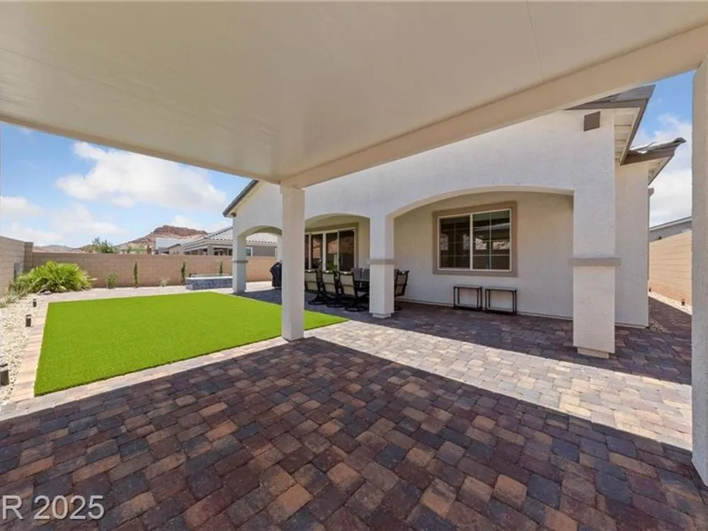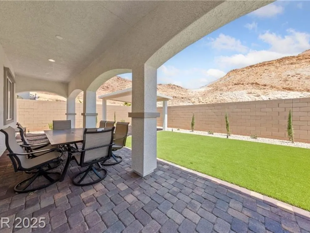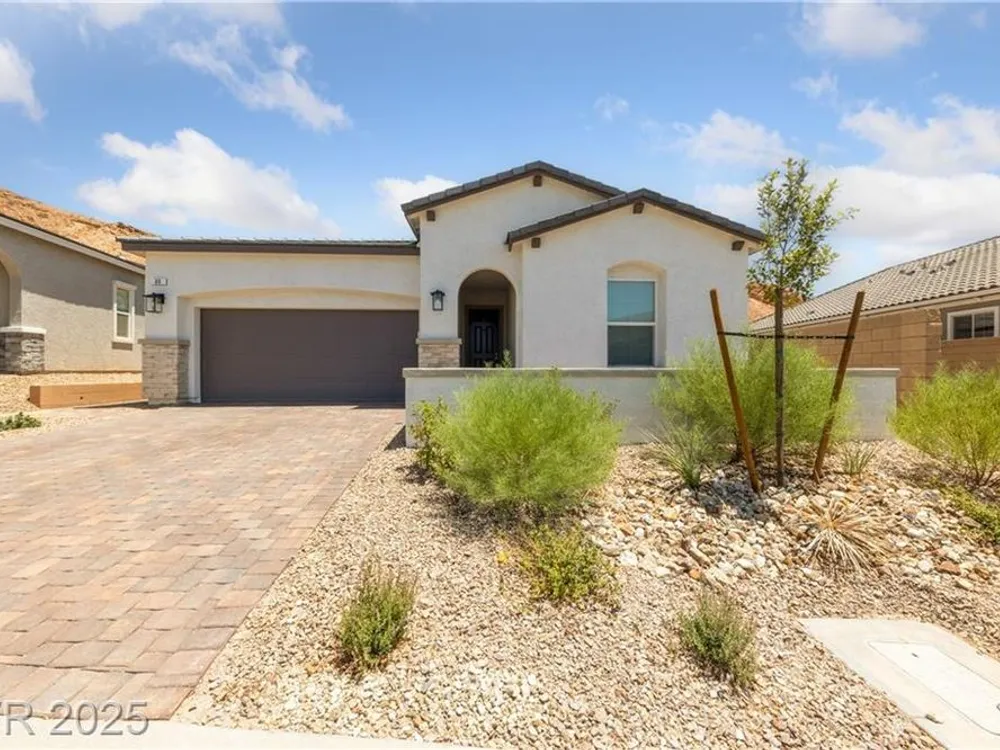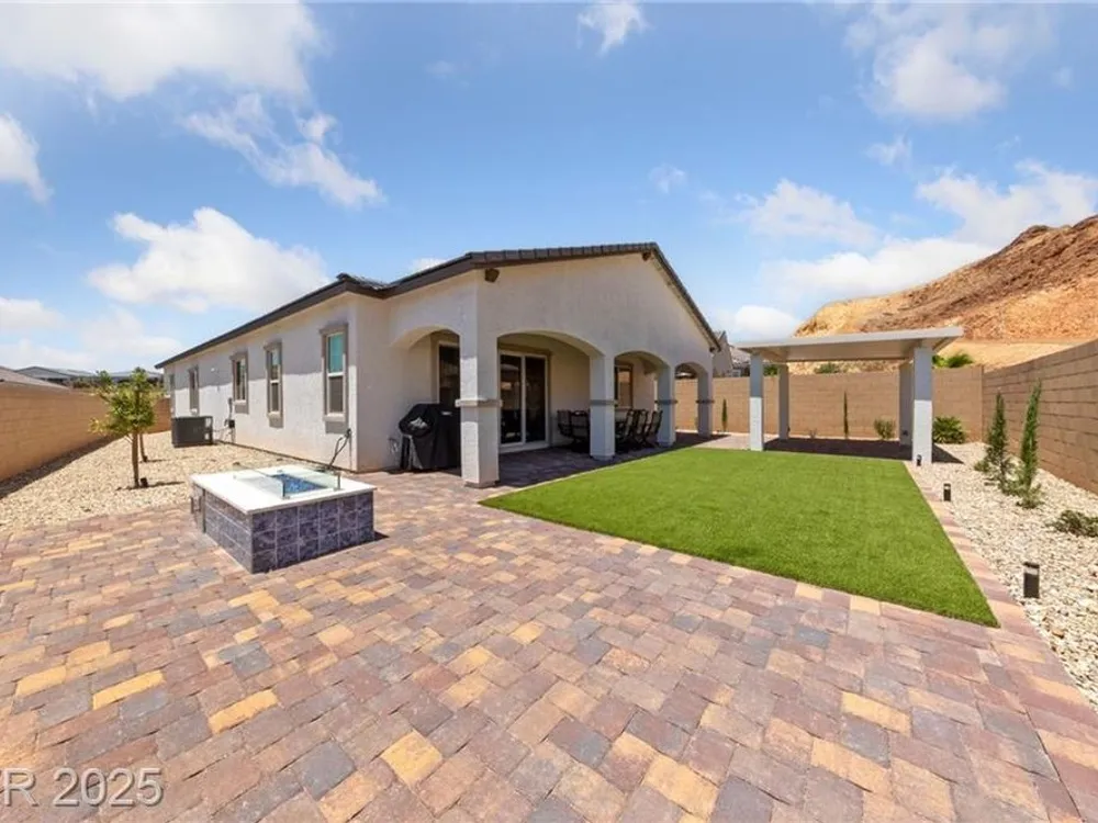 Oasis in the desert! Less than a year old. Luxurious Living at prestigious Lake Las Vegas. Scenic mountain views in a relaxed charming neighborhood. Modern style home ; Solar, Upgraded Cabinets, 10 ft ceilings, spacious quartz countertop areas in kitchen. Commercial style vent-hood over cooktop. Stainless steel refrigerator and microwave, washer & dryer all included. The backyard is exquisitely done; synthetic grass, cobblestone pavers, gas fire pit, gas valve for grills, hard-wired gazebo, pre-wired space for a private spa, and a covered patio with outdoor fans for entertaining. Ceiling fans are throughout home. 3 bedrooms and a den. Primary bedroom is spacious with walk-in closet and beautifully done modern sit-down style shower. Equipped with tankless water heater, softener and filtration system for drinking. A $25,000 transferable SportsClub Membership which features pools, Tennis & Pickle-ball, Exercise rooms, and Community Friday night happy hour festivities is included.