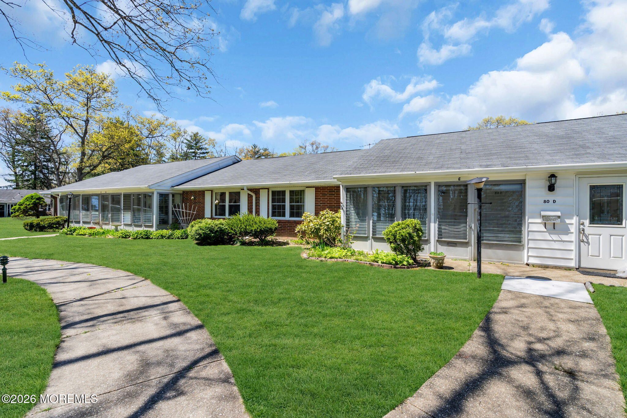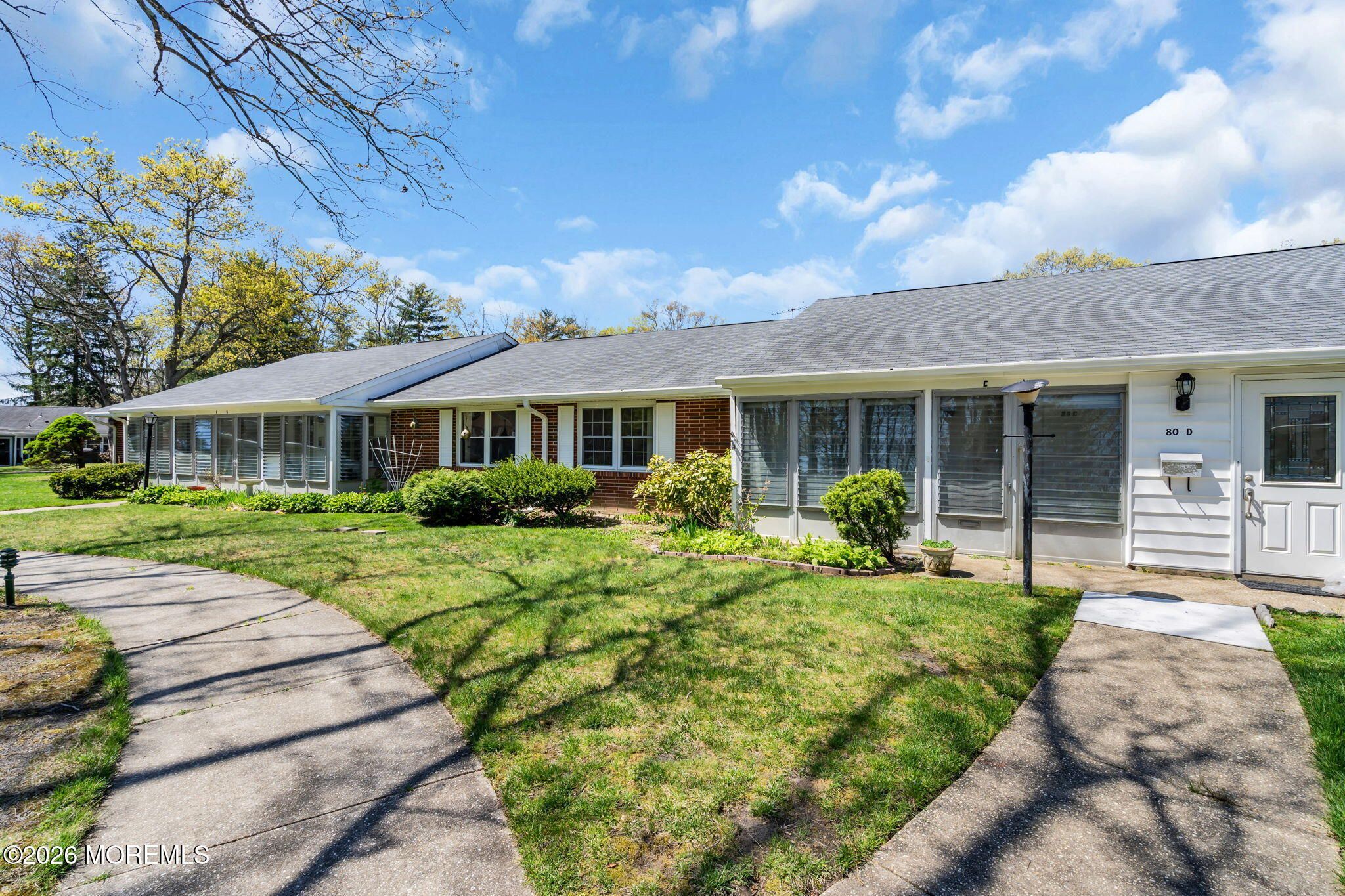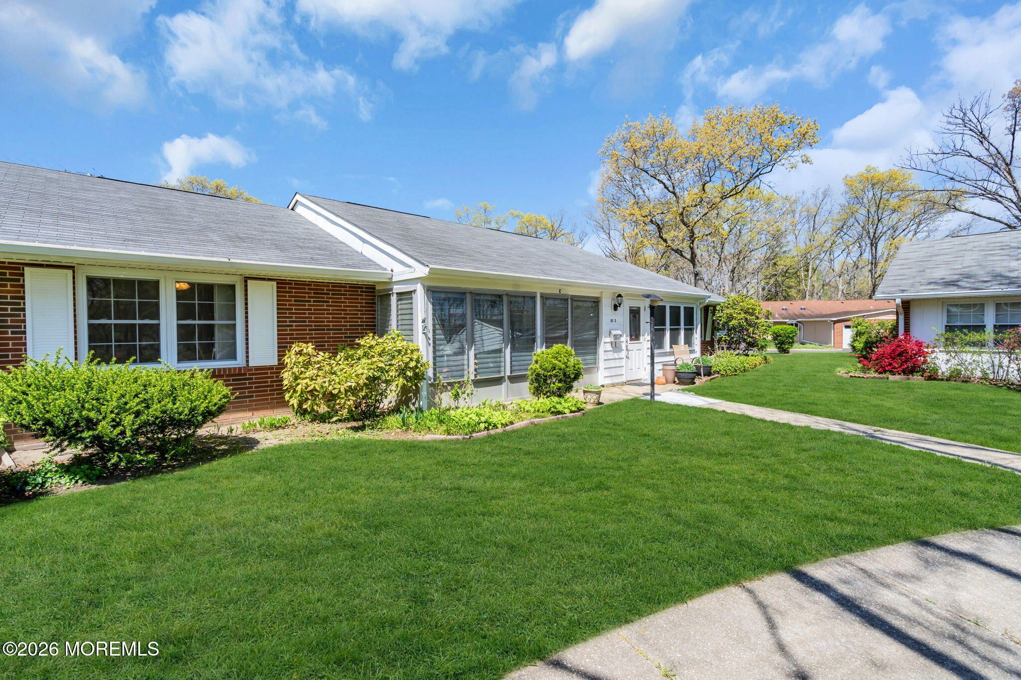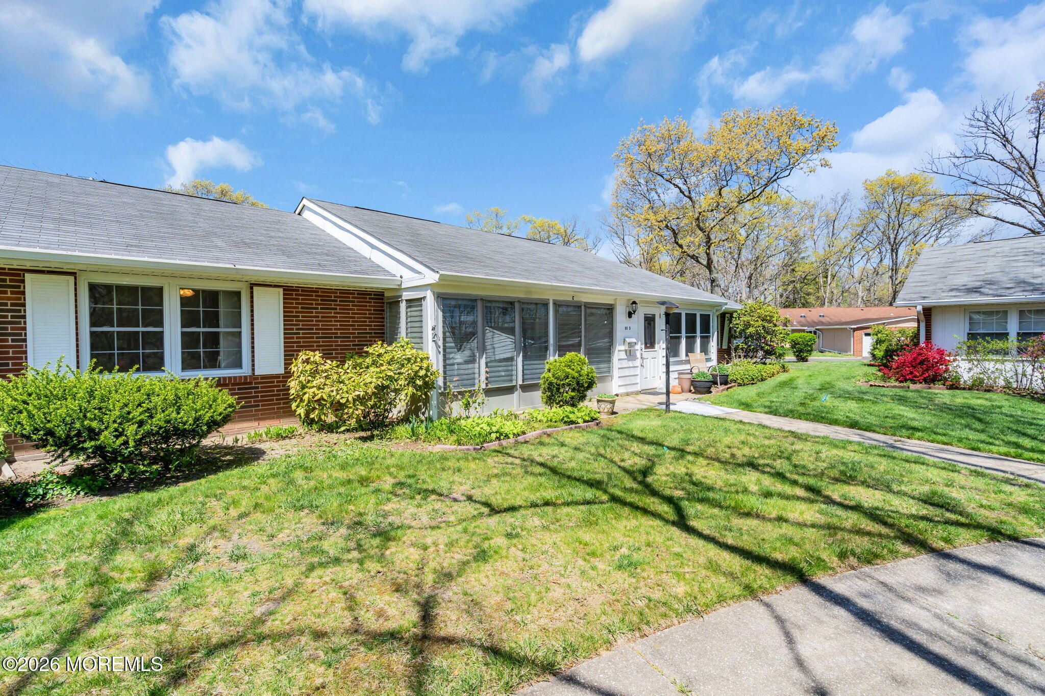 Welcome to Leisure Village, a desirable 55+ community! Marlboro model with 2 bedrooms, 1 full bath with laminated floors in the kitchen, living room, and hallways. Spacious eat in kitchen with ample room for cooking and gatherings. Bright sunroom off the front porch-perfect for three-season living and relaxation. Located right off the main circle with east access to the clubhouse, boat docks, and walking trails. Community offers many exceptional amenities, two pools, security gate, including seven freshwater lakes, two stocked with fish, kayaking, a 9 hole-golf course, gym, shuffleboard, pickleball, and so much more. Conveniently located near shopping, dining, and major roadways. Great value with endless possibilities!