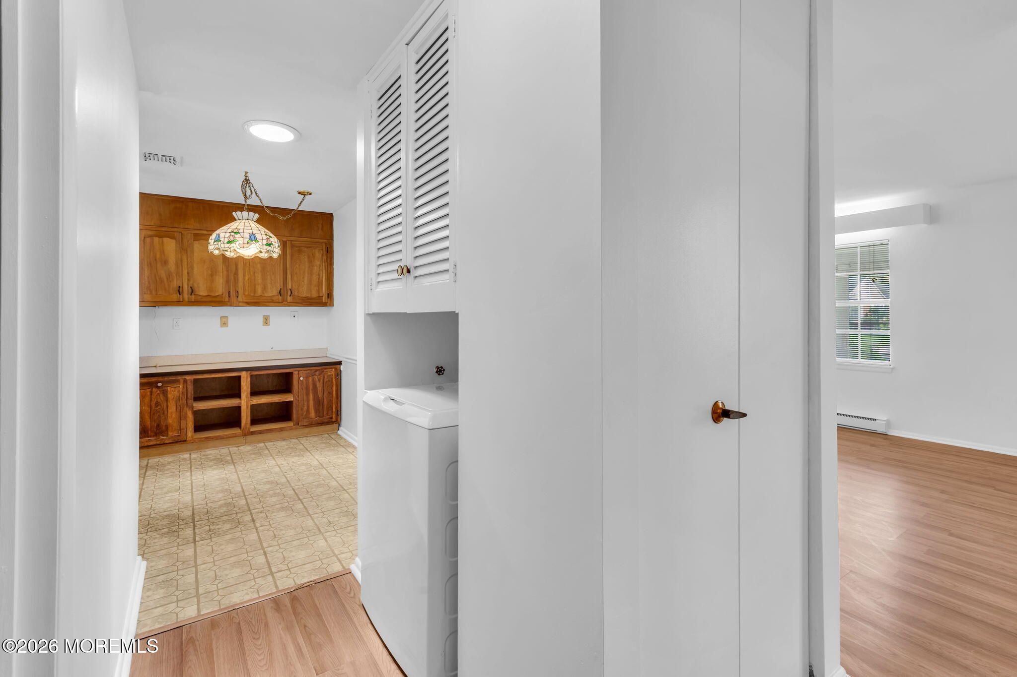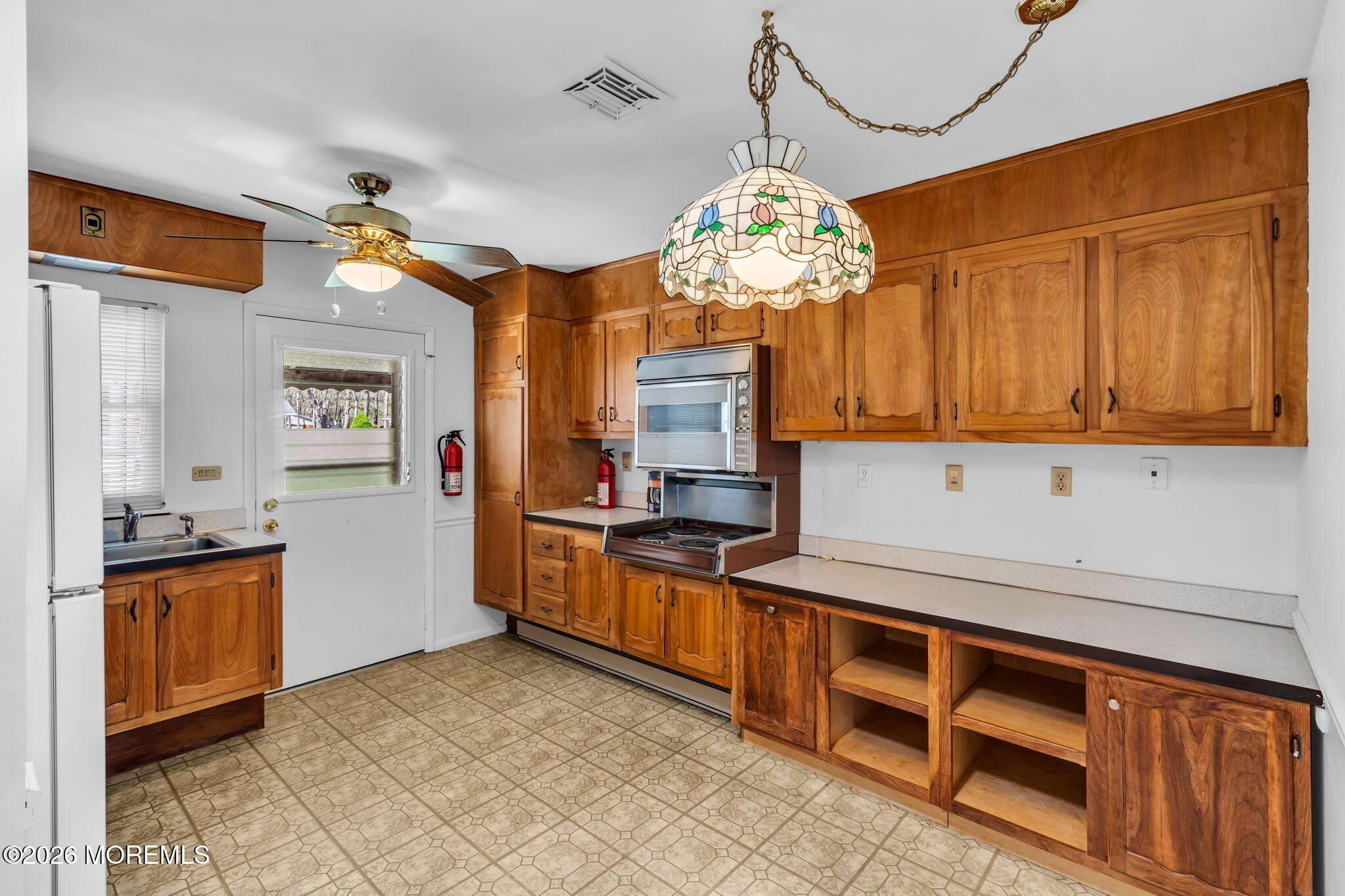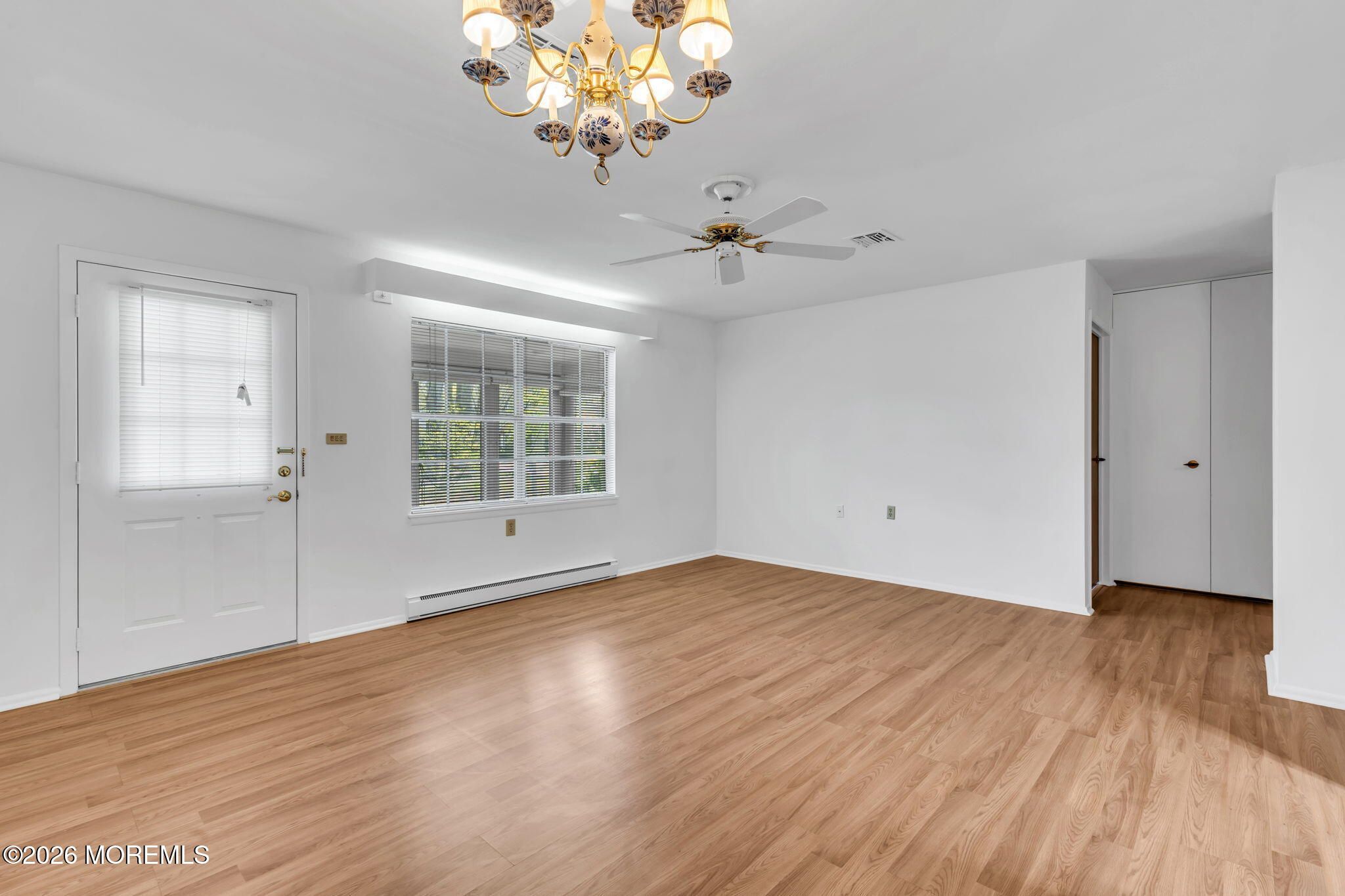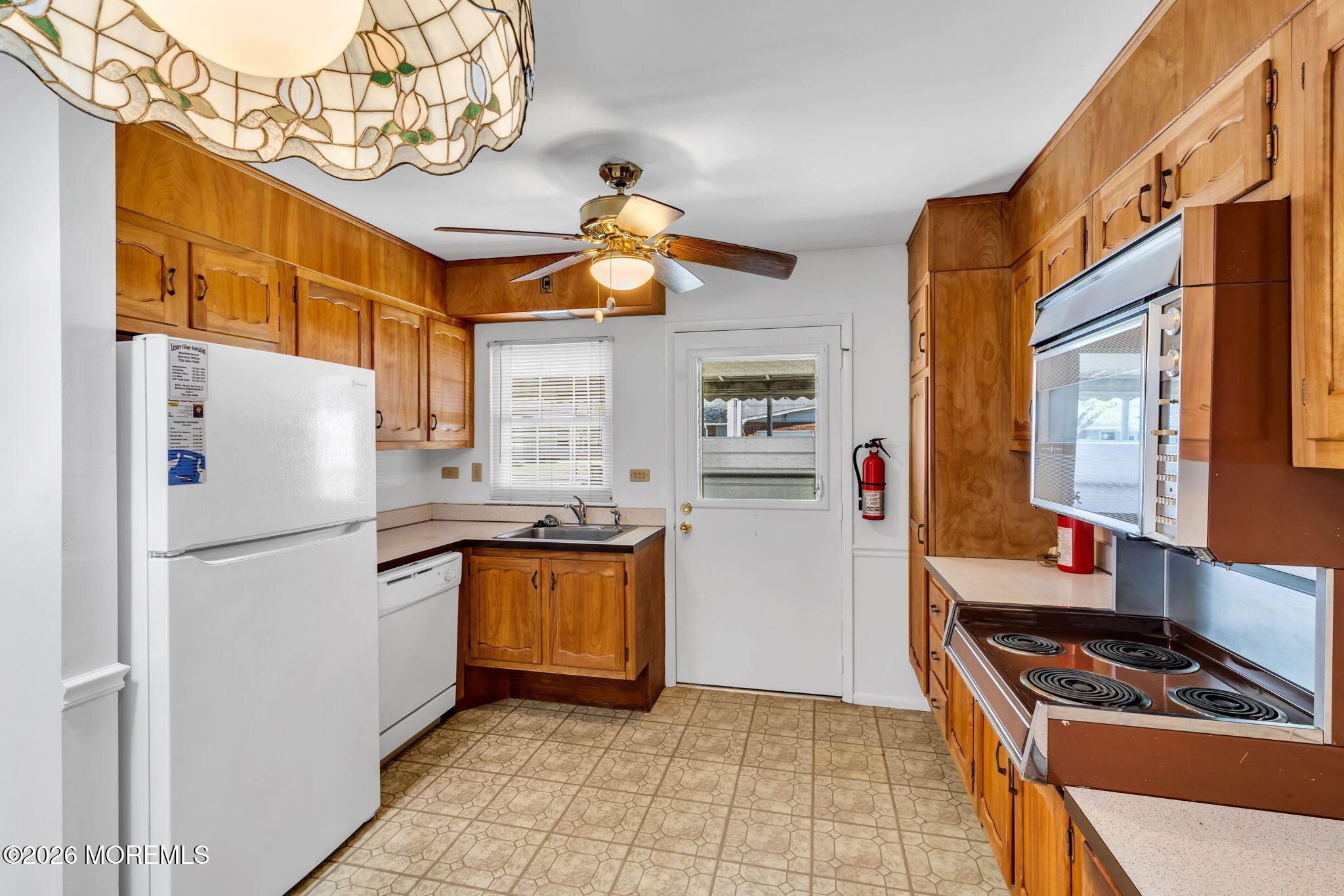 Welcome to Leisure Village, a desirable 55+ community! Marlboro model with 2 bedrooms, 1 full bath with laminated floors in the kitchen, living room, and hallways. Spacious eat in kitchen with ample room for cooking and gatherings. Bright sunroom off the front porch-perfect for three-season living and relaxation. Located right off the main circle with east access to the clubhouse, boat docks, and walking trails. Community offers many exceptional amenities, two pools, security gate, including seven freshwater lakes, two stocked with fish, kayaking, a 9 hole-golf course, gym, shuffleboard, pickleball, and so much more. Conveniently located near shopping, dining, and major roadways. Great value with endless possibilities!