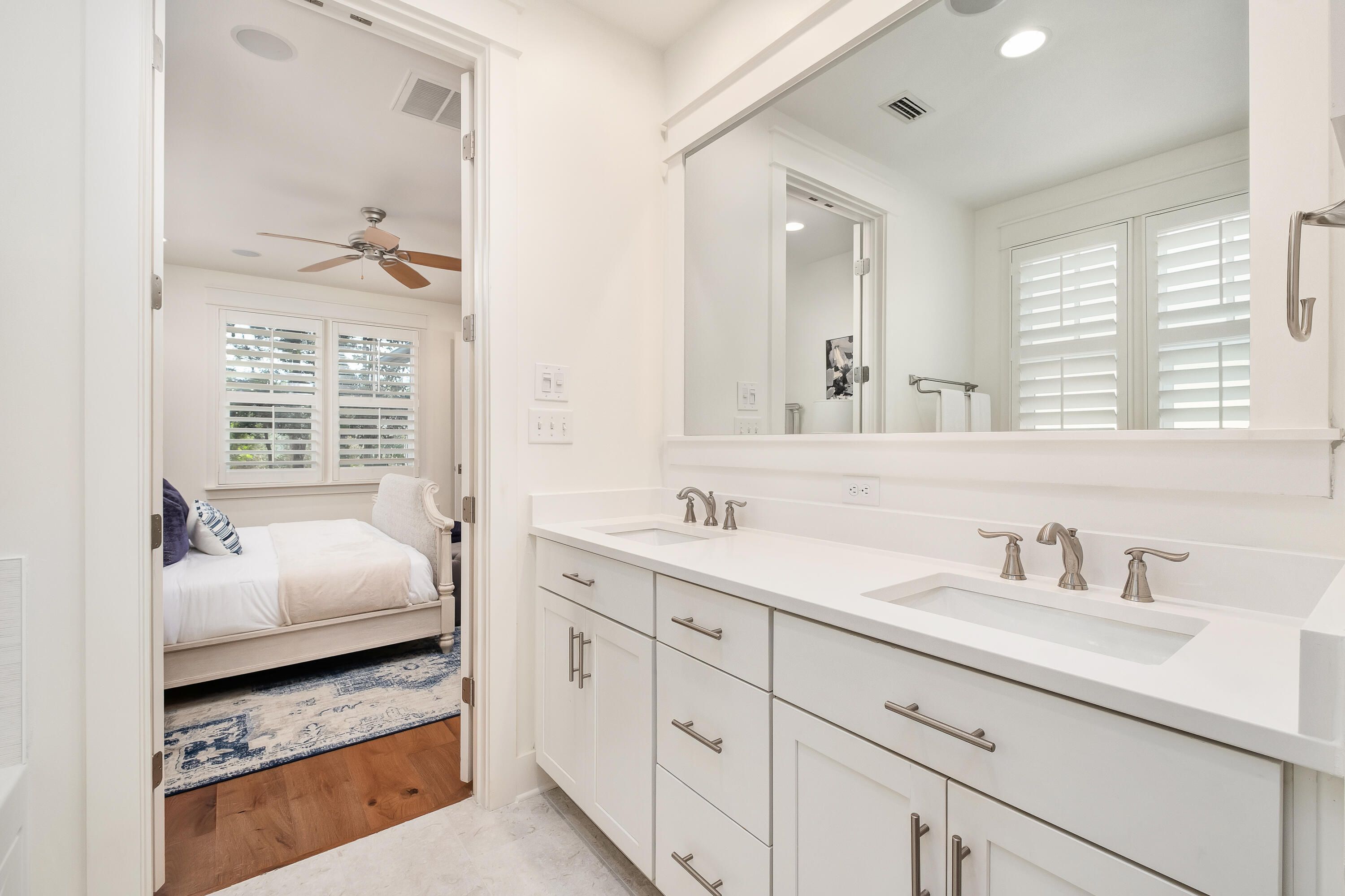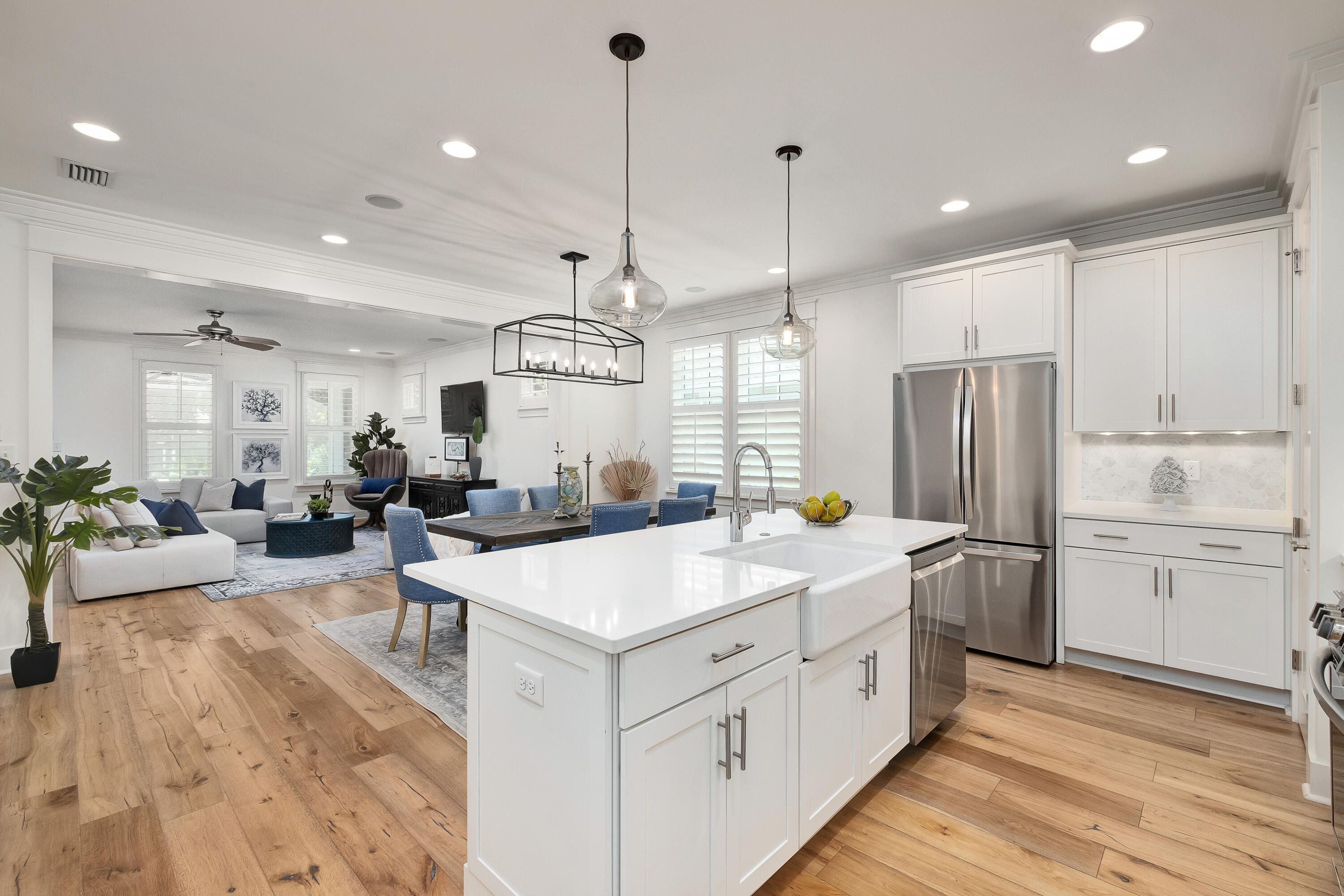 Nestled in the desirable Winter Park enclave of WaterSound Origins, this meticulously upgraded residence blends privacy, convenience, and refined contemporary design. Thoughtful improvements include fully renovated bathrooms with elegant tilework and updated plumbing fixtures, along with upgraded tile in the laundry room. The stunning kitchen showcases stainless steel appliances, quartz countertops, a designer backsplash, and a farmhouse sink--delivering both beauty and everyday functionality. Rich hardwood flooring flows throughout the home, adding warmth and sophistication, while a versatile first-floor bedroom with an adjoining bath offers the ideal space for a guest suite, private office, or flex room. Outdoors, the backyard creates a peaceful retreat perfect for entertaining or relaxing, and the screened porch invites you to enjoy the serene, natural setting year-round. Just a short stroll from the community pool, fitness center, and golf course, this home offers easy access to the very best of WaterSound Origins living. The thoughtfully designed floor plan features four spacious bedrooms, including a luxurious owner's suite complete with a spa-inspired bath. Additional highlights include epoxy-coated garage floors, custom cabinetry, and a host of quality upgrades throughout. Surrounded by picturesque, tree-lined streets, this home offers a seamless blend of modern comfort and timeless charm--perfect as a primary residence or an elegant second home. Spanning approximately 1,400 acres, WaterSound Origins is a master-planned community where short-term rentals are prohibited, offering an exceptional lifestyle centered around the Village Commons resort-style pool and fitness center, the Origins Golf Course, tennis and pickleball courts, scenic walking and biking trails, and dock access to Lake Powell. Residents also enjoy convenient access to WaterSound Town Center with Publix, dining, and retail. The sugar-white Gulf beaches and the coastal communities of Rosemary Beach, Alys Beach, and Seaside along Scenic 30A are just two miles to the south, completing the appeal of this exceptional property.