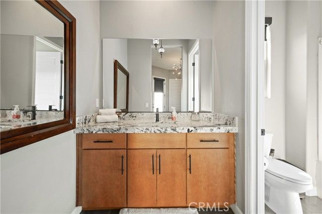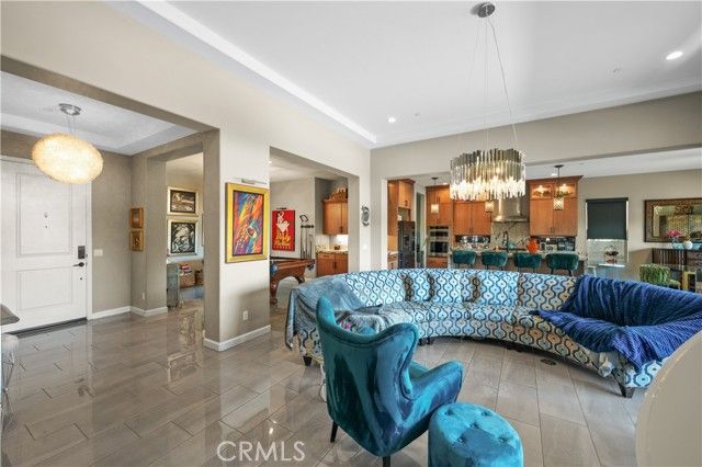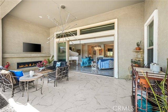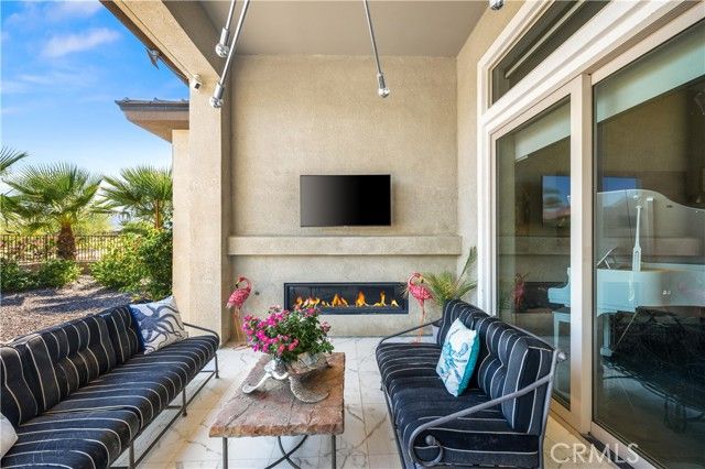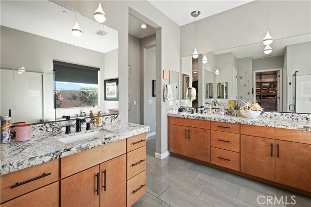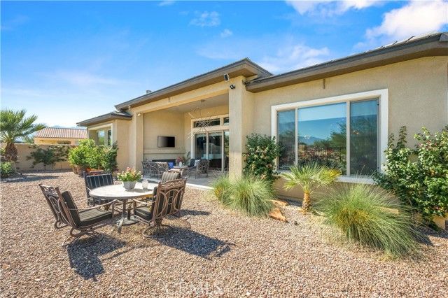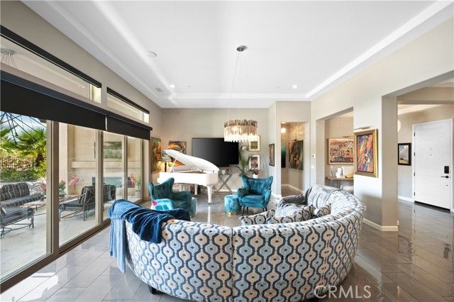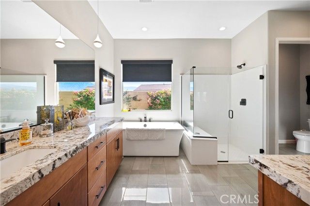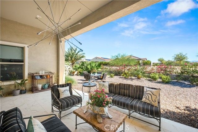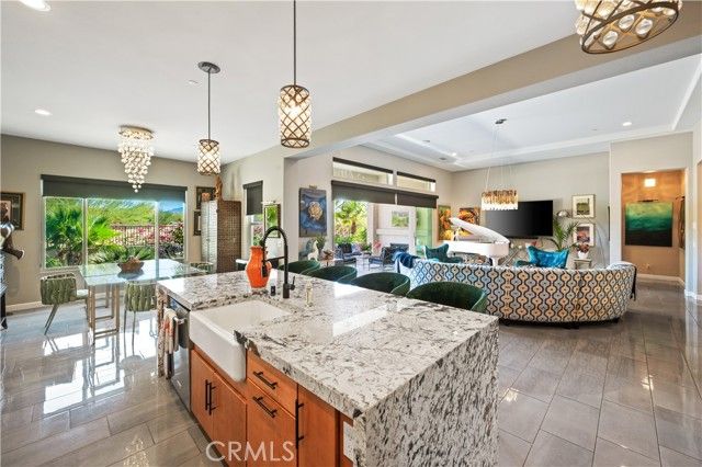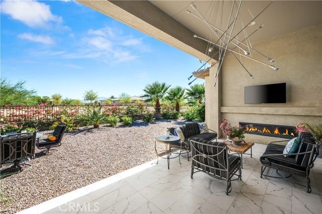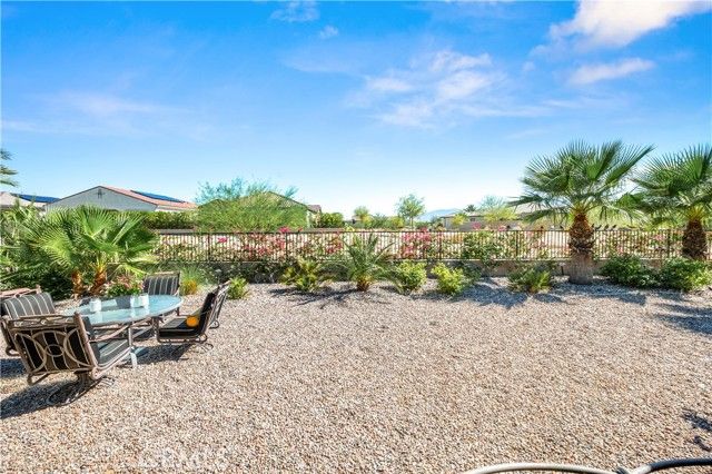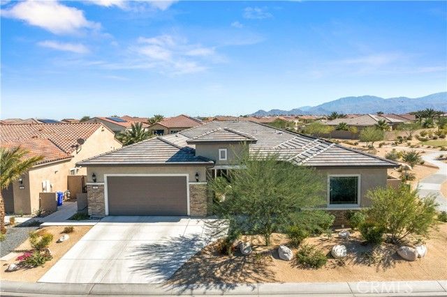 Stunning Contemporary Home in Rancho Mirage – Located in the Del Webb 55+ Community This beautifully designed single-story residence combines modern elegance with comfortable desert living, offering one of the largest floor plans and lots in the community. Soaring ceilings, sleek tile flooring, and abundant natural light create a bright and sophisticated atmosphere throughout. The solar panels are fully paid off, providing substantial saving on electricity bills. The gourmet kitchen is appointed with fully upgraded custom cabinetry, a waterfall-edge granite island, and premium stainless steel appliances—perfect for both everyday living and entertaining. An extended dining area provides additional space for gatherings, while the expansive great room features a designer fireplace, stylish expensive lighting, and seamless indoor-outdoor flow through sliding glass doors to the covered patio and landscaped backyard. The luxurious primary suite offers a serene retreat with a spa-like bath, dual vanities, a custom build walk-in closet, and a bay window that enhances both light and space. The second bedroom can function as a casita, and another additional rooms provide flexibility for guests or a home office. it is possible to bring the house to have 3 bedrooms. A rare three-car garage, compared to the standard two-car design in most homes here, adds valuable convenience and storage. Low-maintenance desert landscaping completes this exceptional property. Located within the sought-after Del Webb Rancho Mirage 55+ community, residents enjoy world-class amenities including a resort-style clubhouse, fitness center, multiple pools and spas, tennis and pickleball courts, walking and biking trails, and a full calendar of social activities and events. This gated community offers not just a home, but a vibrant desert lifestyle.