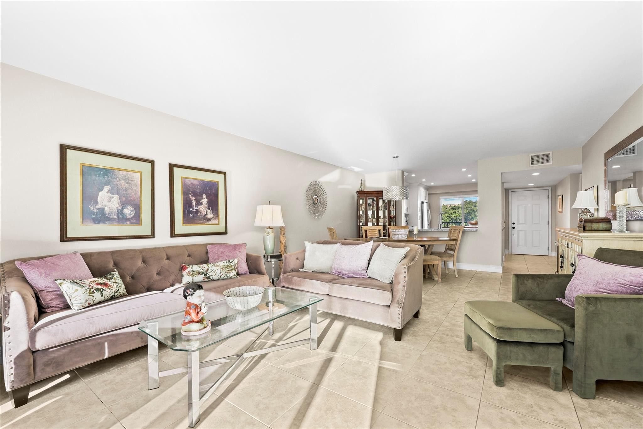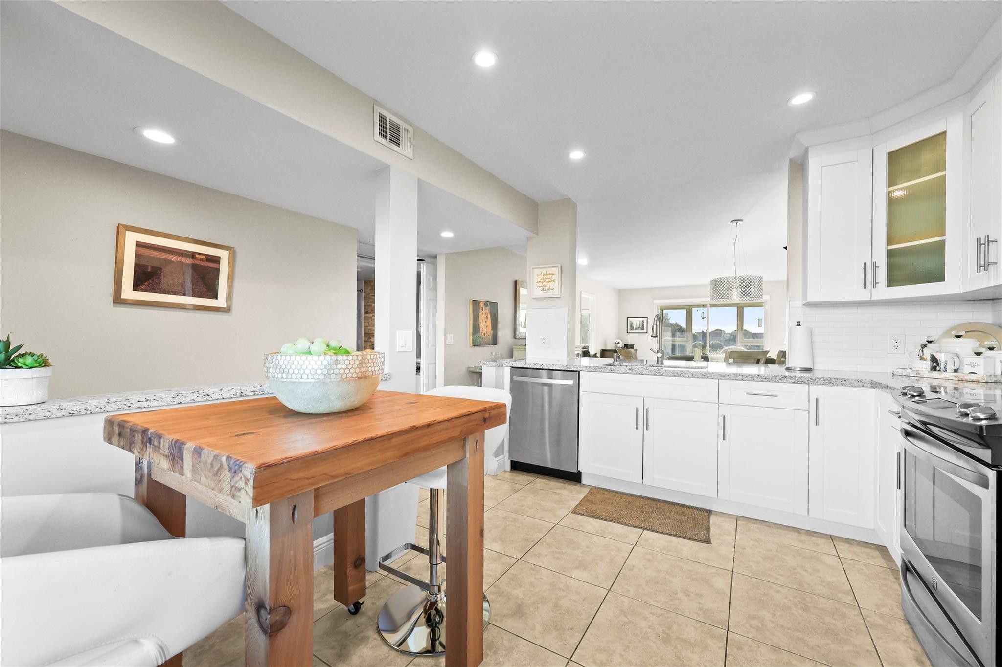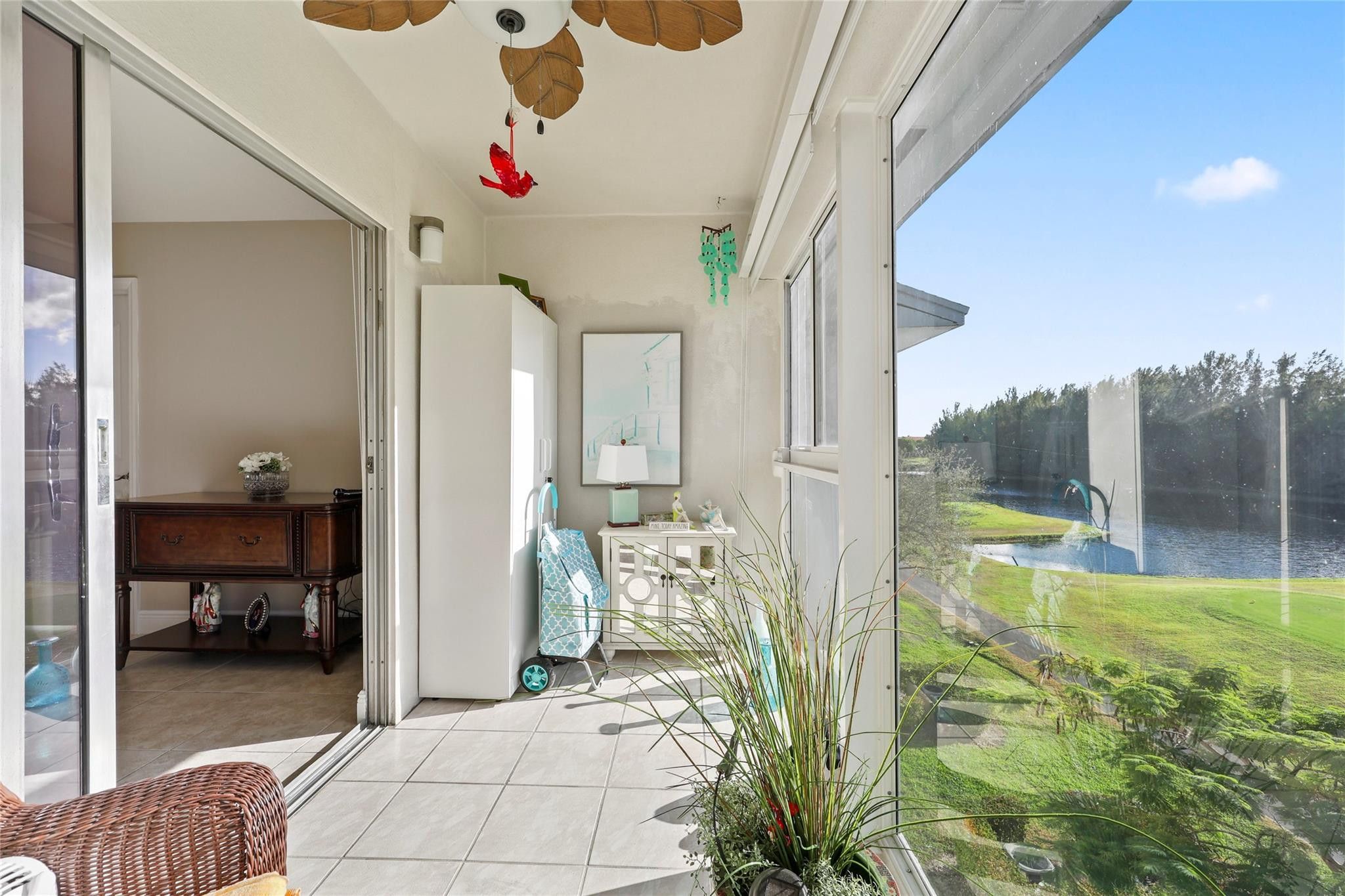 Enjoy effortless living in this beautifully updated fourth-floor 2 bedroom, 2 bathroom residence with serene golf course and lake views. The open-concept kitchen creates a bright and open concept that features upgraded stainless-steel appliances, custom cabinetry, granite countertops, and stone backsplash. Recent improvements include hurricane-impact windows, new A/C, in-unit washer/dryer, and custom blinds throughout. The spacious primary bedroom offers a walk-in closet, plus the added convenience of attic storage. Relax on your private patio or take advantage of the pool located just across the building.
