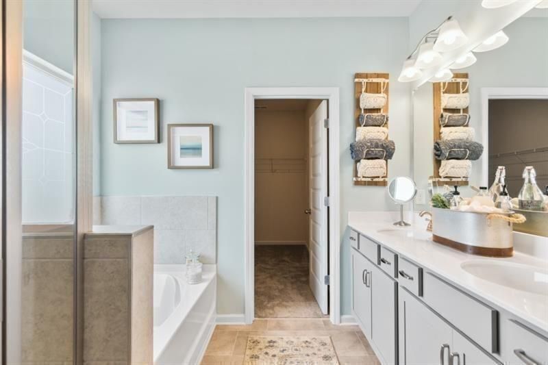 Move in August 2026! The Caldwell plan by Smith Douglas Homes is located in the beautiful Glen at Cave Springs community! This thoughtfully designed home offers the convenience of a first-floor owner’s suite, making it an excellent fit for comfortable, everyday living. At the heart of the home, the centrally located family room features a stunning linear fireplace that creates a warm and inviting focal point. The open-concept kitchen flows seamlessly into the living space, perfect for entertaining, with granite countertops, upgraded 42" upper cabinets with crown molding, and plenty of storage—ideal for any home chef. Enjoy outdoor living on the covered rear patio, perfect for grilling or relaxing, while a separate dining room provides an elegant space for more formal gatherings. The main-level primary suite is a true retreat, highlighted by a tray ceiling for added charm. Durable vinyl plank flooring runs throughout the main living areas, creating a cohesive and modern feel. Upstairs, you’ll find two spacious guest bedrooms and a versatile loft, perfect for a home office, media room, or flex space to suit your needs. Both levels feature Smith Douglas Homes’ signature 9-foot ceilings, enhancing the home’s open and airy design. Photos representative of plan not of actual home being built. Seller incentives with use of preferred lender.