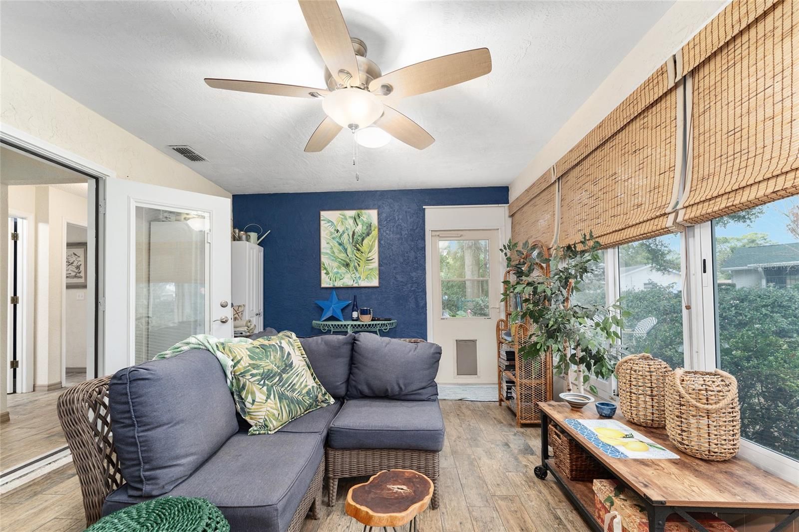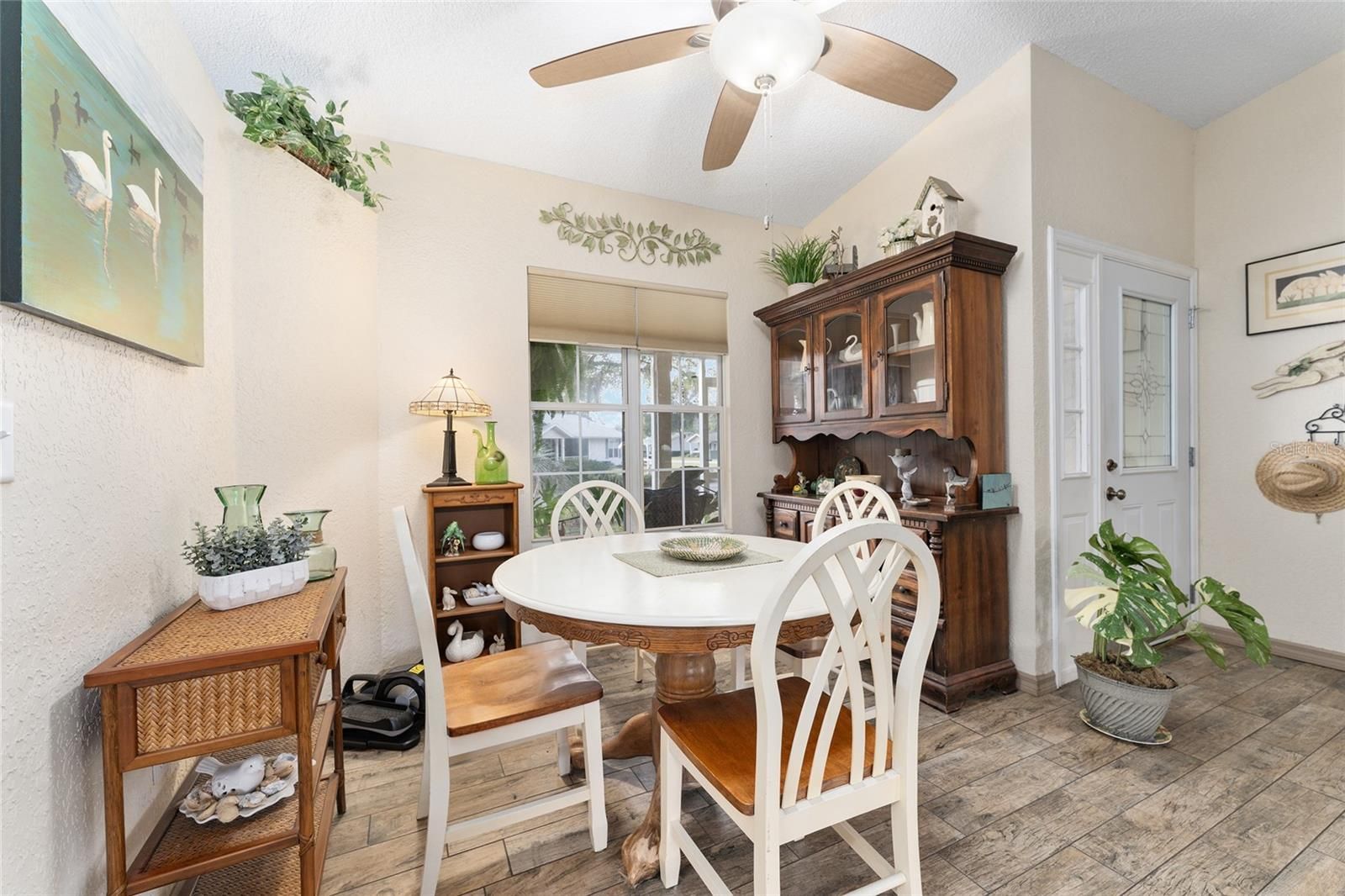 - Cathedral Ceiling(s), Ceiling Fan(s), High Ceilings, L-Shaped Dining Room, Main Level Primary, Solid-Wood Cabinets, Walk-In Closet(s), Window Treatments