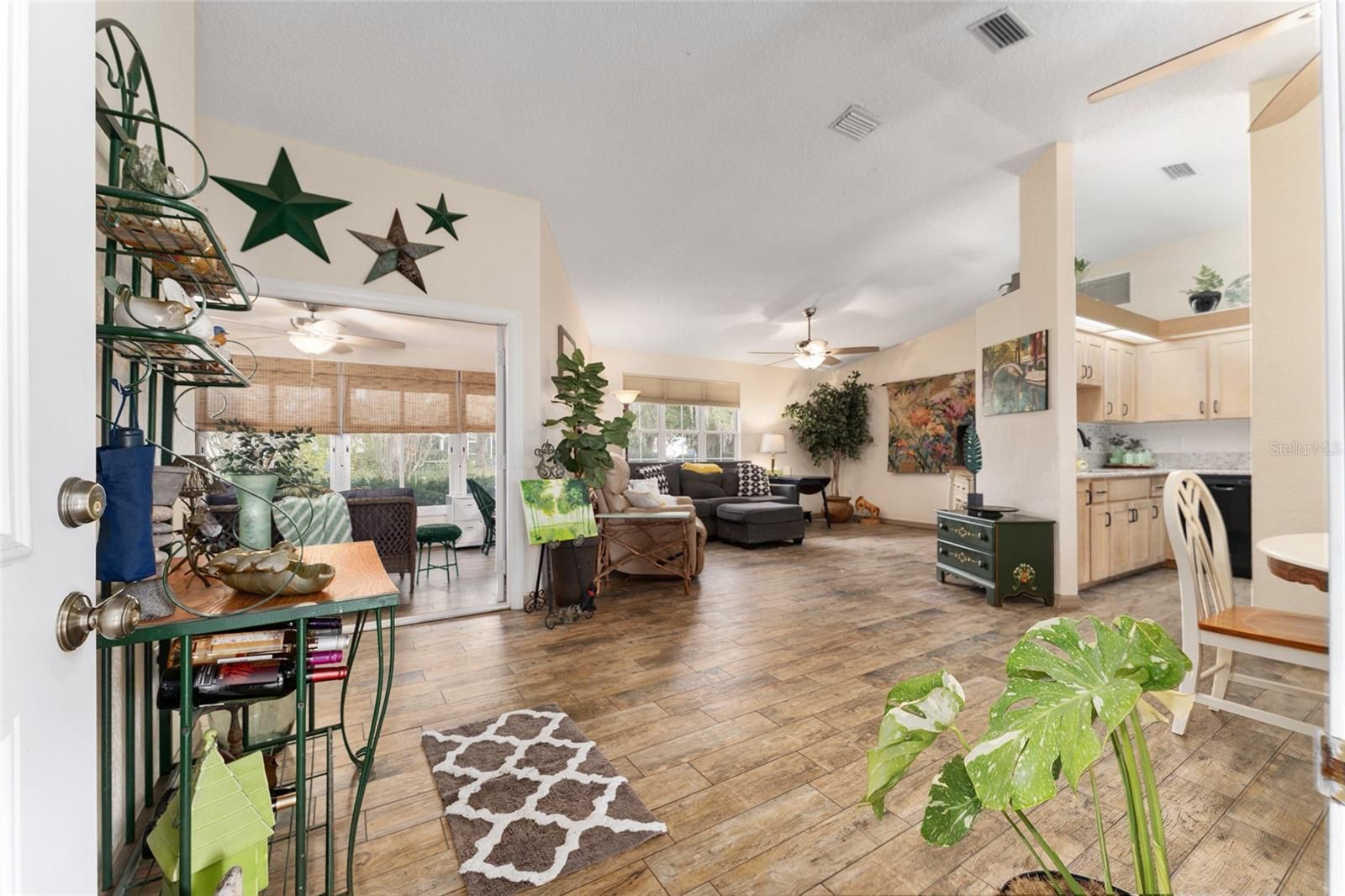 This home is nestled in the charming Oak Run neighborhood of Pleasant View, this beautiful home is ready to welcome you. Meticulously maintained, it features two bedrooms, two bathrooms, and a 2 car garage, providing 1,298 square feet of living space. The main living area boasts an open and comfortable feel making it ideal for both relaxation and entertaining. Key highlights of this beauty include a well-maintained yard, beautiful ceramic tile flooring in every room, nearly new kitchen appliances and a lovely Florida Room that’s well shaded and oh-so comfortable. Let your pets roam freely in the fenced in back yard. The lot next door has mature trees and will never be occupied ensuring your privacy and contentment for years to come.. There really is just too much to mention. Stay active with a variety of recreational options, such as shuffleboard, horseshoes, tennis, pickleball courts and a billiards room. Oak Run also has six pools, five hot tubs, two updated fitness centers, a ceramics studio, a library, over 100 clubs, and a beautiful dog park accommodating both small and large breeds. Conveniently situated near SR 200 and I-75, shopping centers, amenities, restaurants, and an array of medical facilities, this property is just a short drive from Downtown Ocala and within 1-2 hours of Gainesville, The Villages, Daytona, Tampa, or Orlando, ensuring easy access to airports, theme parks, and some of Florida's most stunning beaches. This is a fantastic opportunity to embrace resort-style living! Don’t let this beautifully comfortable home slip away! Schedule your showing today and explore everything this property and the Oak Run community have for your upgraded lifestyle!