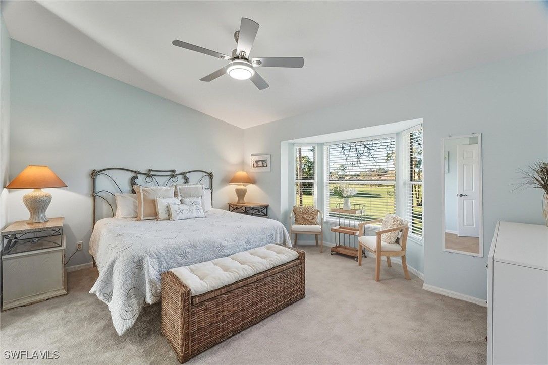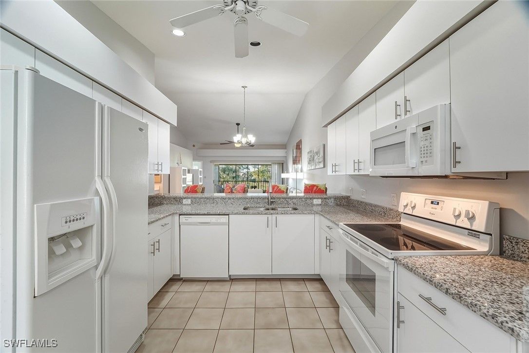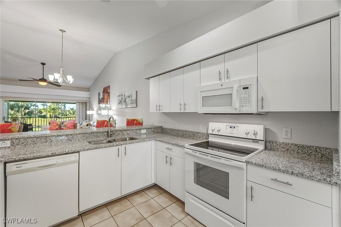 The Verandas at Tiger Cove in extraordinary Lely Resort offer a perfectly maintained three-bedroom, two bath condominium with dual lanai and beautiful views. Overlooking the Flamingo golf course, this lovely home includes sunset views. Thoughtfully designed, this residence features both a welcoming front entry lanai and an additional lanai off the living area. All complemented by vaulted ceilings that create a bright and airy atmosphere. The kitchen is open and inviting, flowing seamlessly into a spacious eating area ideal for everyday living or entertaining. A charming bar area and new flooring, add both style and functionality. Numerous additional features include the efficient laundry area, dual vanities and large walk in closets. Residents enjoy an exceptional lifestyle with the option to join the renowned Players Club and Spa, featuring an extraordinary clubhouse, pickleball, tennis, and resort style amenities. With low HOA fees and close proximity to shopping, dining and everyday conveniences, this home offers comfort, elegance and an enviable resort living experience.