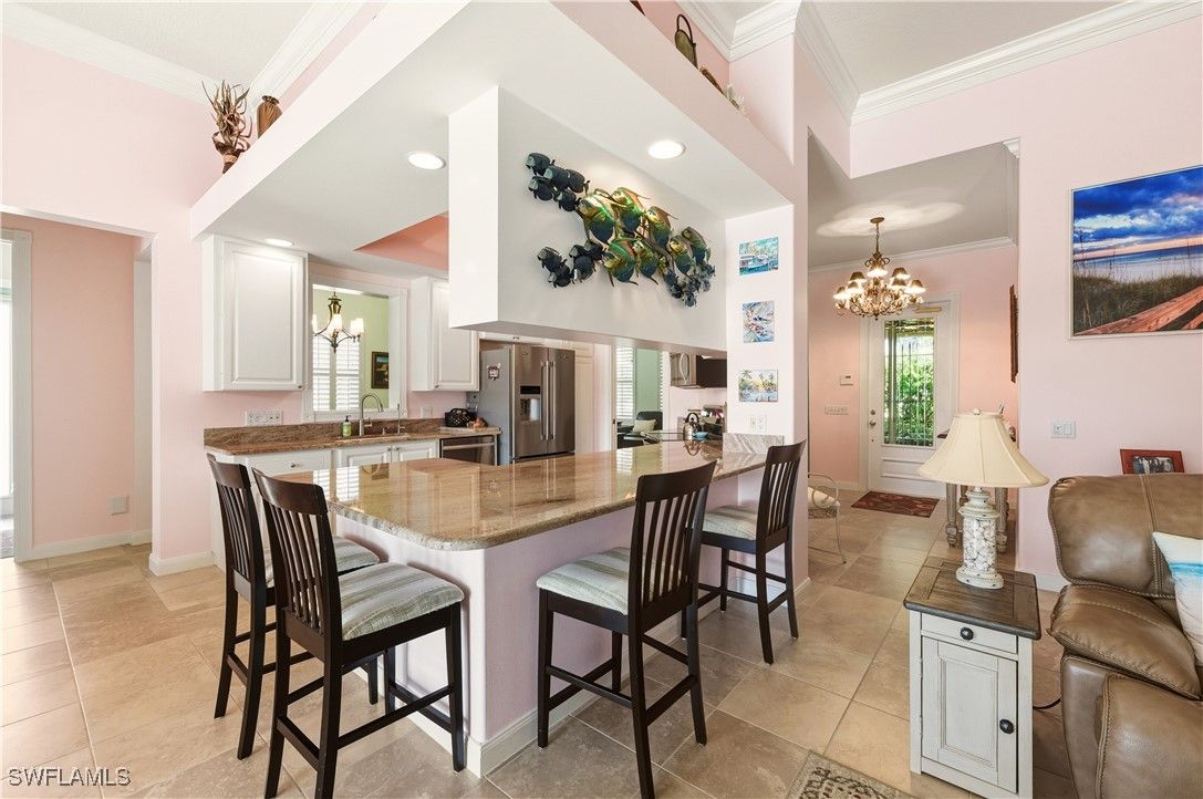 Gorgeous 4 bedroom, 3.5 bath FURNISHED Carlyle POOL home on a lake in Verona Walk. A spacious great room flows seamlessly into the dining area and a well-appointed kitchen, complete with solid cabinetry, stainless steel appliances, and granite countertops. The kitchen offers generous counter space and a layout perfect for entertaining. Large sliders open to a private lanai where you can enjoy serene views and the gentle Florida breeze—ideal for morning coffee or sunset relaxation. The living room has a fireplace for quiet relaxation and window plantation shutters are throughout the home. The home has a central vacuum system, whole house surge protection, and a generator plug in that is already installed. The hot water heater and AC are newer and there are accordion shutters on all window openings. The home was freshly painted inside and out recently. Verona Walk is very pet friendly too! Lower fees and Resort-style living in Verona Walk is possible with the incredible amenities offered, a 26,000 square foot town center, resort and lap pools, tennis, pickleball, fitness center, restaurant, gas station, post office, ice cream shop, miles of walking/biking trails, and more. Conveniently located near beaches and restaurants as well as downtown Naples. Ready to see more!