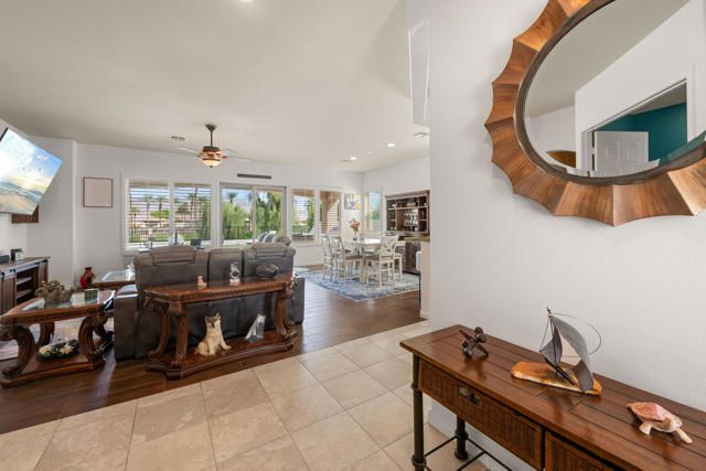 This stunning north-facing San Benito model offers panoramic mountain views overlooking the fairway's greenbelt without the worry of incoming golf balls. The backyard is a true entertainer's oasis, featuring a new pool and spa plus a built-in barbecue; perfect for gatherings or private relaxation. Inside, you'll find 2 bedrooms, 2 bathrooms, and a versatile two-room office/flex space that can serve as a third bedroom, artist studio, and/or den. The spacious primary suite provides comfort and privacy, while the open kitchen with breakfast nook flows seamlessly for everyday living. Additional highlights include a 2-car garage plus golf cart garage, ample storage, and all the features that make the San Benito floor plan one of the most popular in the community. This home combines views, style, and a brand-new pool and spa: an incredible opportunity you won't want to miss!