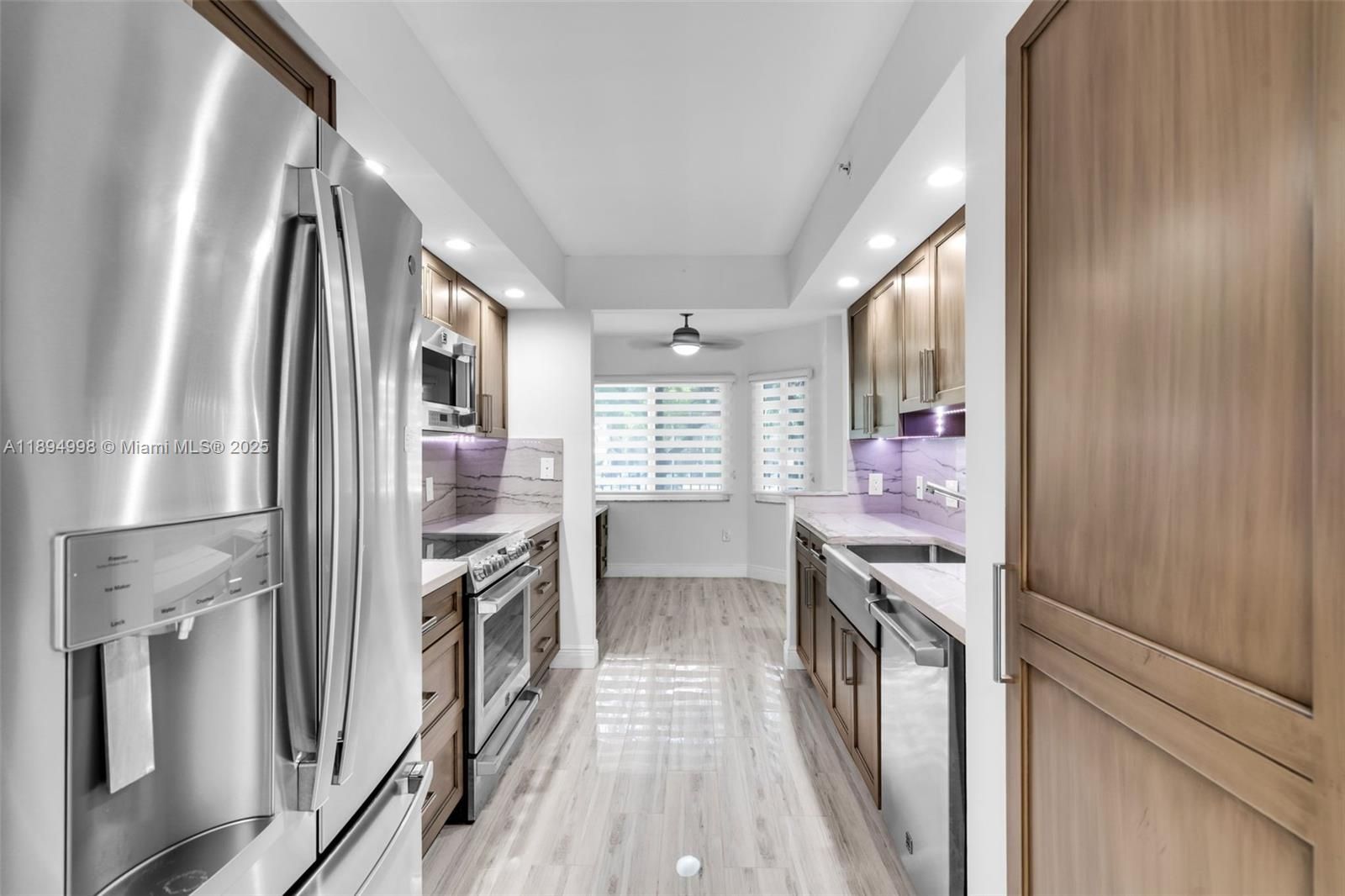 Stunning lakefront condo home features top-quality finishes & attention to detail in 2 spacious bedrooms & 2 modern Bathrooms in the highly sought-after 55+ community, Century Village . Custom kitchen w Kenmore Pro s s appliances, custom cabinetry. Open-concept layout flows seamlessly into the living/dining area & wood-look ceramic plank tile floors throughout ties everything together. Enclosed balcony with breathtaking lake views . Bathrooms boast glass-enclosed multifunction showers & heated exhaust fans for added comfort. Custom closets offer ample storage & convenience. Also, enjoy resort-style amenities inc pools, tennis courts, clubhouse, fitness ctr, theater, & 24-hr security — near shopping, dining, major highways. Luxury, comfort, convenience in one perfect lakefront home.