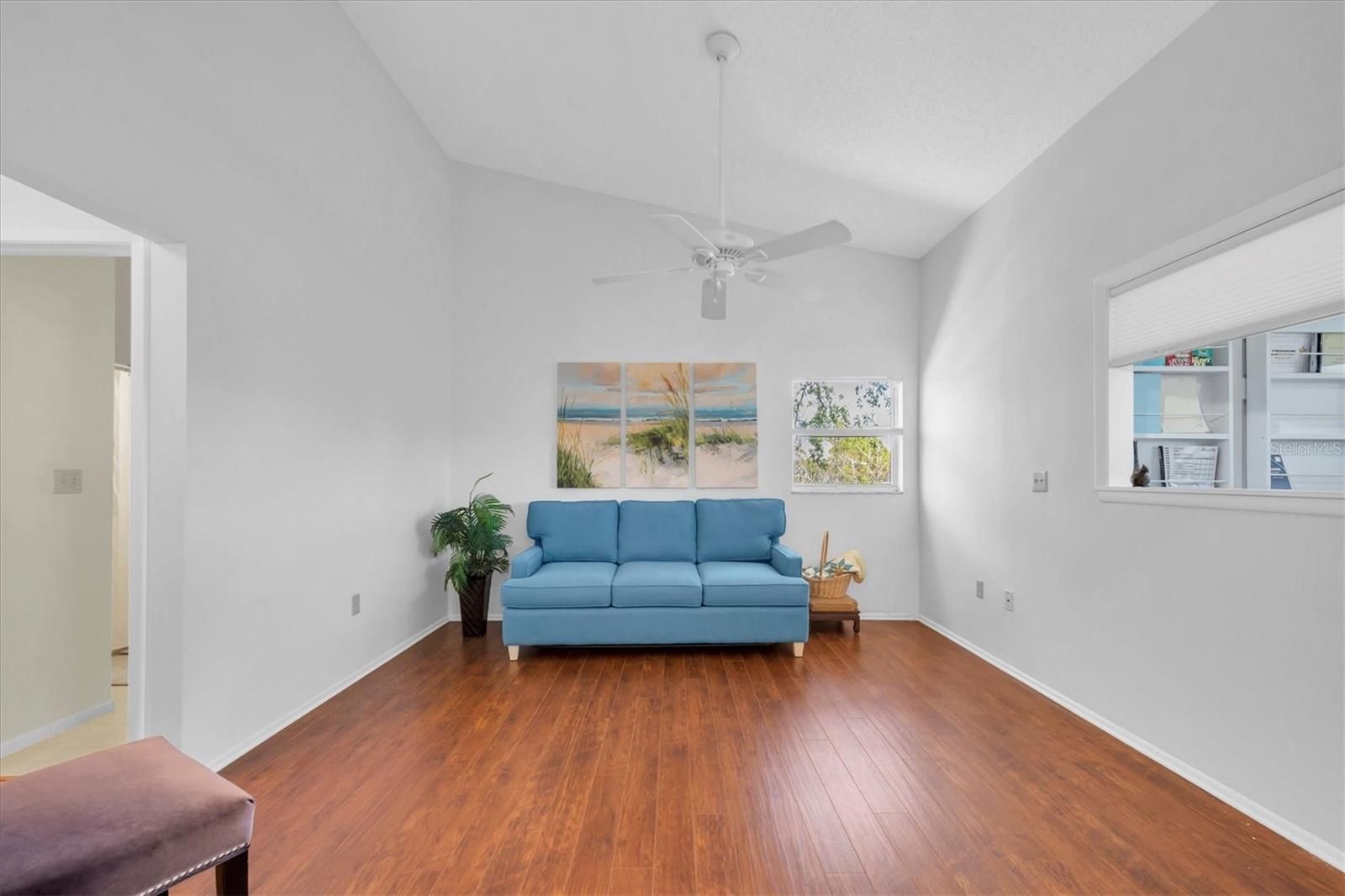 - Cathedral Ceiling(s), Ceiling Fan(s), High Ceilings, Living/Dining Room, Main Level Primary, Split Bedrooms, Thermostat, Vaulted Ceiling(s), Walk-In Closet(s)