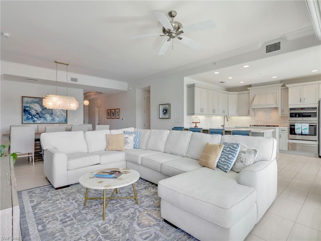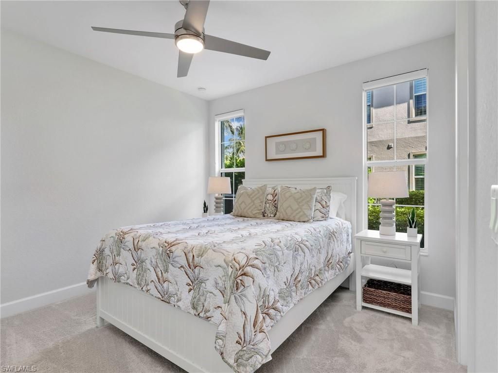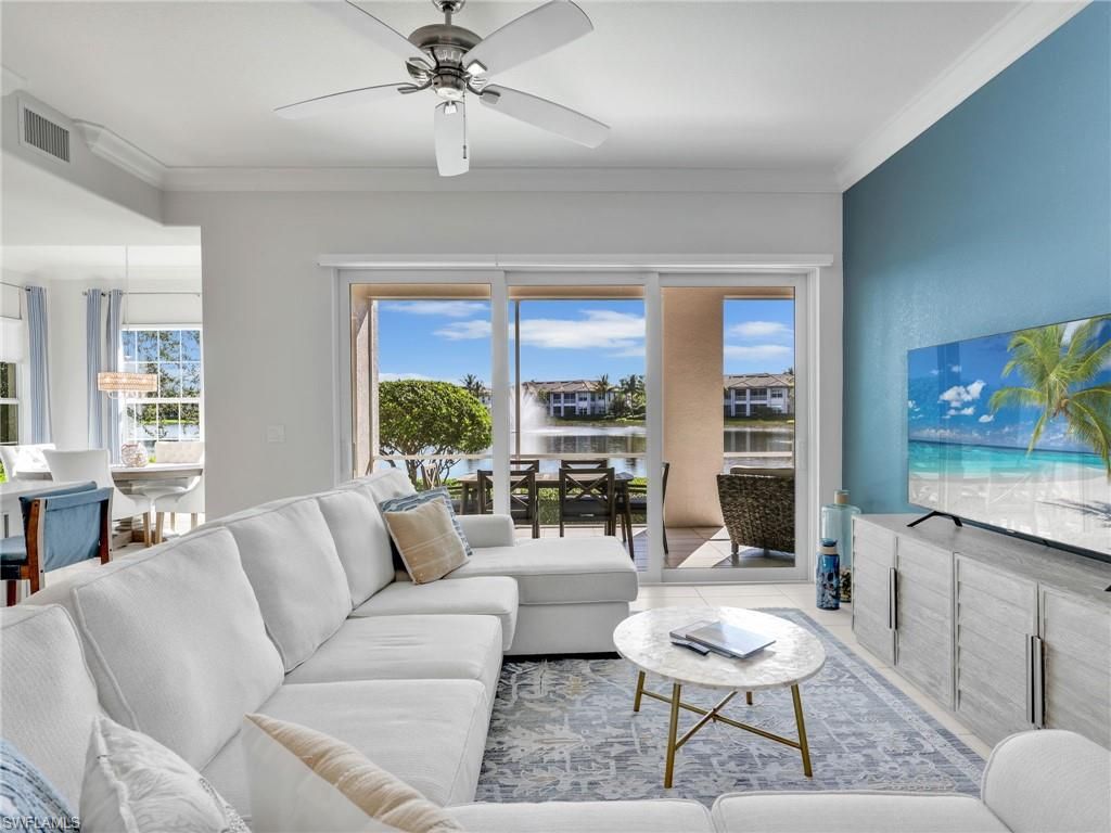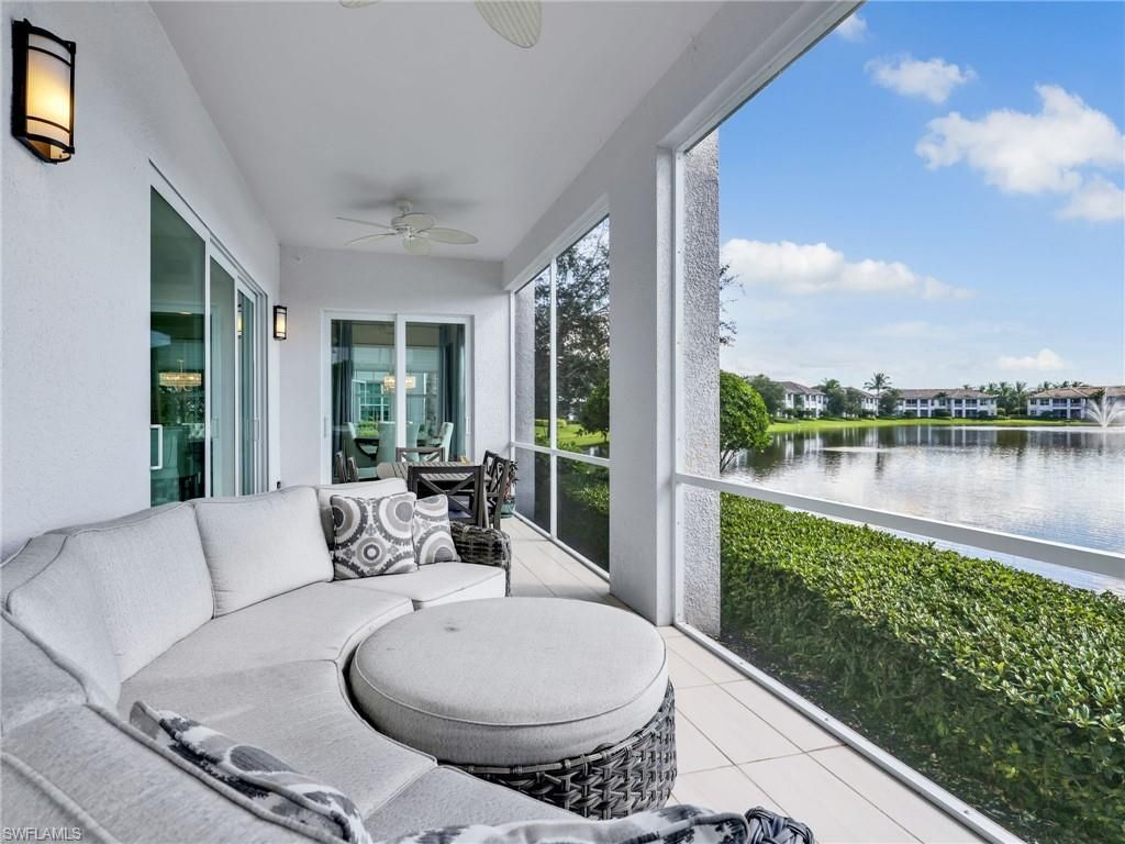 Elegance meets comfort in this beautifully appointed turnkey furnished 2 bedroom + den, 2.5 bath carriage home w/ a 2 car garage & expansive Southern exposure lake view nestled in the prestigious Signature Club at Lely Resort (one of the newer sections!) This first-floor end unit offers effortless living w/ a spacious great room, split-bedroom layout & a Southern exposure that fills the home with natural light. Designed for both everyday luxury & entertaining, the home features a gourmet eat-in kitchen with quartz counters, stainless steel appliances, gas cooktop, double wall oven, paneled range hood, marble tile backsplash, under cabinet lighting & soft close cabinets all framed by large windows w/ custom drapes for added privacy and style. The oversized primary suite includes a glass door to the screened lanai, two walk-in closets (one extra-large), gray quartz counters, dual sinks, freestanding soaking tub & a walk-in shower w/ floor-to-ceiling tile. Additional highlights: crown molding, 8-foot doors, 12" x 24" tile flooring w/ carpet only in the primary & second bedroom, a wet bar in the dining area with built-in cabinetry and backsplash, IMPACT RESISTANT windows and doors, glass front door with a sidelight, 2 car garage w/ an epoxy floor and a large laundry room with GE washer & dryer, utility sink & built-in cabinets. The expansive lake view w/ water feature adds a serene backdrop to the oversized lanai accessible from both the great room/dining area & primary bedroom. Residents enjoy full access to world-class amenities at the Players Club & Spa that is within walking distance & membership is required. The Players Club amenities include a resort-style pool w/ expansive pool deck, family pool w/ tiki huts and waterfall, a lagoon pool w/ waterfall, lap/fitness pool, sand area w/ tiki huts & whirlpool spa. Dining options include the elegant Club Dining Room, casual social Grill Room & Courtside Marketplace at the tennis courts. In addition there is an outdoor fireplace area, private dining/meeting room, terrace & verandah dining, tiki poolside bar & grill, active social calendar with concerts, day trips, seminars, social group clubs & games. The 6,000 sq. ft fitness center offers fitness classes, personal training, & an on-site Physical Therapist. Spa services include beauty treatments, manicures, pedicures & massages. For the sports enthusiast there are 4 bocce courts, 13 Har-Tru tennis courts including a stadium court with seating pavilion, 4 pickleball courts, sports clinics, sports pro shop & billiards room. Additionally there is a computer center, gaming/theatre room, dog park & off season reciprocal club privileges. Enjoy 2 public championship courses that are attached to Sam Snead's Cafe & a Pro shop. Limited full golf memberships are also optional & available for the championship private course. Much to enjoy! This property provides maintenance-free living & delivers resort-style luxury in one of Naples’ most sought-after communities!