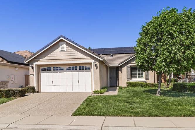Imagine starting your day with a walk along tree-lined paths, spending afternoons with neighbors at the pool, and winding down on your own private patio as the sun sets. Welcome to this well-appointed Maggie floor plan in the sought-after Del Webb Glenbrooke 55+ community of Elk Grove, where low-maintenance living and an active social scene come together effortlessly. Inside, this 3-bed, 2-bath home offers 1,569 square feet of comfortable living space with newer flooring and fresh paint throughout. Plantation shutters add a polished touch to the living areas, while the open kitchen features rich cabinetry, granite countertops, and backsplash, a pantry closet, and a breakfast bar perfect for casual mornings or hosting friends. The spacious primary suite includes a generous walk-in closet and a well-appointed bathroom with double sinks and a walk-in shower. Additional highlights include ceiling fans throughout, an inside laundry room with cabinetry, and a 2-car attached garage. The backyard backs directly to a park, offering a sense of openness and tranquility, with a pergola-covered patio, low-maintenance landscaping, and iron fencing that frames the greenbelt views beautifully. OWNED Solar panels provide long-term efficiency and added value. And when you are ready to get out and connect, the community delivers with a clubhouse, fitness center, pool, spa, and recreation facilities all included through the HOA. Comfort, community, and convenience all in one address.