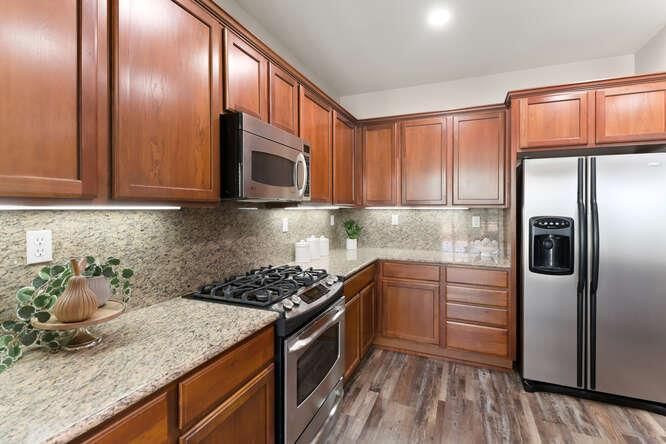 - Free-Standing Refrigerator, Built-In Gas Oven, Built-In Gas Range, Range Hood, Ice Maker, Dishwasher, Disposal, Microwave