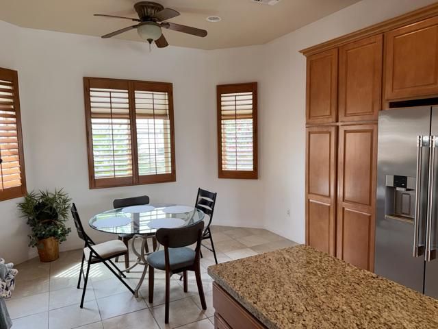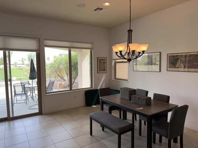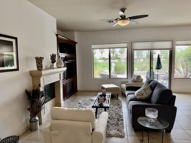 This home has one of the best views at the facility.You can see the lake and the mountains and there are no golf balls wising by your head. The home has lots of room with2,147 square feet. The back patio is very large with plenty of room for dining. The home (San Benito floor plan) has an open floor plan, with ceramic tile floors, a custom designed wall unit, and an inviting fireplace in the living room. The home has a two car garage and a golf cart garage as well.Sun City Shadow Hills has so many outdoor activities, including two golf courses, tennis courts, pickle ball, as well as multiple swimming facilities.