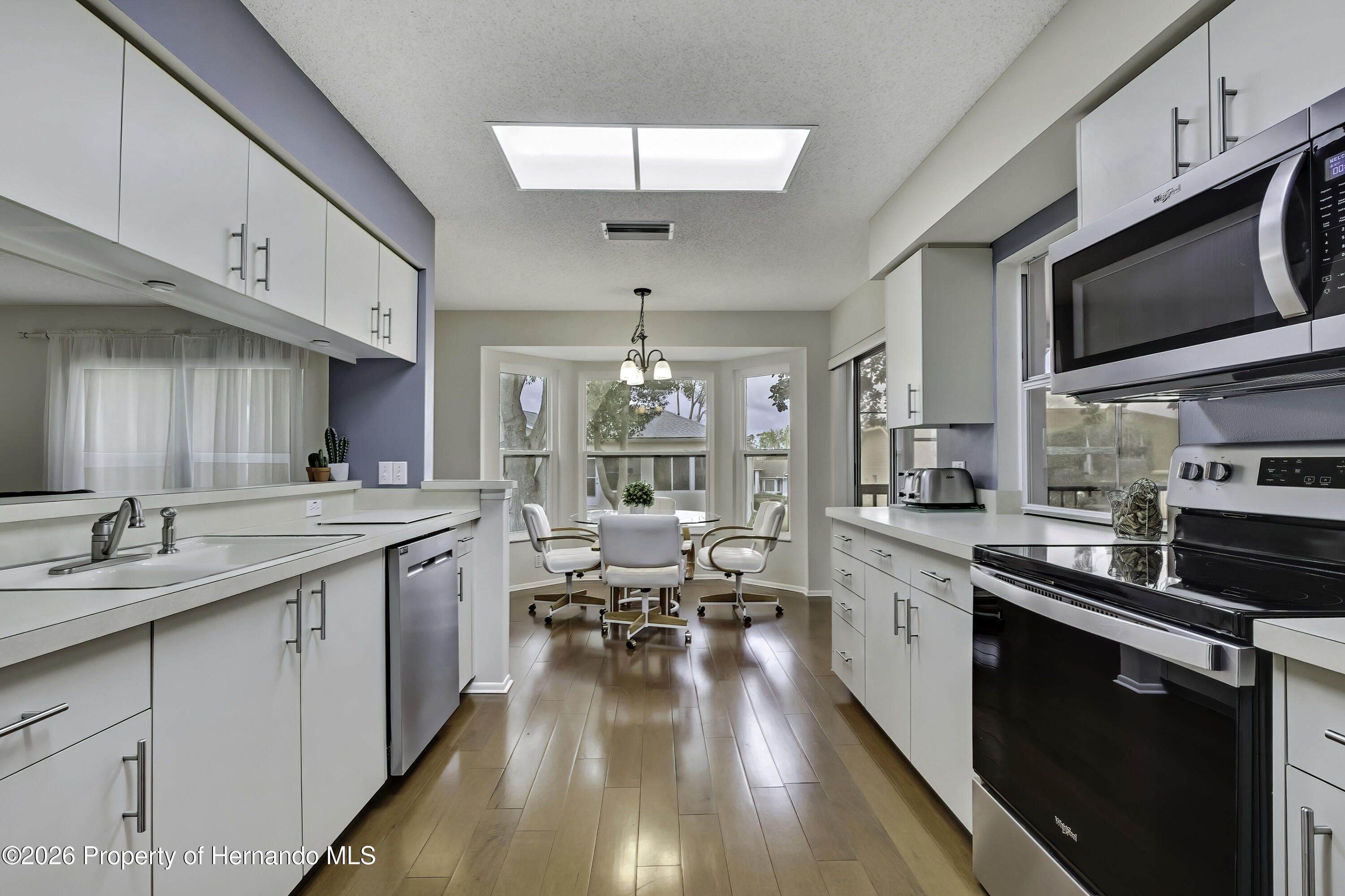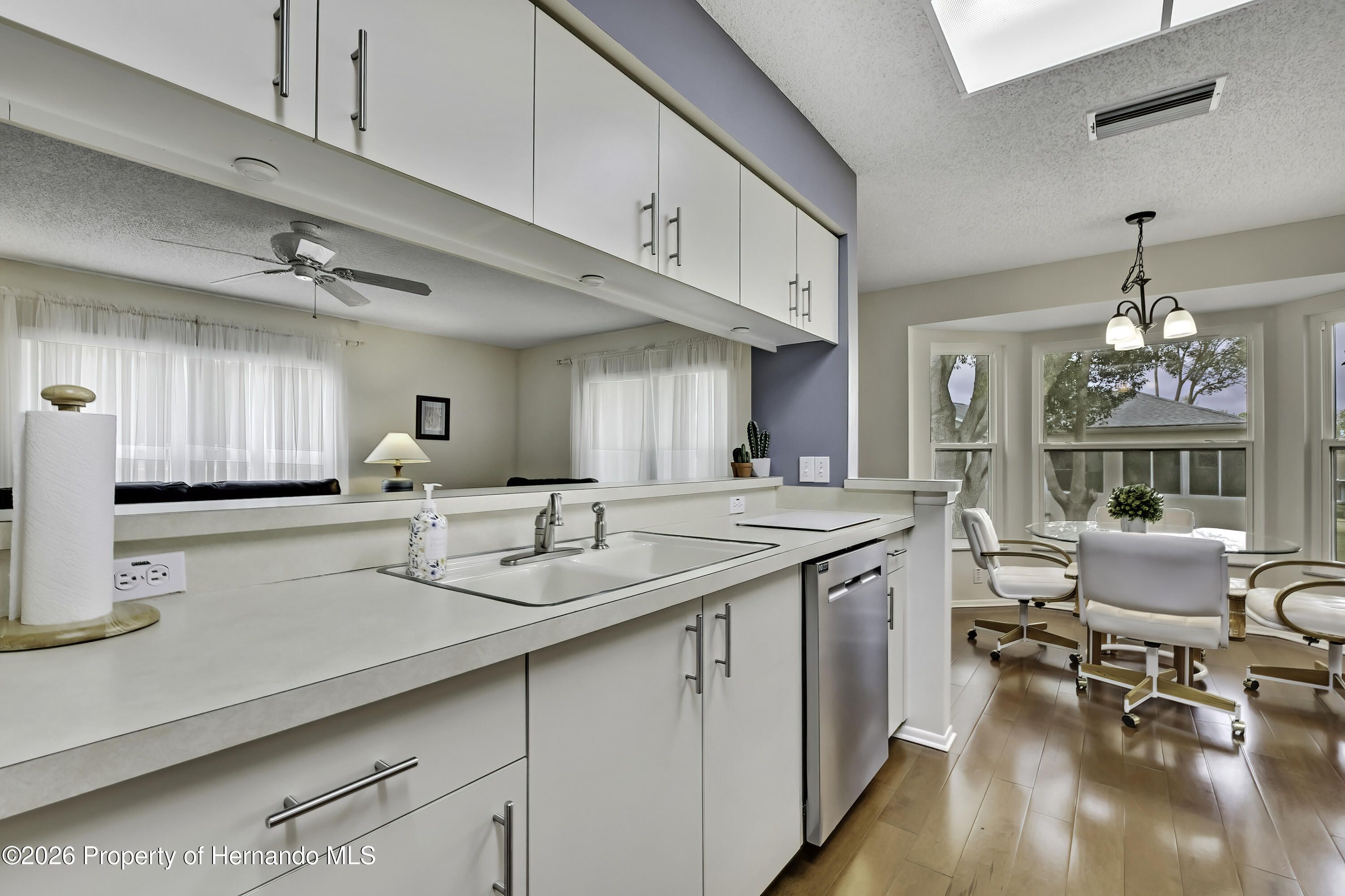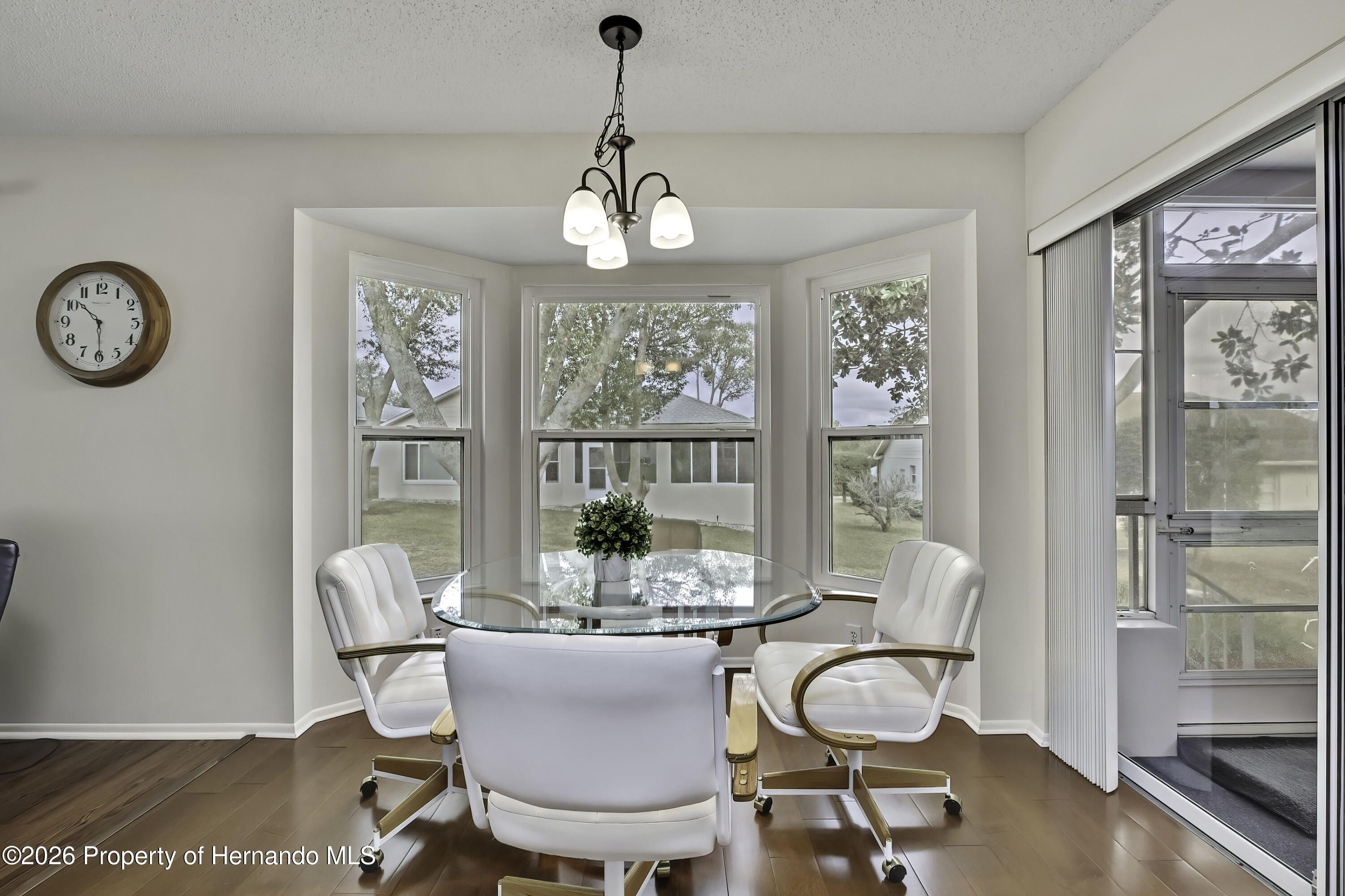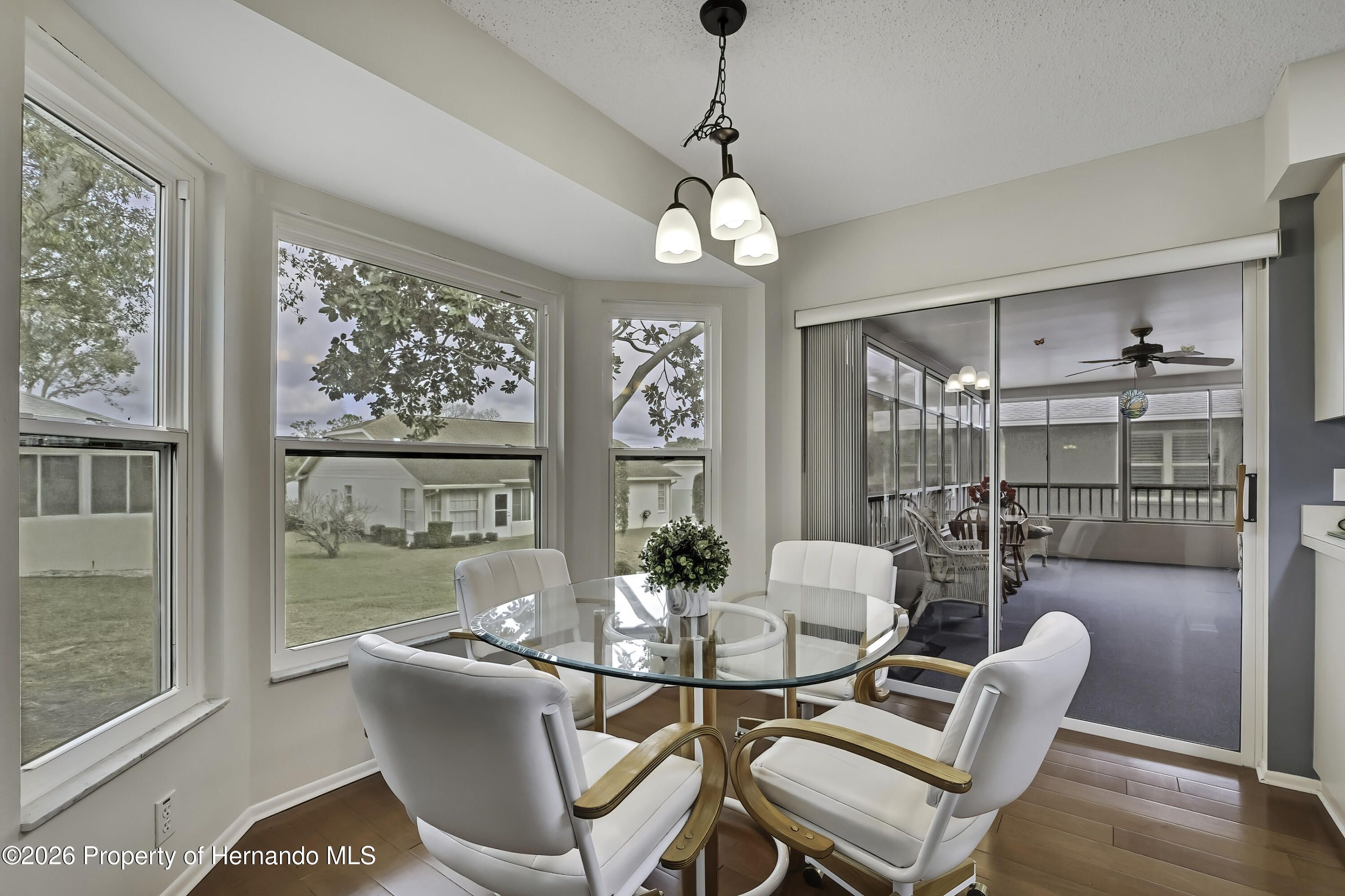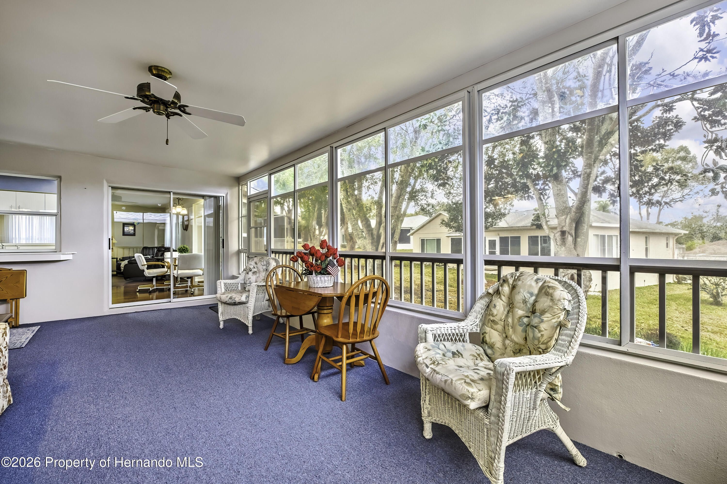 Beautifully maintained and fully furnished turnkey home featuring 2 bedrooms, 2 baths, a 2-car garage, and 1,788 sq. ft. of living space. Perfectly situated on a lovely, winding, tree-lined street in the award-winning 55+ Timber Pines Golf Community! A welcoming living and dining room greet you as you enter, leading to a bright, spacious kitchen that will delight any chef. The kitchen offers abundant cabinet and counter space, stainless steel appliances, a breakfast bar, and a cheerful breakfast nook with a bay window. A large family room just off the kitchen provides plenty of additional space to relax or entertain. The calming primary bedroom easily accommodates large furniture and includes a walk-in closet. The primary bath features dual sinks and a walk-in shower. A generous guest bedroom offers flexibility for visitors, a home office, or a craft room. Major updates include: • All new double-pane windows (2024) • New A/C (2022) with a 10-year transferable warranty • Roof replaced in 2014 Timber Pines is a 55+ active, gated community offering 4 golf courses, a Country Club, a high-end restaurant and bar with multiple TV screens, 2 pools, a fitness center, tennis and pickleball courts, bocce ball, a billiards room, and more than 100 clubs. Spectrum cable (with 2 boxes) and high-speed internet are included in the HOA. Come view this beautifully maintained, fully furnished, turnkey, and competitively priced home today!