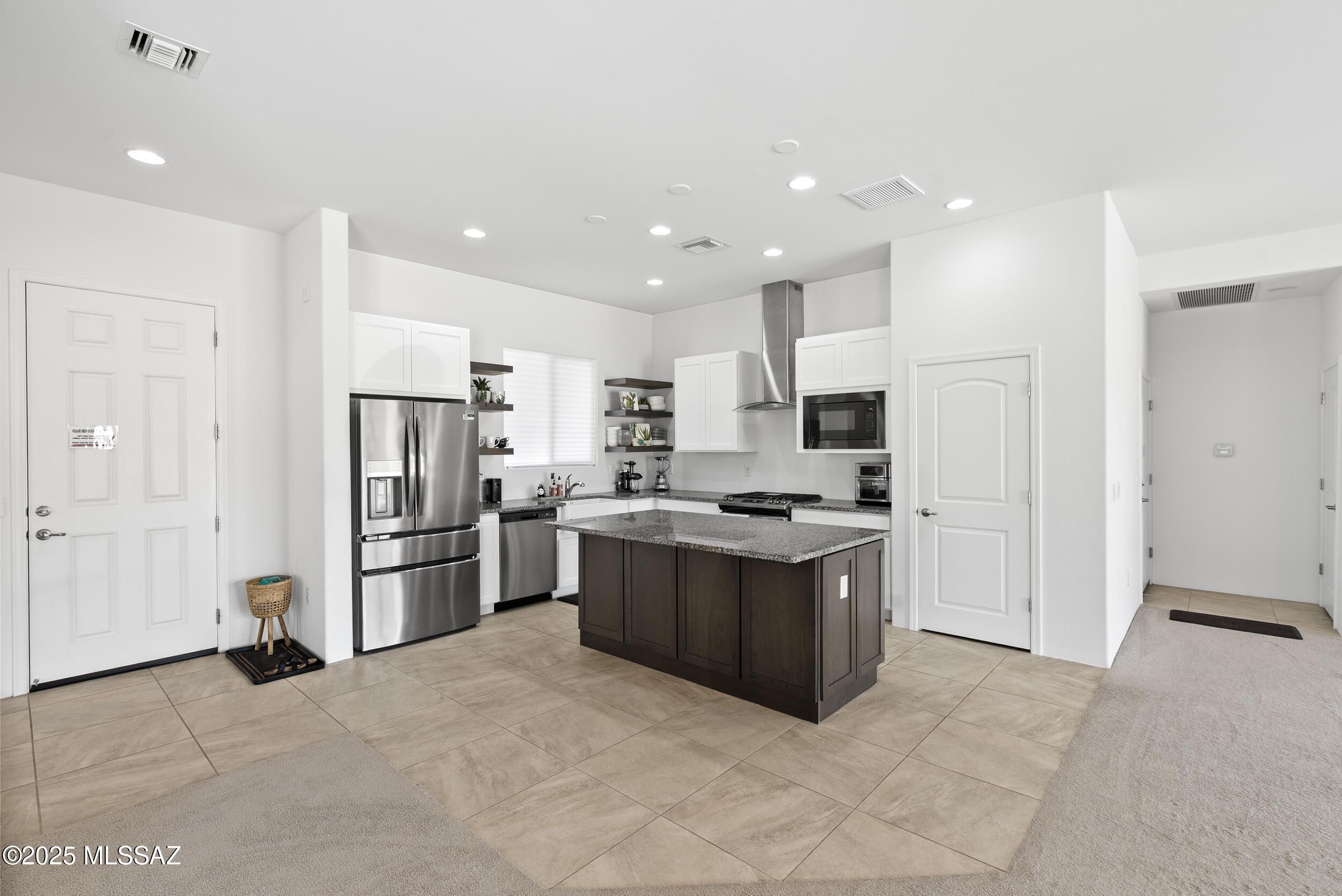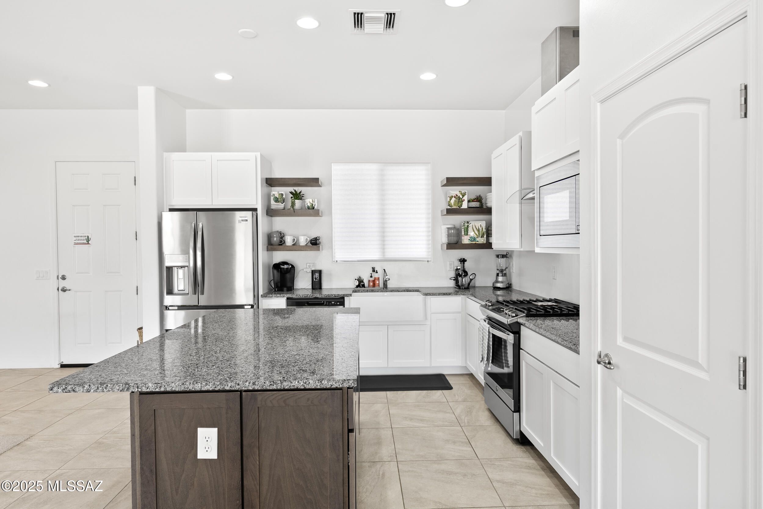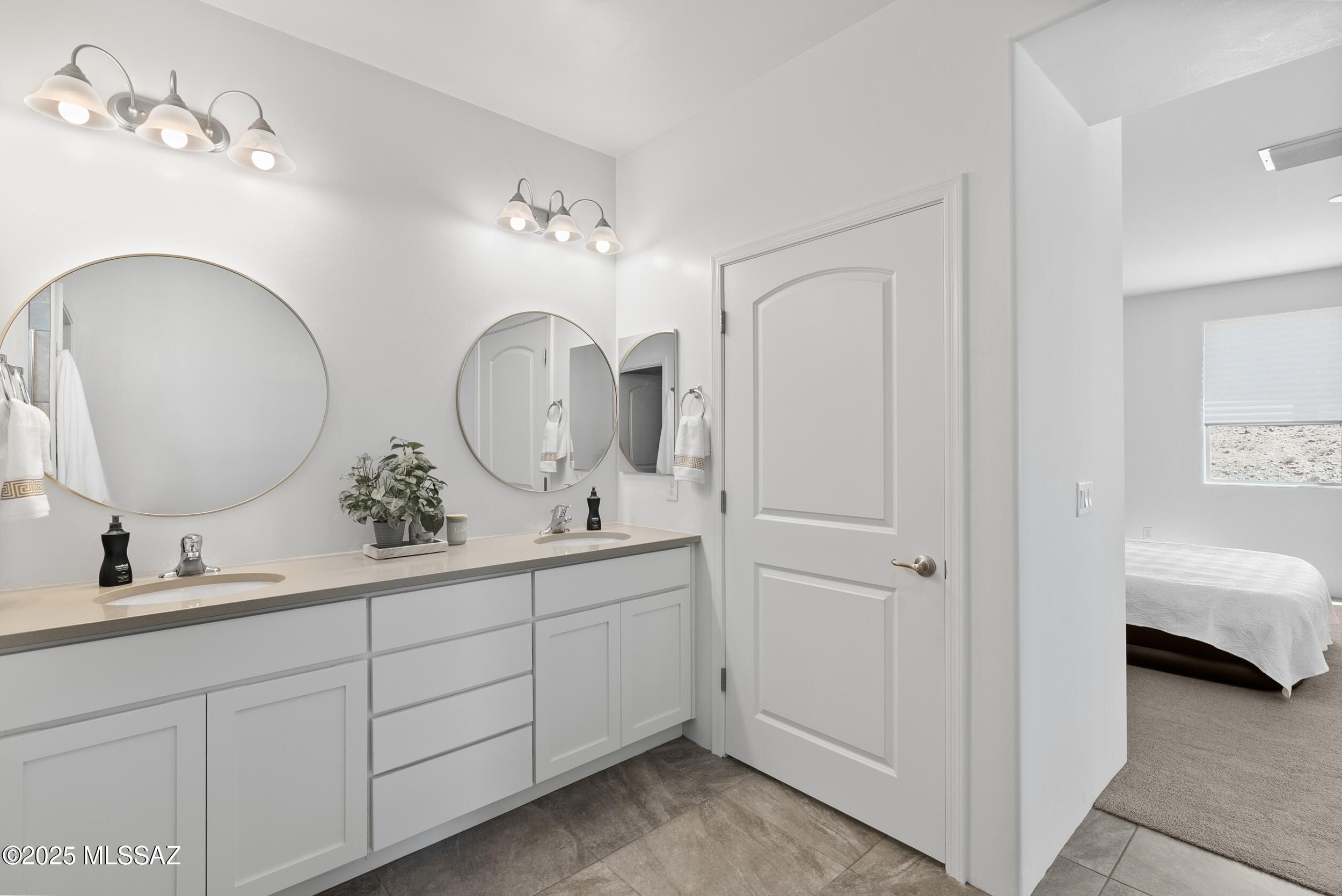 Built in 2022, this 3 bedroom residence rests on a generous lot with wide-open mountain vistas and no homes behind for added privacy. Located within the vibrant Academy Village, where neighbors connect through art, pottery, game nights, and a top-tier fitness center, this nearly new home is ready for your personal style to shine. The upgraded kitchen opens seamlessly to a wall of sliding glass doors, creating a perfect stage for indoor-outdoor gatherings framed by the Rincons and surrounding desert landscape. Step out to the extended covered patio, additional front entry hardscape, and a backyard with room to design the pool or outdoor kitchen you've always imagined. Inside, neutral tones set a calm backdrop for any decor. Experience the best of modern construction without the wait,