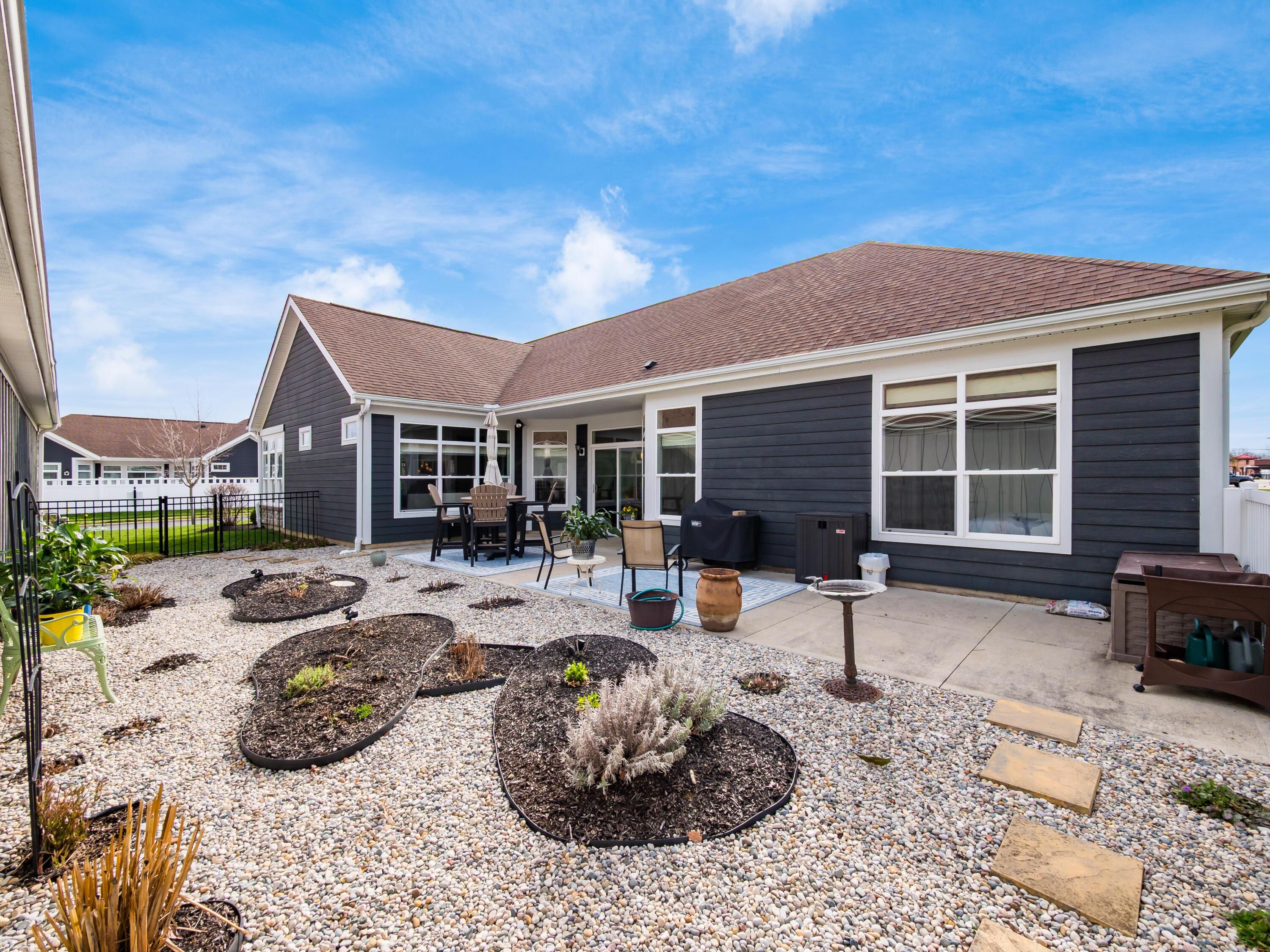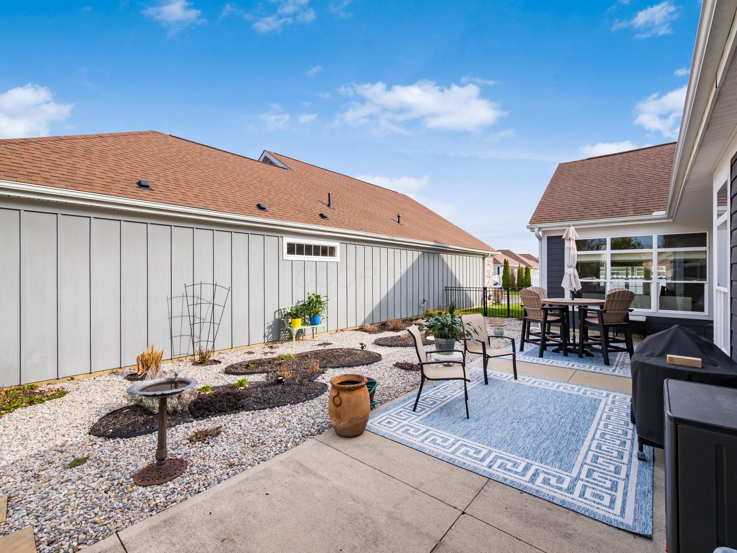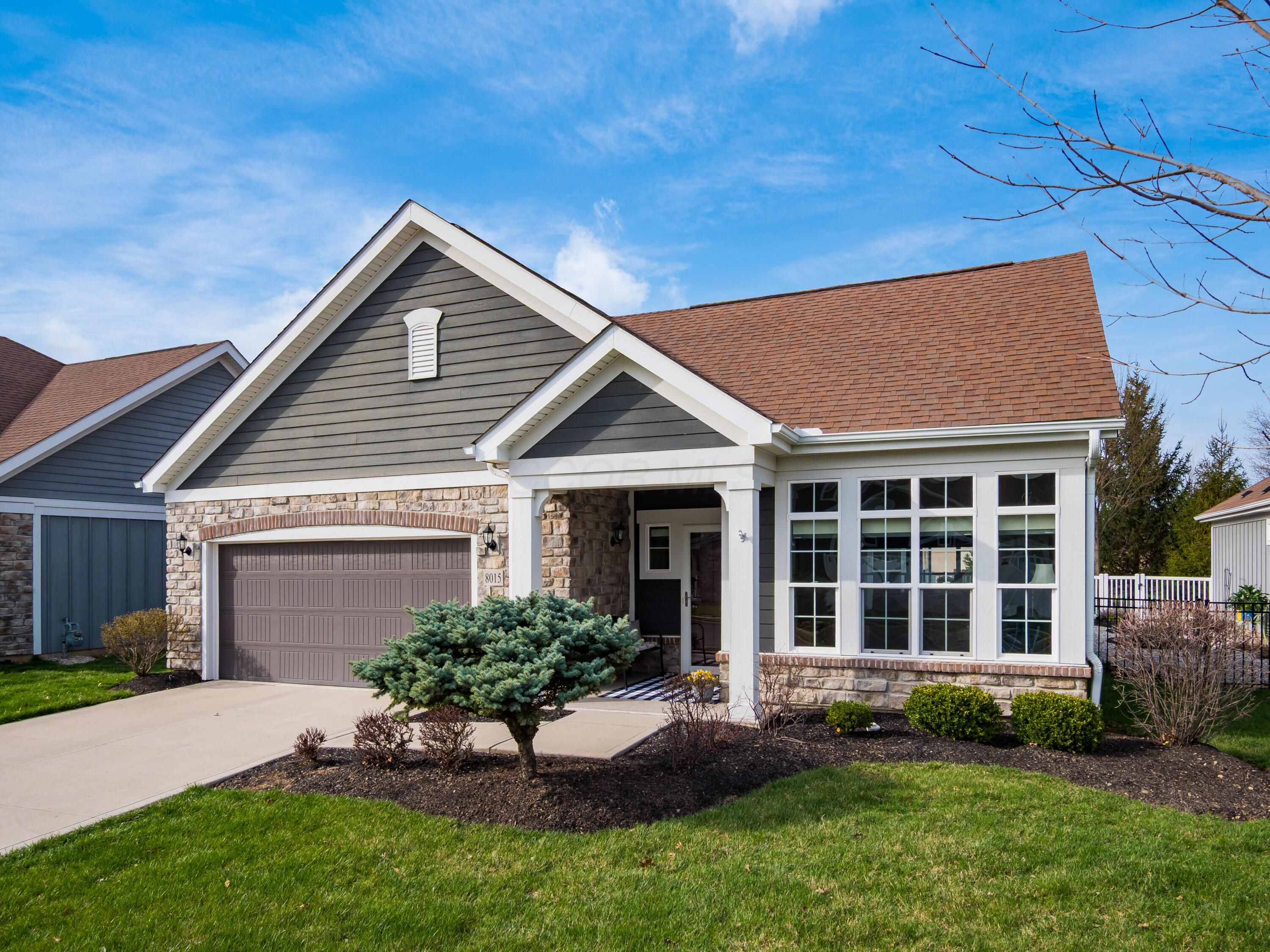 Simplify in Style! This Desirable Epcon Palazzo ranch in Courtyards at Hidden Ravines in Lewis Center has it all! One floor living at its finest! A thoughtful floor plan with flexibility. Inviting tile foyer welcomes you to this thoughtful floorpan with lovely warm neutral decor. Tons of natural light in all areas including the living room with Tray ceiling and opens to 4-season room. Beautiful custom blinds highlight the numerous windows. Kitchen with quartz countertops and SS appliances with spacious pantry countertop eating space opens to the dining area. From there to the patio with numerous perennials and huge patio and courtyard extending your entertainment space for family and friends! Numerous upgrades! Solid wood doors and 5 1/2'' baseboards throughout! Guest bedroom has added cabinetry for tons of extra storage or perfect for home office or craft area! Roomy owner's suite has tray ceilings and upgraded shower and huge custom closet to die for! This home is meticulously maintained and well planned! So much more! Close to shopping, tons of restaurants and I71 & 270. Updated clubhouse with pool and numerous activities for this close knit community! A must see!