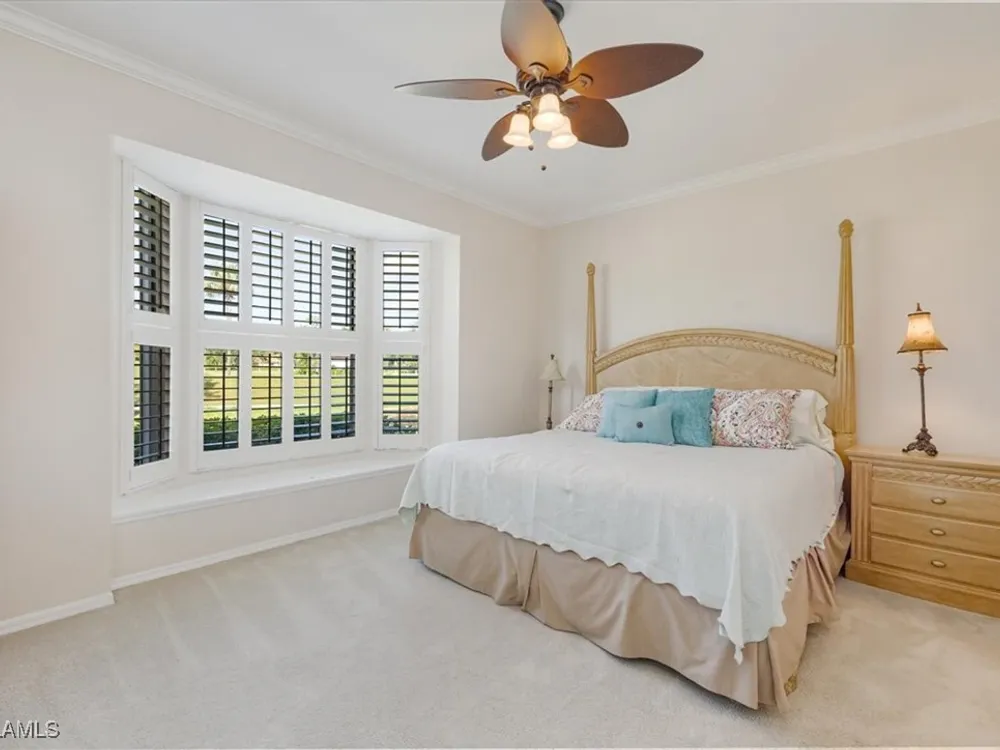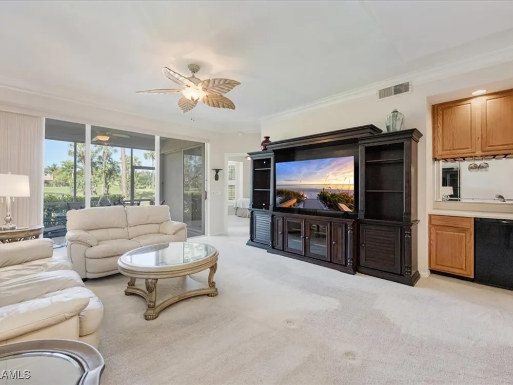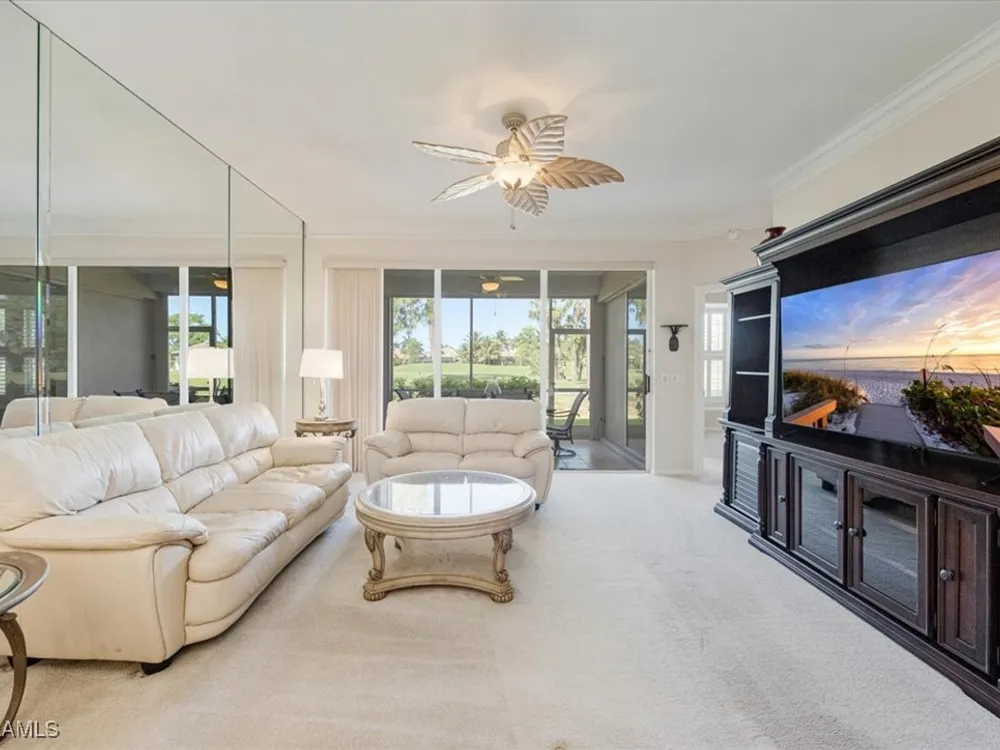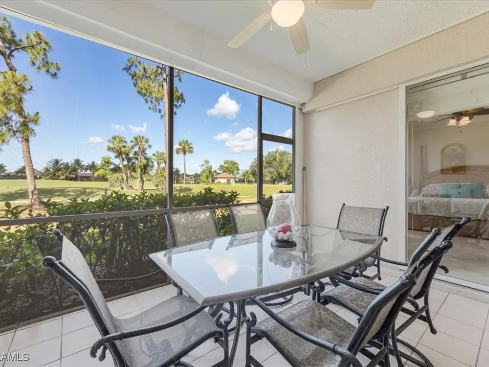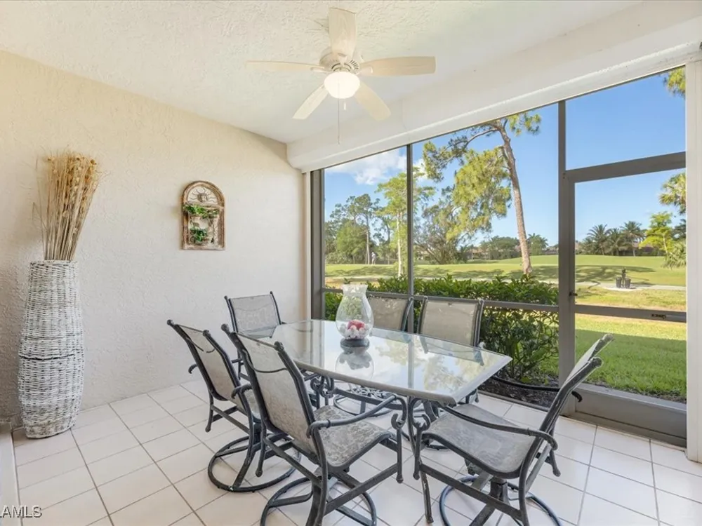 Nestled within the picturesque Verandas at Tiger Island in Lely Resort, this stunning END UNIT condo offers the perfect blend of privacy, space, and resort-style living. With expansive views of the lush golf course, this light-filled residence boasts three bedrooms, two baths, and gracious living areas of 1,646 square feet. Step inside to discover an open floor plan, high ceilings, and large windows that flood the space with natural light. The spacious kitchen features granite counter tops, ample cabinetry, and a breakfast nook, perfect for casual dining. The primary suite is a true retreat, offering a walk-in closet, en-suite bath, and private access to the screened lanai, where you can unwind while enjoying serene golf course views. Electric storm shutters add an instant layer of protection for those occasions when needed. A/C unit installed 11/2024! As part of Lely Resort with a Player's Club Membership (optional and currently has waiting list), residents enjoy world-class amenities, including championship golf courses, a resort-style pool, tennis and pickleball courts, a spa and fitness center, and a dog park. Conveniently located near Downtown Naples, this property provides easy access to fine dining, shopping, and pristine Gulf beaches.