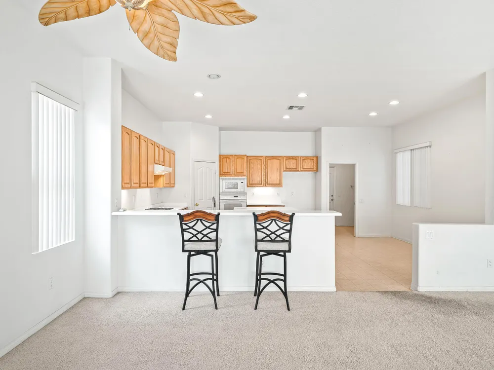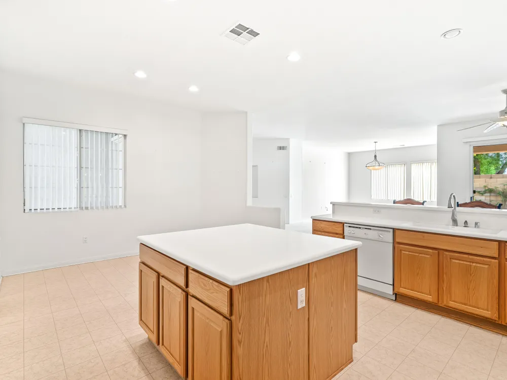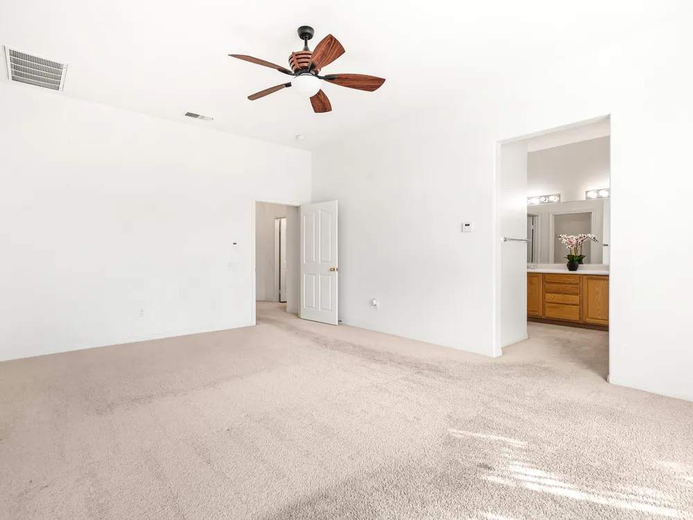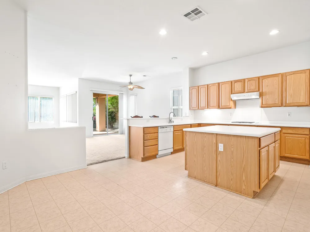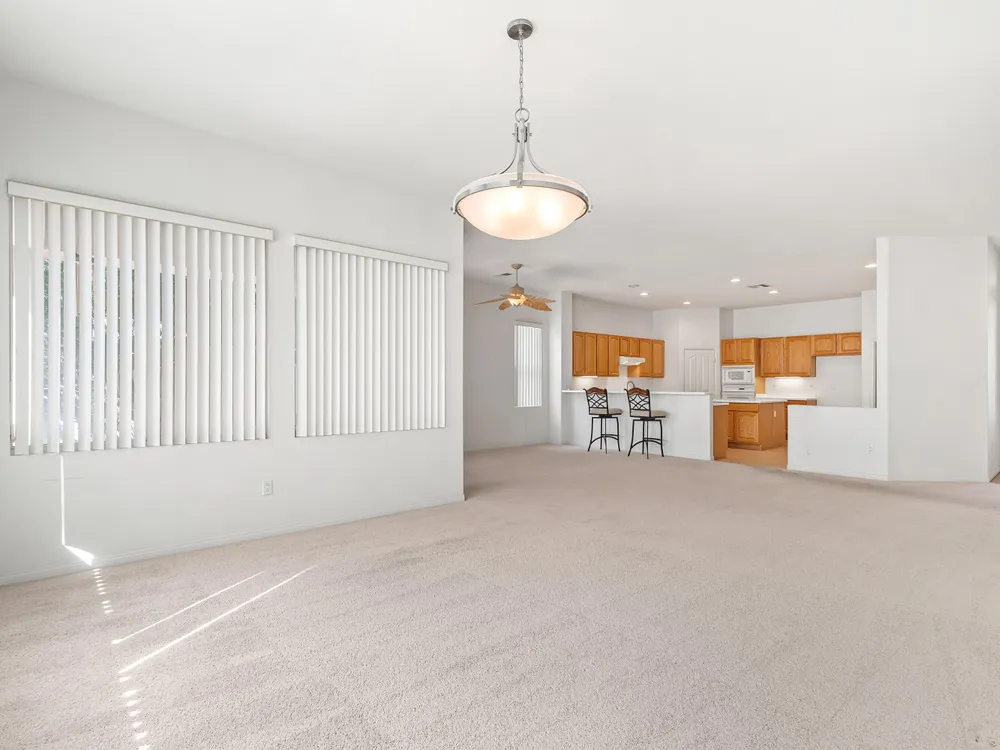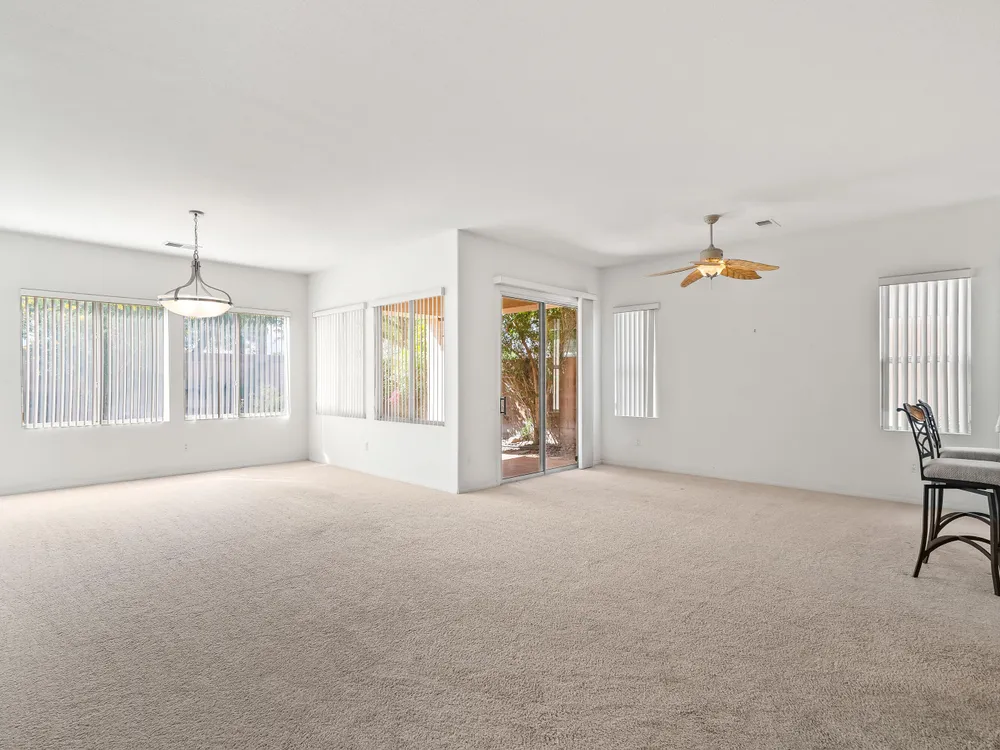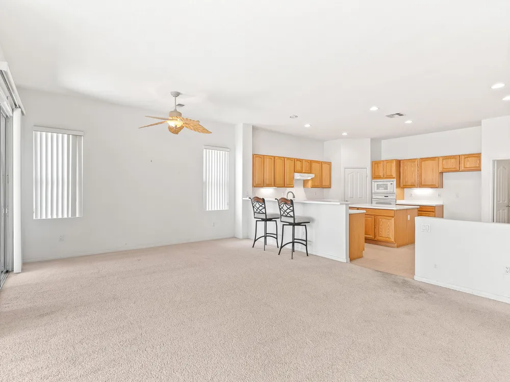 SOUTH facing OPEN great room plan. This 2 bedroom PLUS DEN home features an open floor plan with large island kitchen, over-sized guest bedroom, spacious sized 3rd room/DEN and water saving desert landscaping of the front and rear yards. The primary bedroom is also good sized, has dual vanities, separate tub & shower and large walk-in closet. This home also features a SOLAR SYSTEM with very reasonable monthly lease payments of $120 that keep your electric bills LOW!! Heritage Palms is a premier adult community that features an 18 hole championship golf course, tennis courts, pickle ball courts, fitness center, indoor & outdoor pools, grill room, billiards room, card rooms, social clubs and more.