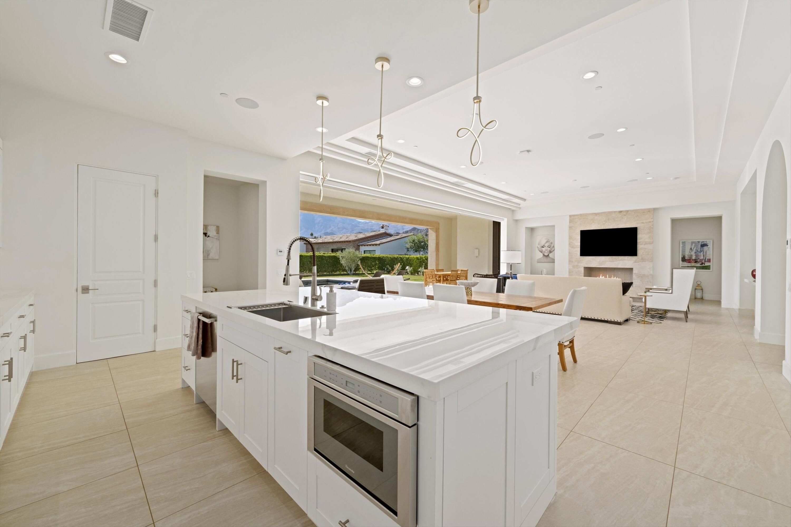 This stunning contemporary residence is ideally situated on a spacious and private 13,068 sq. ft. lot within the prestigious Residence Club at PGA WEST and features 3BD, 3.5BA, and a generous 3,567 sq. ft. of living space, offering a perfect blend of elegance and comfort. The open-concept layout effortlessly integrates the living room, dining area, and kitchen, creating an ideal environment for both relaxed living and entertaining. The chef-inspired kitchen is equipped with high-end Thermador appliances, abundant storage, and a central island, making it a true culinary haven. Each of the three well-appointed bedrooms serves as a peaceful retreat, complete with its own en-suite bathroom, ensuring privacy and comfort. A convenient half bath is also available for guests. Outside, the expansive lot provides endless possibilities for creating your dream outdoor space, whether that's a tranquil garden or a lively entertainment area, all surrounded by beautifully landscaped grounds. As part of the HOA, enjoy a wealth of amenities, including concierge service, exterior maintenance (roof and paint), earthquake insurance, full yard landscape upkeep, water and pool maintenance, pest control, cable, and internet. Residents also have access to a private clubhouse, state-of-the-art fitness center, three 6,000 sq. ft. putting greens, a heated pool with two lap lanes, and a business center. This home offers an unparalleled lifestyle in a prime location.