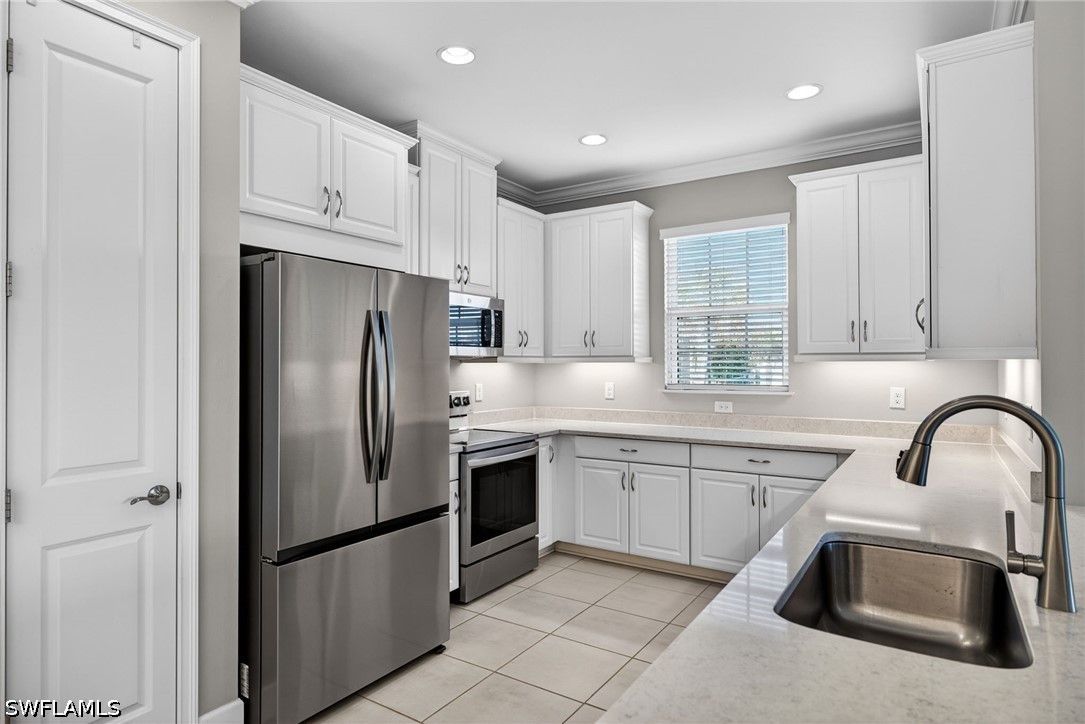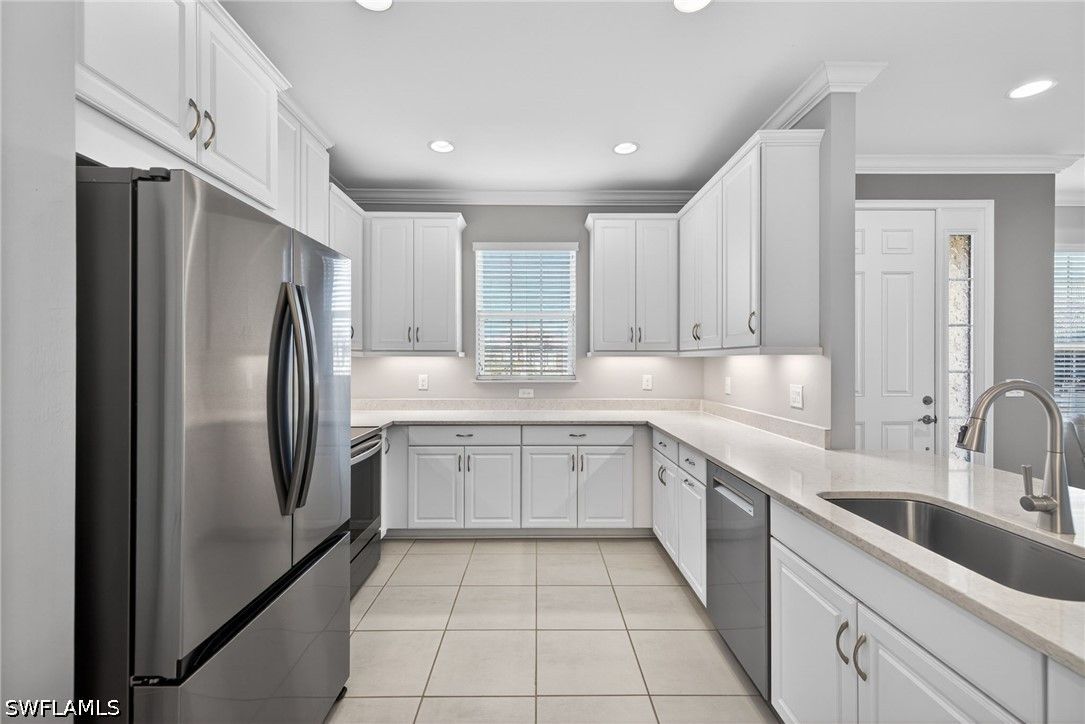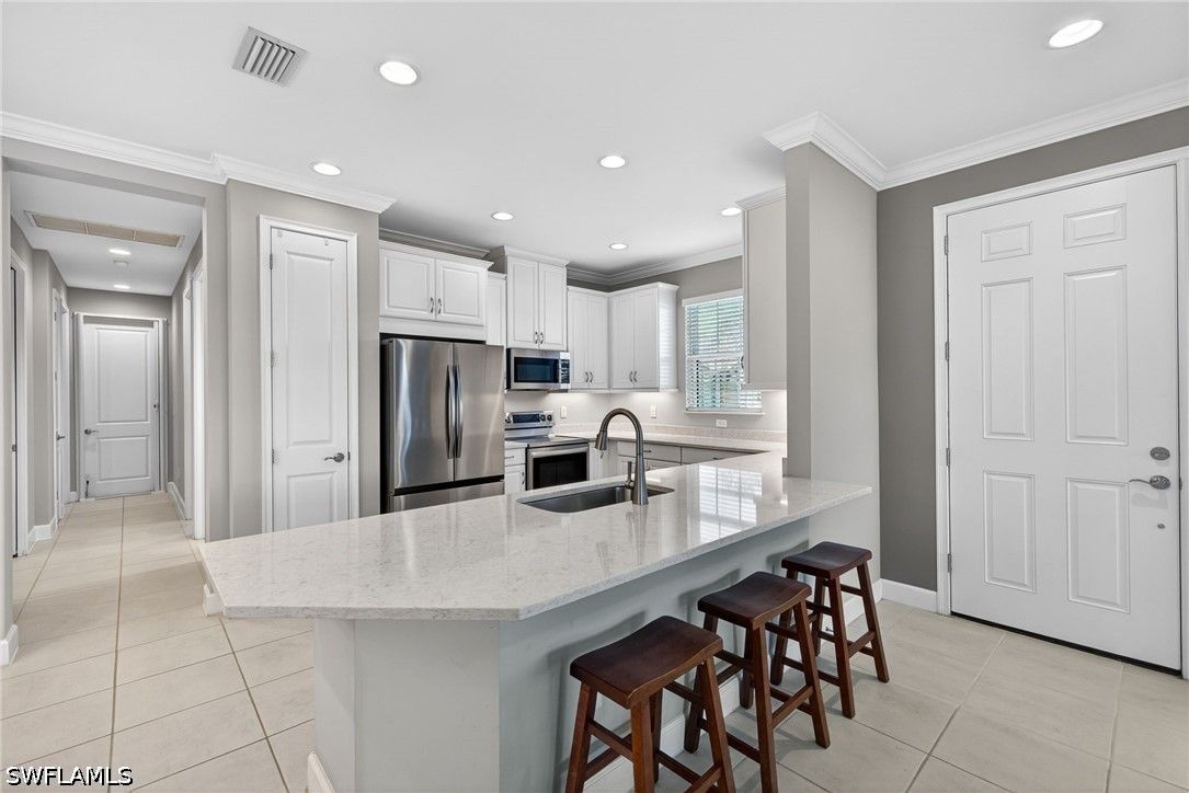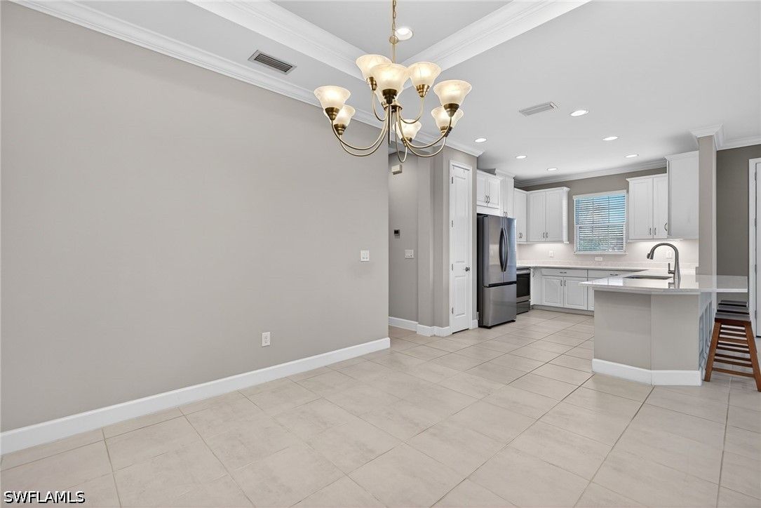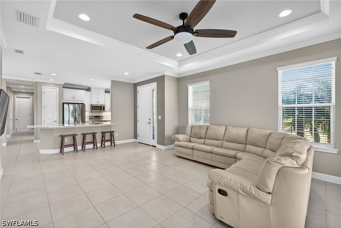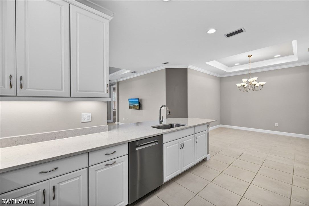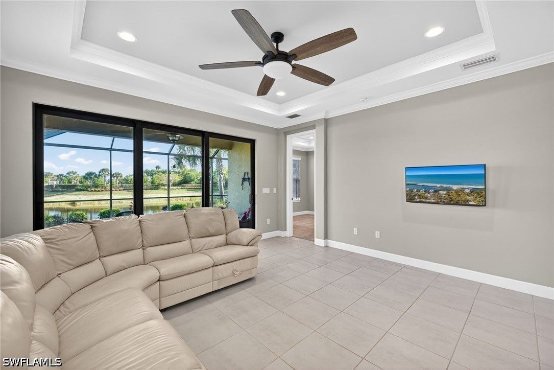 Tucked away on a quiet cul-de-sac, this beautifully maintained 2+den villa offers the perfect blend of privacy, comfort, and everyday convenience. Overlooking a tranquil lake, the home features a private heated pool, creating an ideal setting for relaxing afternoons and evenings. Inside, the layout is both functional and inviting, with an abundance of natural light. This home is equipped with impact-resistant windows and doors for added peace of mind. The spacious kitchen includes white-shaker cabinetry with organized slide-out racks and quartz countertops with generous counter space. Select rooms have been freshly painted, offering a light and refreshed feel throughout. The extended driveway provides added flexibility for guests and additional parking, an uncommon and valuable feature within the community. Located just minutes from the upcoming Costco and directly across from the rapidly growing Hacienda Lakes corridor, residents will enjoy immediate access to everyday essentials including dining, shopping, gas stations, and popular spots like First Watch, with even more commercial conveniences on the way. The community itself is known for its vibrant yet relaxed lifestyle, offering a lakefront clubhouse with a resort-style pool and spa, resistance training pool, fitness center, pickleball, tennis, bocce, and a dog park. This community includes natural gas, low HOA fees under $400/month and a full calendar of social activities. Close to I-75, 20 minutes to downtown Naples 5th Ave and beaches and minutes to Publix, Walmart and more!