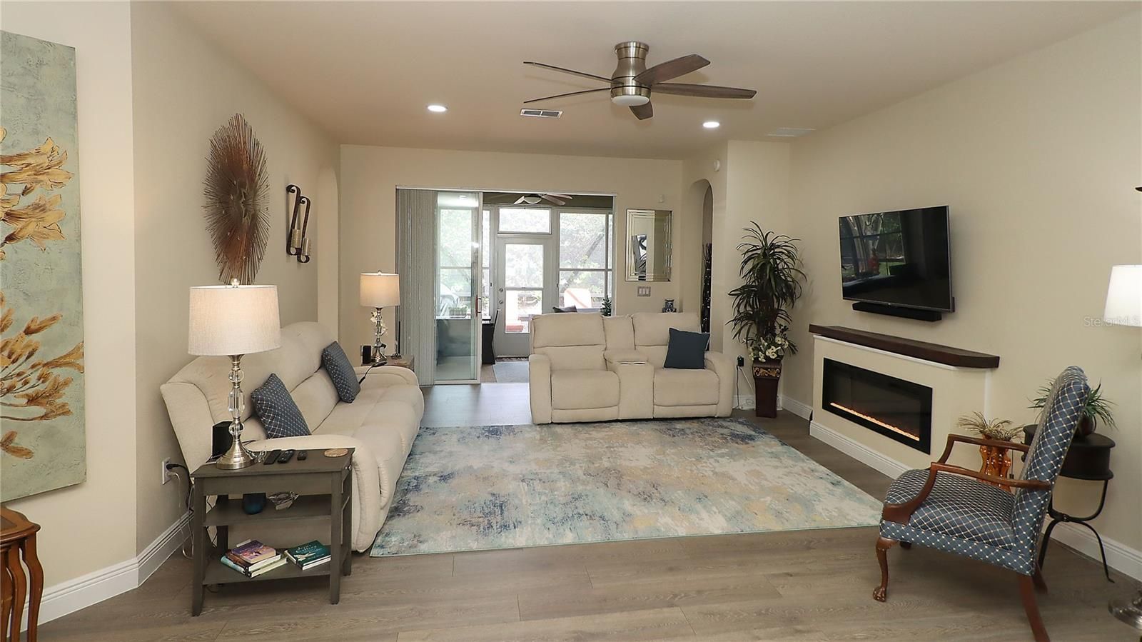 ABSOLUTELY STUNNING HEATHER MODEL WITH EVERYTHING FROM FLOORING TO ROOF NEW SINCE 2024!! ENTER INTO THE OPEN LIVING AND DINING AREAS WITH HIGH CEILINGS COMPLETELY REDONE WITH LUXURY PLANK VINYL FLOORING, ALL LIGHT FIXTURES PLUS DINING AREA FEATURES CHAIR RAIL AND LIVING ROOM HAS A BEAUTIFUL REMOTE CONTROLLED ELECTRIC FIREPLACE. TRIPLE GLASS SLIDERS LEAD TO AN ENCLOSED LANAI WITH CHATAHOOCHEE RIVER ROCK FLOORING AND CEILING FAN. A WONDERFUL YEAR ROUND OASIS. OR YOU CAN GO ON TO THE BIRD CAGE WITH PAVERS PERFECT FOR ENJOYING YOUR YARD AND FLORIDAS BEAUTIFUL WEATHER. THE KITCHEN IS A CHEFS AND ENTERTAINERS DREAM WITH EXTRA HEIGHT CABINETS, POT DRAWERS, 3 STOVES AND A MICROWAVE IN ADDITION TO DOUBLE DRAWER DISHWASHER, FRENCH DOOR REFRIGERATOR WITH TWO ICE MAKERS AND SO MUCH MORE. EXTENSIVE TILE BACKSPLASH IS NOT ONLY GORGEOUS BUT FUNCTIONAL AS IS THE REVERSE OSMOSIS SYSTEM AND PANTRY. BREAKFAST NOOK WITH BAY WINDOW ADDS LOADS OF LIGHT AND THERE IS THE EAT AT BAR TOO! FAMILY ROOM OPEN TO THE KITCHEN MAKES FAMILY GET TOGETHERS AND ENTERTAINING WONDERFUL WITH EVERYONE ENGAGED AND HELPING. THE GUEST WING HOUSES TWO BEDROOMS THAT ARE NICE SIZE WITH GENEROUS WALL CLOSETS AND ONE EVEN HAS A BAY WINDOW PLUS THEY SHARE A FULL BATH THAT IS LOVELY. THE PRIMARY BEDROOM IS SPACIOUS AND FEATURES TWO WALK IN CLOSETS AND A FULLY REMODELED BATH WITH DOUBLE SINKS, FANTASTIC STORAGE, SEPARATE TOILET ROOM AND STEP IN SHOWER. THE INSIDE UTILTY HAS STORAGE CABINETS, A UTILITY SINK AND IN CONVENIENTLY PLACED BETWEEN THE GARAGE AND KITCHEN. TO MAKE IT EVEN BETTER THE LIGHTS ARE AUTOMATIC SO WHEN YOU COME IN WITH YOUR HANDS FULL OF GROCERIES THE LIGHTS TURN ON FOR YOU. THE GARAGE DOOR HAS BEEN INSULATED AND THERE IS A PULL DOWN STAIR FOR THE ATTIC ACCESS. NOTHING HAS BEEN OVERLOOKED IN THIS MAGNIFICENT HOME…ALL IT IS MISSING IS YOU!