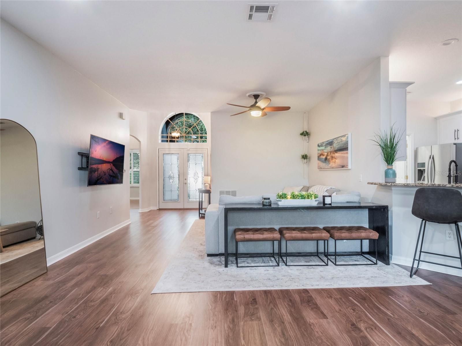 Under contract-accepting backup offers. Imagine enjoying a cup of coffee on your back patio, looking out over the golf course in the early morning light. This stunning 3 bedroom, 2 bathroom home has been fully upgraded to meet your every need. As soon as you step through the front door, you’ll be greeted by an inviting open floor plan that exudes warmth and style. The common areas feature luxury vinyl wood plank flooring, high ceilings, and a neutral color palette that beautifully complements the natural light streaming in from every angle. The kitchen is a chef's dream, boasting 42-inch white shaker solid wood cabinetry, brushed oil bronze hardware, luxurious granite countertops, stainless steel appliances, and a convenient breakfast bar. Adjacent to the kitchen is the dining area, which offers a fantastic view of the golf course. Step outside into your expansive screened-in back patio that seamlessly connects indoor and outdoor living, making your home feel even more spacious. The primary suite, a true retreat, overlooks the golf course and is a private oasis filled with light. It features a beautifully designed bathroom with dual sinks, brushed oil bronze hardware, two closets, a separate toilette room, and a walk-in shower. Bedroom 2 and 3 are located at the front of the house, with a beautifully remodeled bathroom conveniently situated between them. 3rd bedroom is 13x11 with plenty of room to drywall in a closet and still have a nicely sized bedroom. For the right offer, seller is open to adding the closet for the buyer. Additional highlights include a two-car garage, an indoor laundry room, a large pantry, and optional access to the Country Club of Mount Dora. This optional membership includes use of pickleball courts, a pool, tennis courts, the golf course, community events, member dinners, and much more! You also won’t have to mow or hedge - this HOA does it for you! Situated close to historic downtown Mount Dora, you’ll enjoy a rich array of dining options and community events, along with access to the stunning Mount Dora chain of Lakes. Don’t miss out on this opportunity to turn this dream home into your reality. Contact me today to schedule your private showing—you won’t regret it! You can also view the virtual tour here: https://www.tourdrop.com/dtour/387744/Showing-MLS