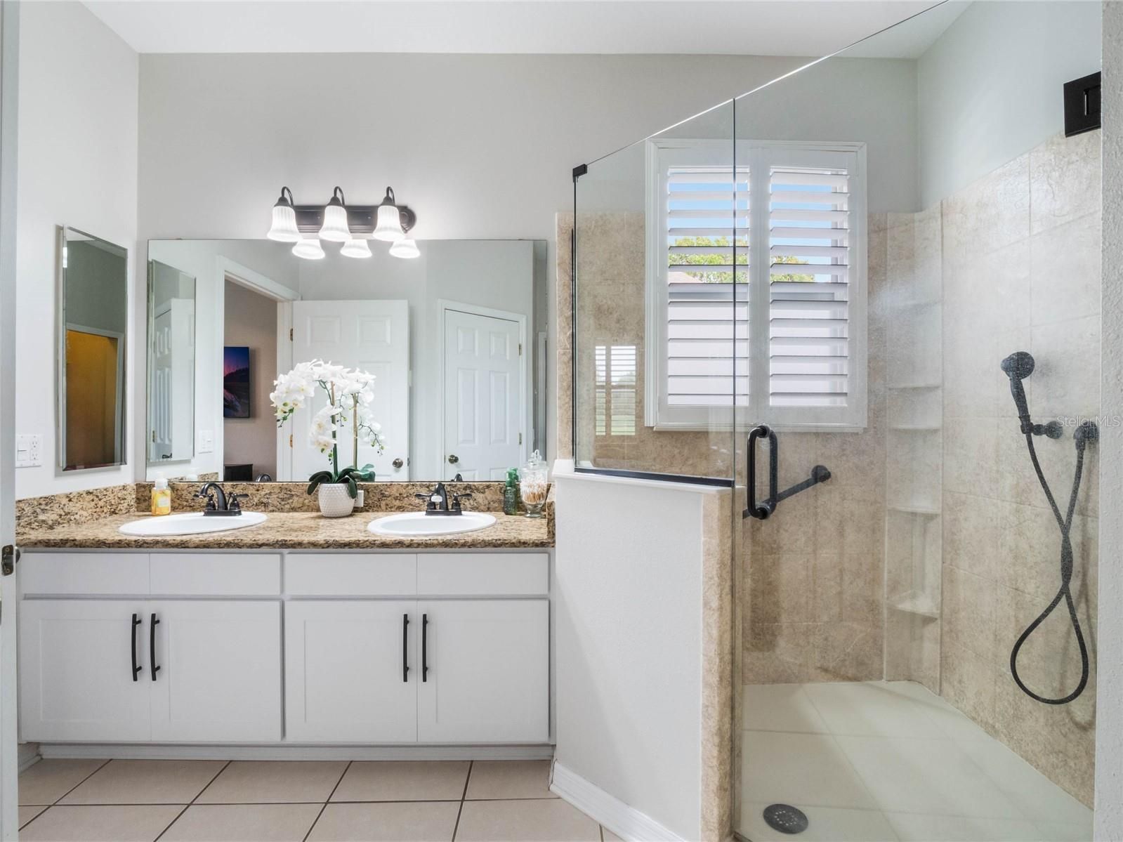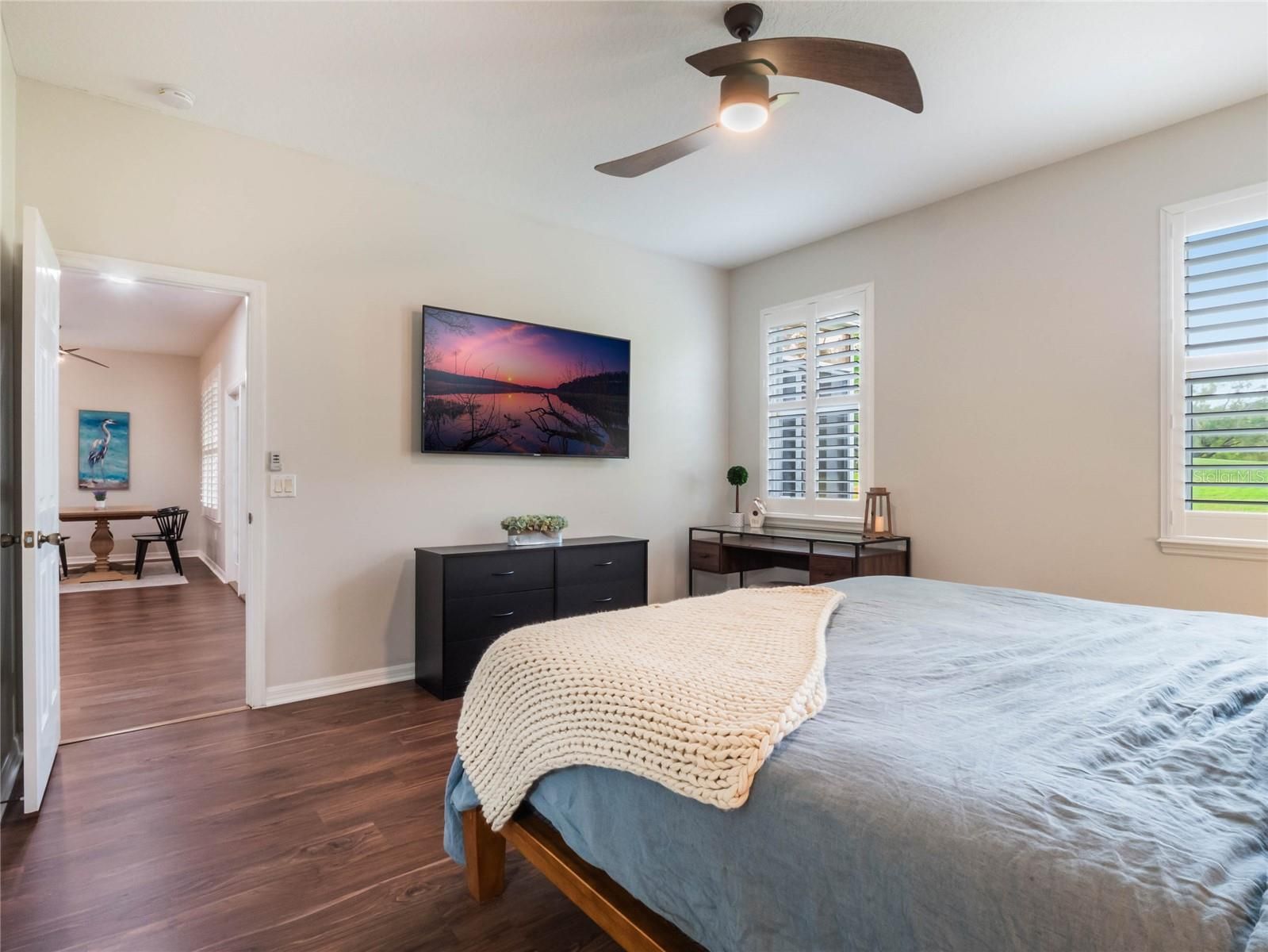 - Ceiling Fan(s), Eat-in Kitchen, Kitchen/Family Room Combo, Open Floorplan, Main Level Primary, Stone Counters, Walk-In Closet(s), Window Treatments