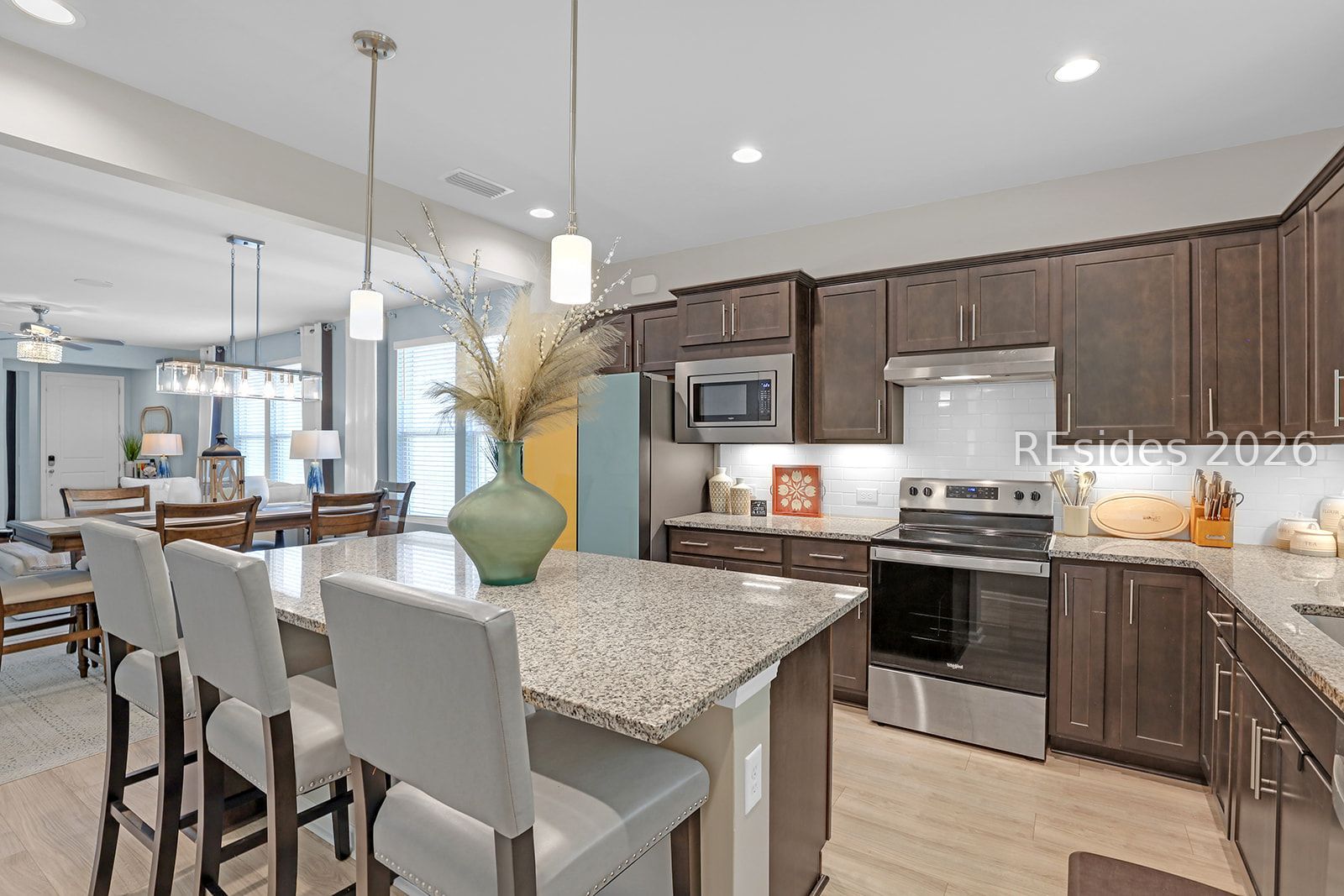 - Ceiling Fan(s), Carbon Monoxide Detector, Main Level Primary, Pull Down Attic Stairs, Smooth Ceilings, Eat-in Kitchen