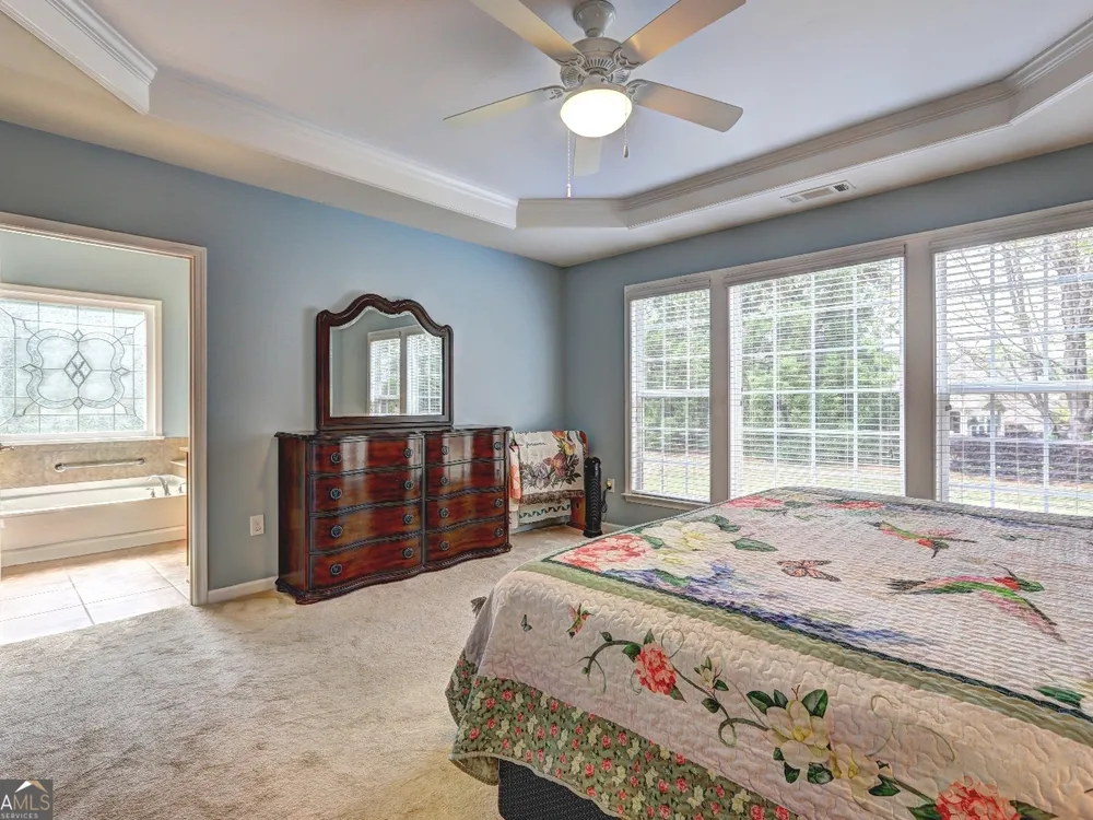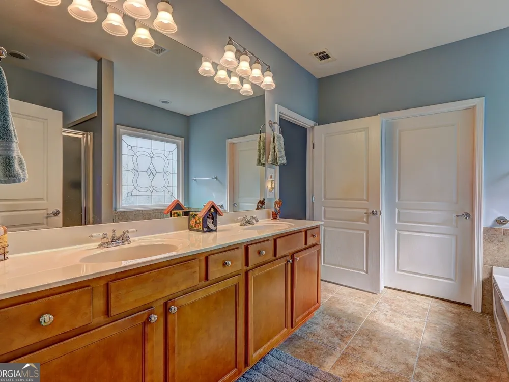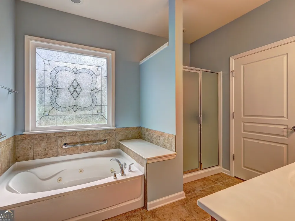 - Double Vanity, High Ceilings, Main Level Primary, Roommate Floorplan, Separate Shower, Soaking Tub, Split Bedrooms, Tile Bath, Tray Ceiling(s), Entrance Foyer, Walk-In Closet(s), Dual Pane Window(s), Great Room, Laundry Facility, Home Office