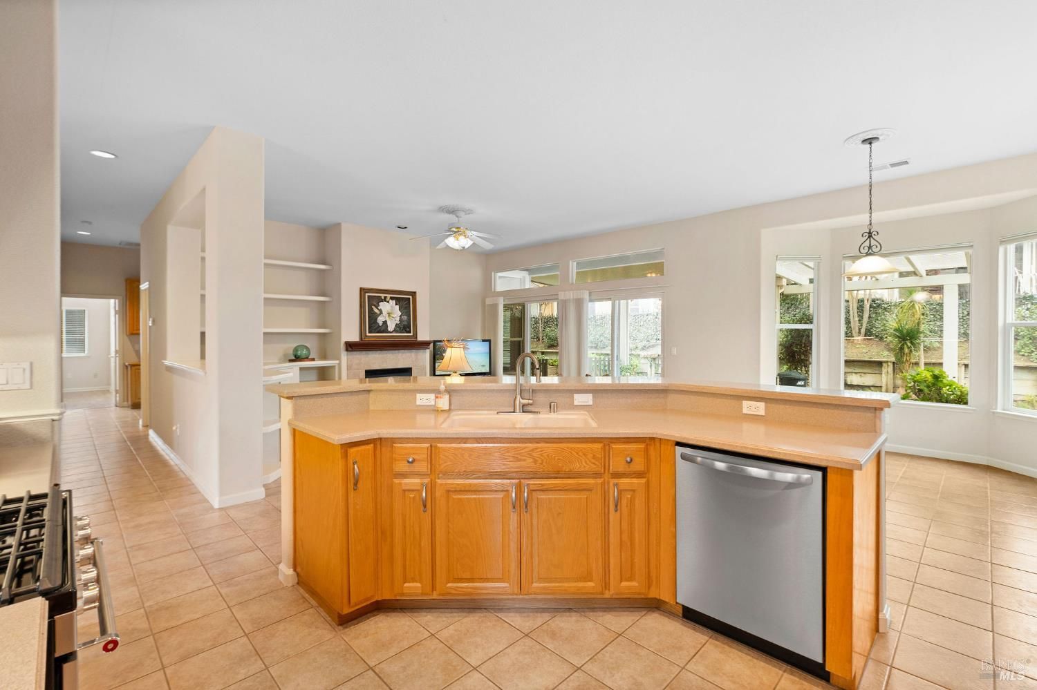 Popular floor plan (the Grand Banks) with 2 bedroom suites, 2.5 baths, and den/office, plus 2-car garage and golf cart garage. New interior paint, new gas range, and family room fireplace complement the lovely features of this delightful home. Well maintained tile and laminate floors throughout, window coverings throughout, and bay windows in the living room, breakfast nook, and primary bedroom, and custom built-in cabinets contribute to the livability of this fine home. Established landscaping front and back as well as covered and uncovered patios add to the enjoyment of the outside of the home. Trilogy offers abundant activities and clubs, and this home is in very close proximity to the Delta Clubhouse, outdoor pool and spa and tennis and pickleball courts, while being a short walk to the Vista Clubhouse with indoor pool and the Health and Wellness Center. This is a fabulous home from which to experience the Trilogy active adult lifestyle!