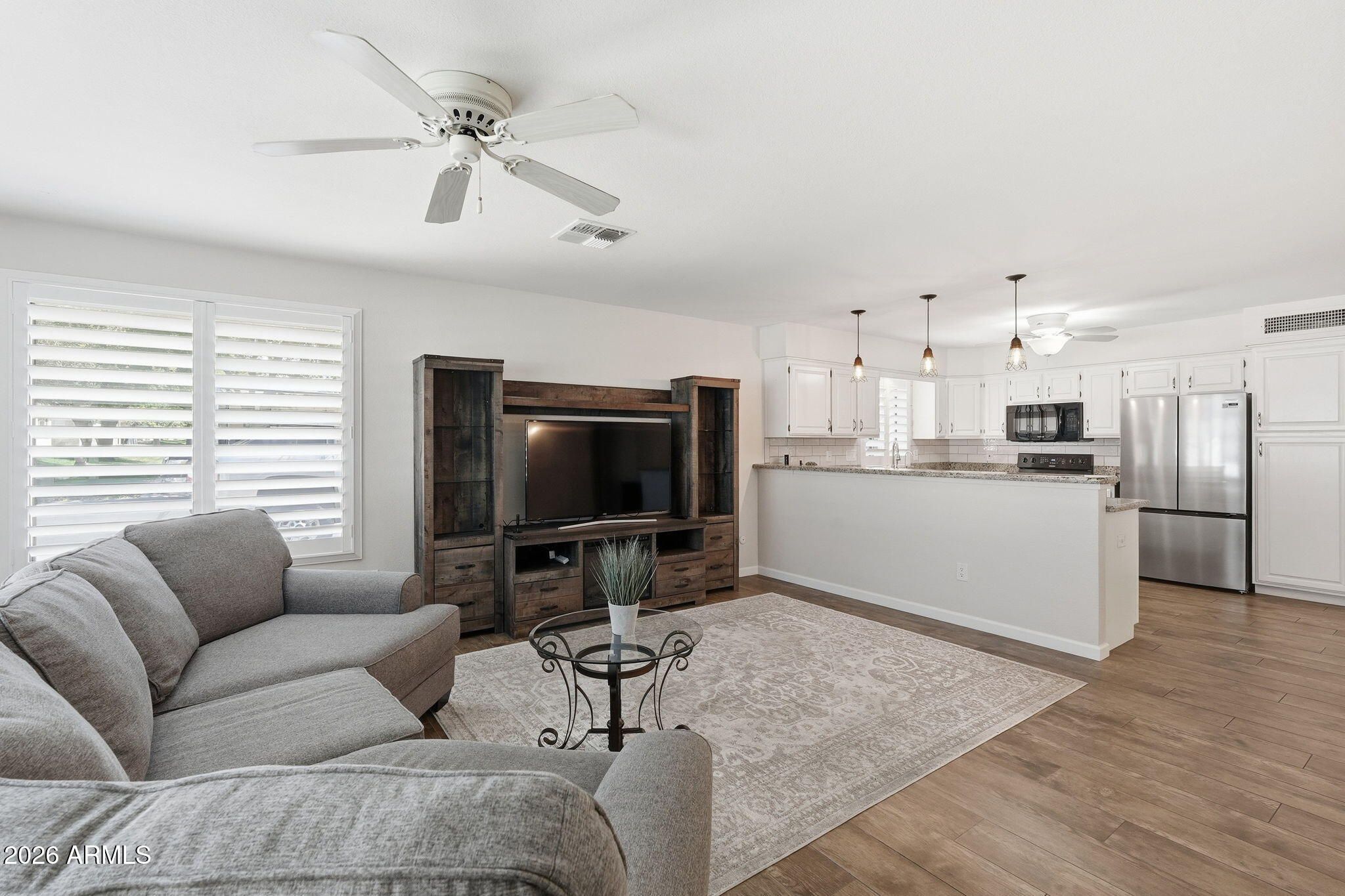 Welcome home to your beautiful 2 bed, 2 bath home in the highly desirable 55+ Sunland Village East community! This bright corner end unit features a 2-car garage, open layout, and an updated kitchen perfect for everyday living or entertaining. Enjoy the added Arizona room providing flexible space for relaxing or hobbies. Major updates include AC (2020), RO system (2023), Water Softener (2023), Attic Insulation added (2023), Water Heater (2023), and Refrigerator (Nov, 2025). Sunland Village East offers resort-style amenities including pools, fitness centers, golf, pickleball, tennis, woodworking shop, clubs, and endless social activities, all conveniently located near shopping, dining, and medical facilities. Low-maintenance living in a vibrant active-adult community.