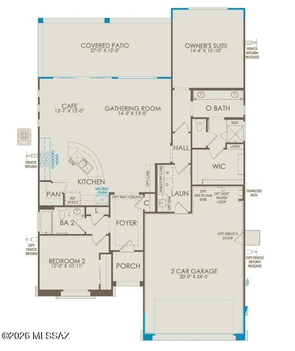 Completion November 2026. This thoughtfully designed Pursuit floor plan features an open-concept layout with 2 bedrooms, a den, and 2 baths. Highlights include 10-foot ceilings, a rear home extension, walk-in pantry, tankless water heater, soft-water plumbing loop, and a 4-foot garage extension. Gas stub-outs are conveniently located in the kitchen, laundry room, and backyard.The kitchen is beautifully appointed with upgraded cabinetry, quartz countertops, and a chef-inspired layout featuring a stainless-steel cooktop, hood, and wall microwave/oven combination. Additional upgrades include pre-wiring for ceiling fans and pendant lighting, whole-house blinds, and carefully curated design finishes throughout.Community clubhouse now open.