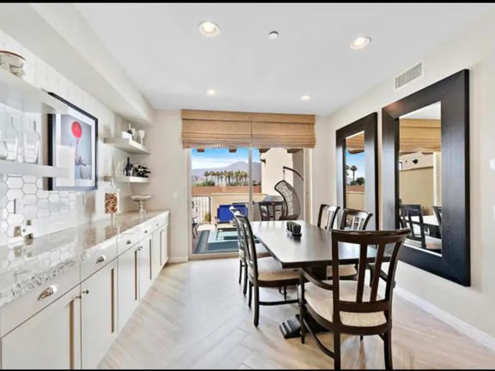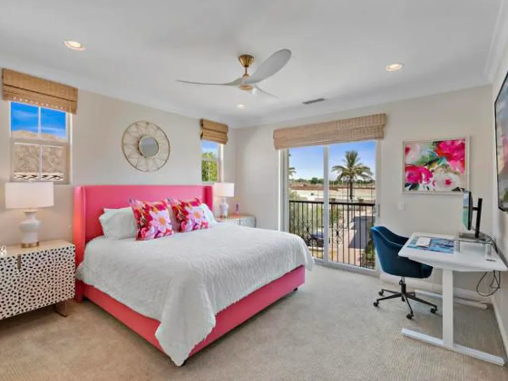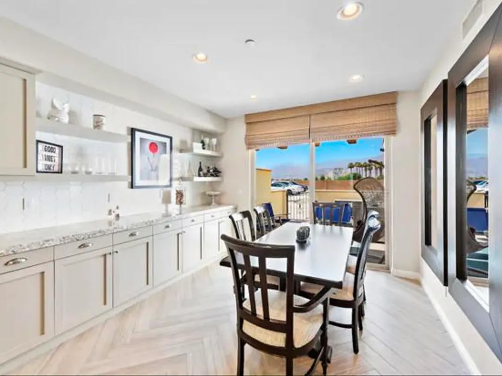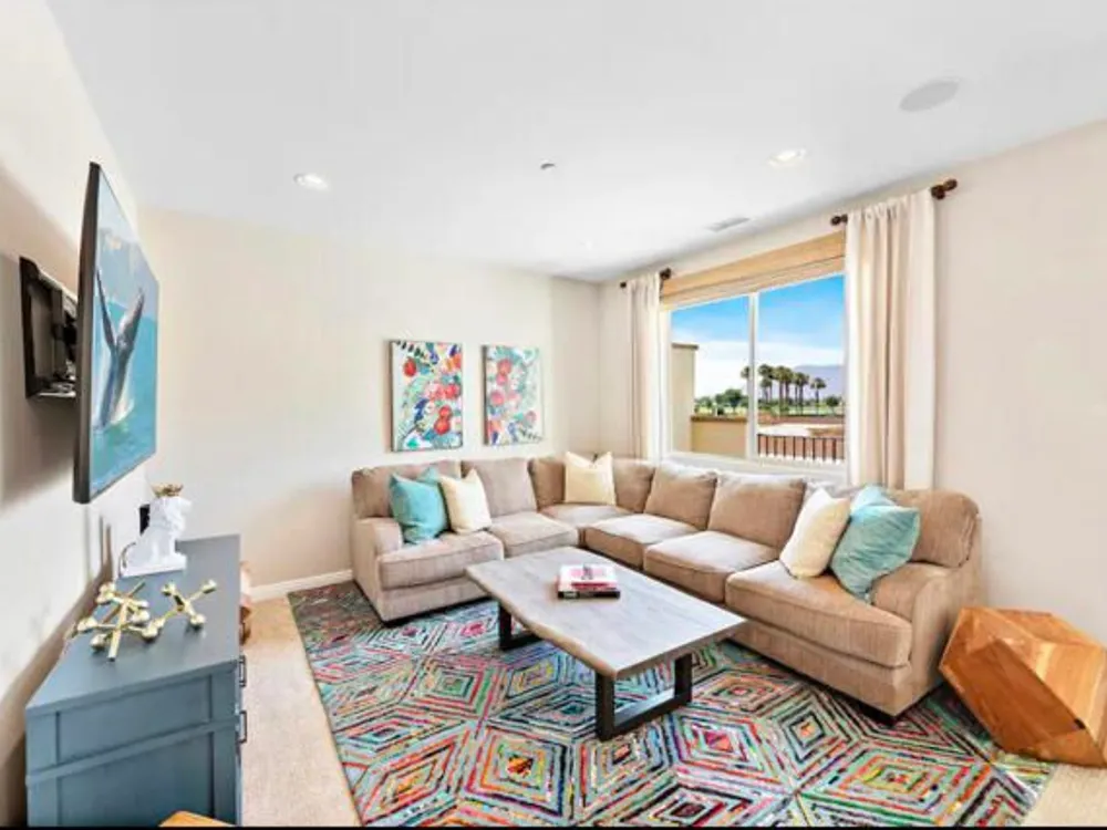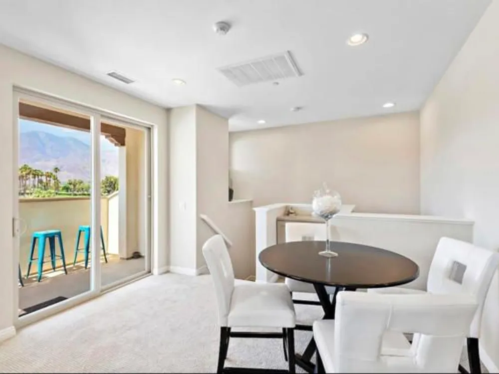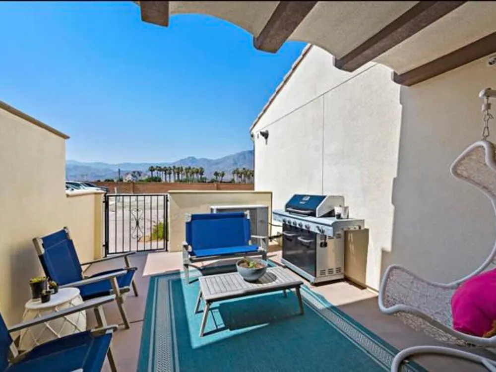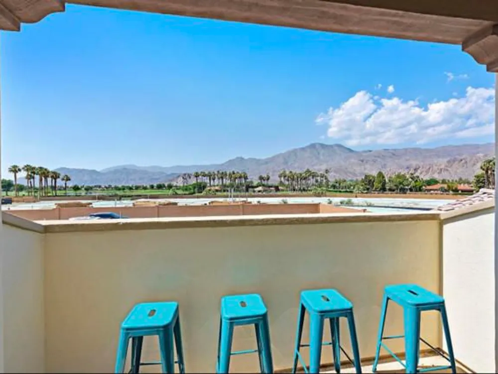 Welcome to PGA West Signature in La Quinta, a luxury community zoned for short-term rentals. This former model home, located next to the clubhouse and resort-style pool, features designer upgrades throughout. A gated courtyard with a fountain leads to an open floor plan filled with natural light, custom tile floors, stylish lighting, and granite countertops. The chef's kitchen includes a waterfall granite island, stainless steel appliances, and floating shelves. The dining room opens to the back patio for seamless indoor-outdoor living. The main floor bedroom suite has high ceilings, quartz countertops, a dual-sink vanity, a step-in shower, and a walk-in closet. Upstairs, two master suites offer spa-inspired baths and walk-in closets. A versatile bonus room opens to a balcony with mountain views. The home also includes multiple office spaces, a laundry room, guest bath, and a two-car garage with epoxy floors and an electric car charger. The low-maintenance front and back patios are perfect for entertaining. PGA West signature residents enjoy amenities like a fitness center, clubhouse, BBQs, bocce ball, and six championship golf courses. This rare property is ideal for investment or a luxurious getaway. Don't miss the opportunity to experience PGA West Signature living!