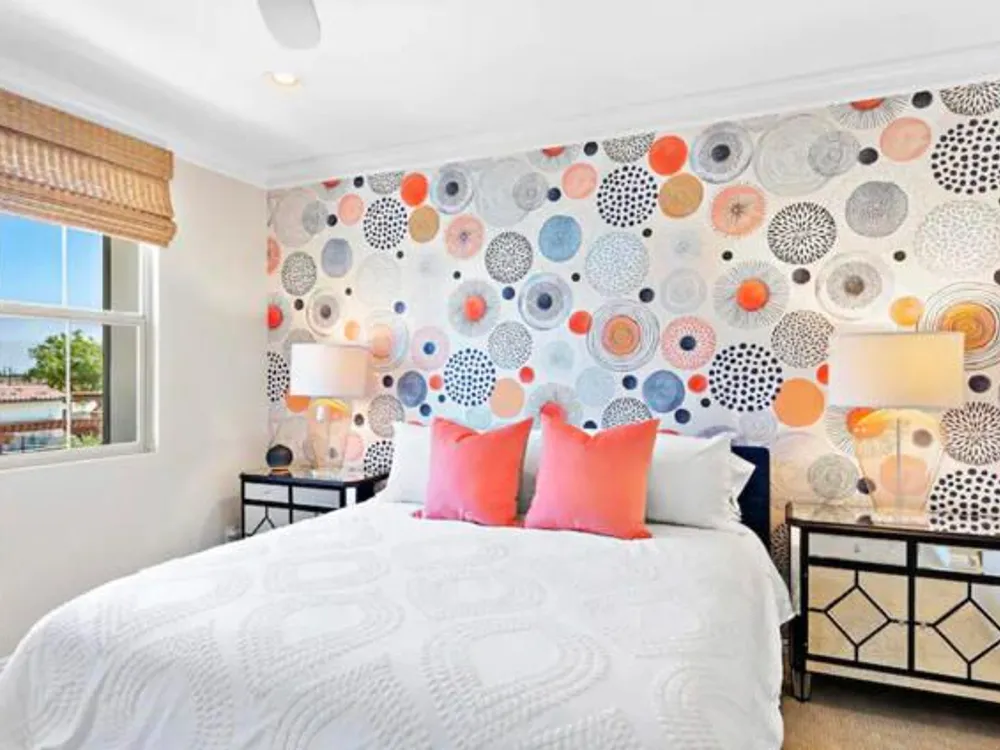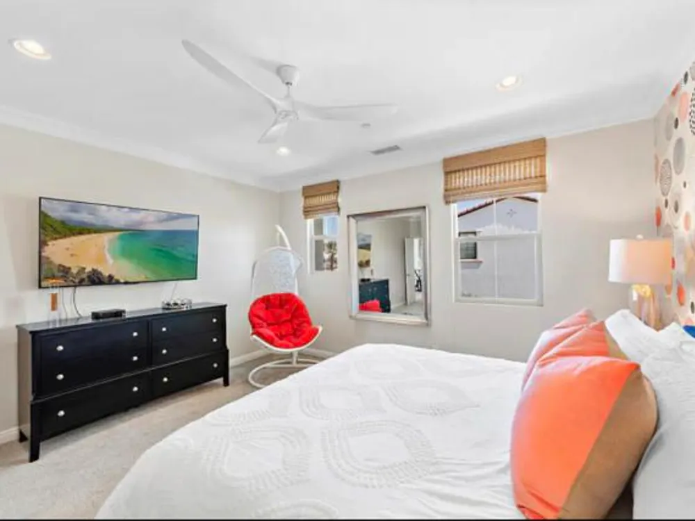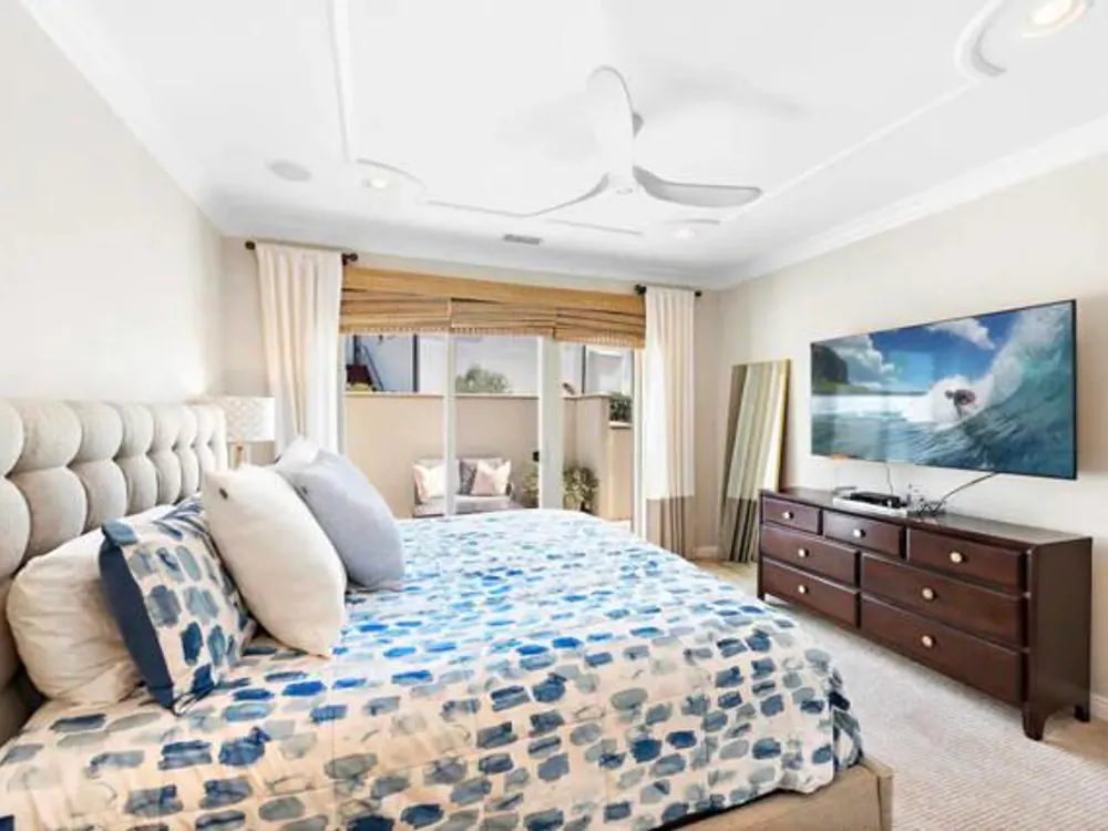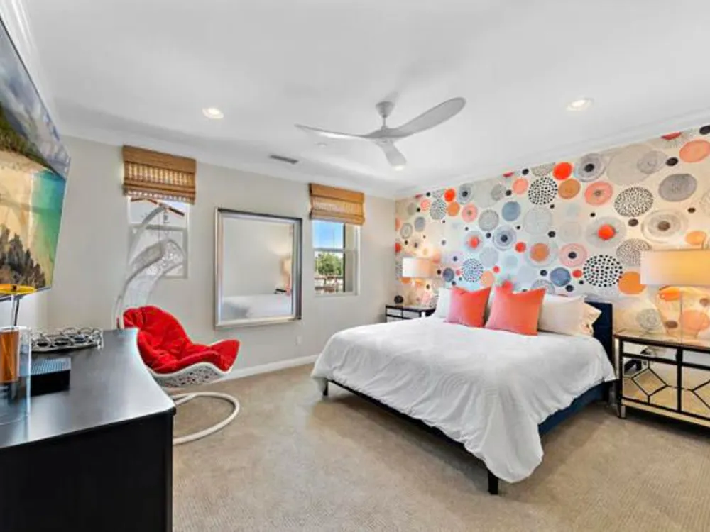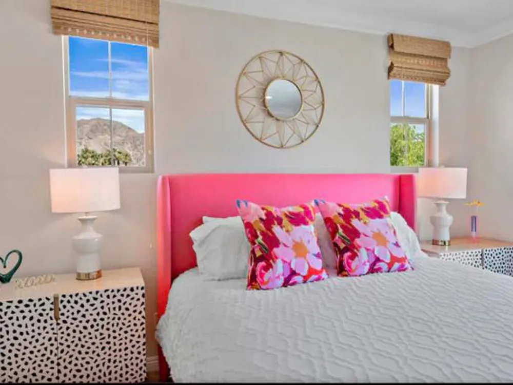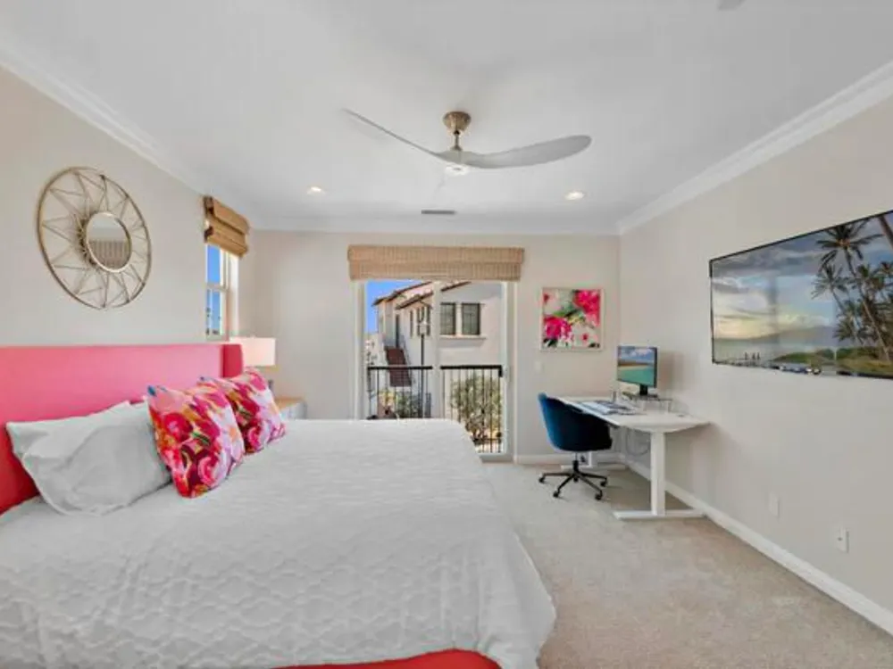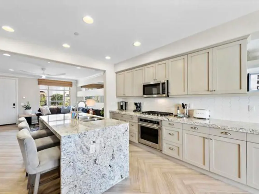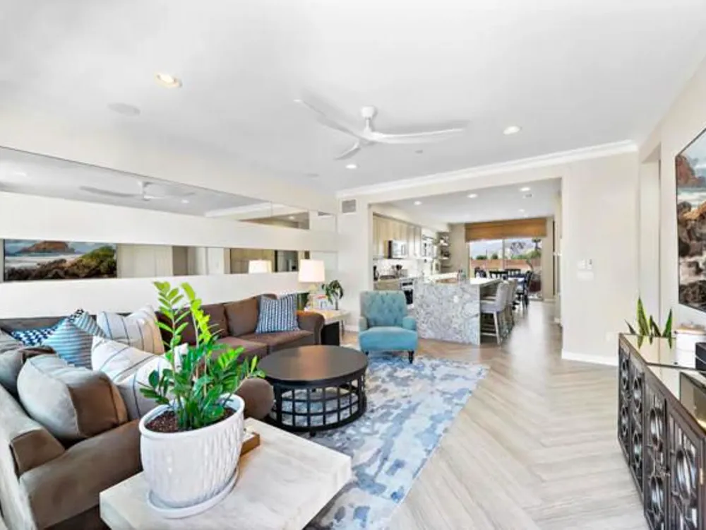 Welcome to PGA West Signature in La Quinta, a luxury community zoned for short-term rentals. This former model home, located next to the clubhouse and resort-style pool, features designer upgrades throughout. A gated courtyard with a fountain leads to an open floor plan filled with natural light, custom tile floors, stylish lighting, and granite countertops. The chef's kitchen includes a waterfall granite island, stainless steel appliances, and floating shelves. The dining room opens to the back patio for seamless indoor-outdoor living. The main floor bedroom suite has high ceilings, quartz countertops, a dual-sink vanity, a step-in shower, and a walk-in closet. Upstairs, two master suites offer spa-inspired baths and walk-in closets. A versatile bonus room opens to a balcony with mountain views. The home also includes multiple office spaces, a laundry room, guest bath, and a two-car garage with epoxy floors and an electric car charger. The low-maintenance front and back patios are perfect for entertaining. PGA West signature residents enjoy amenities like a fitness center, clubhouse, BBQs, bocce ball, and six championship golf courses. This rare property is ideal for investment or a luxurious getaway. Don't miss the opportunity to experience PGA West Signature living!