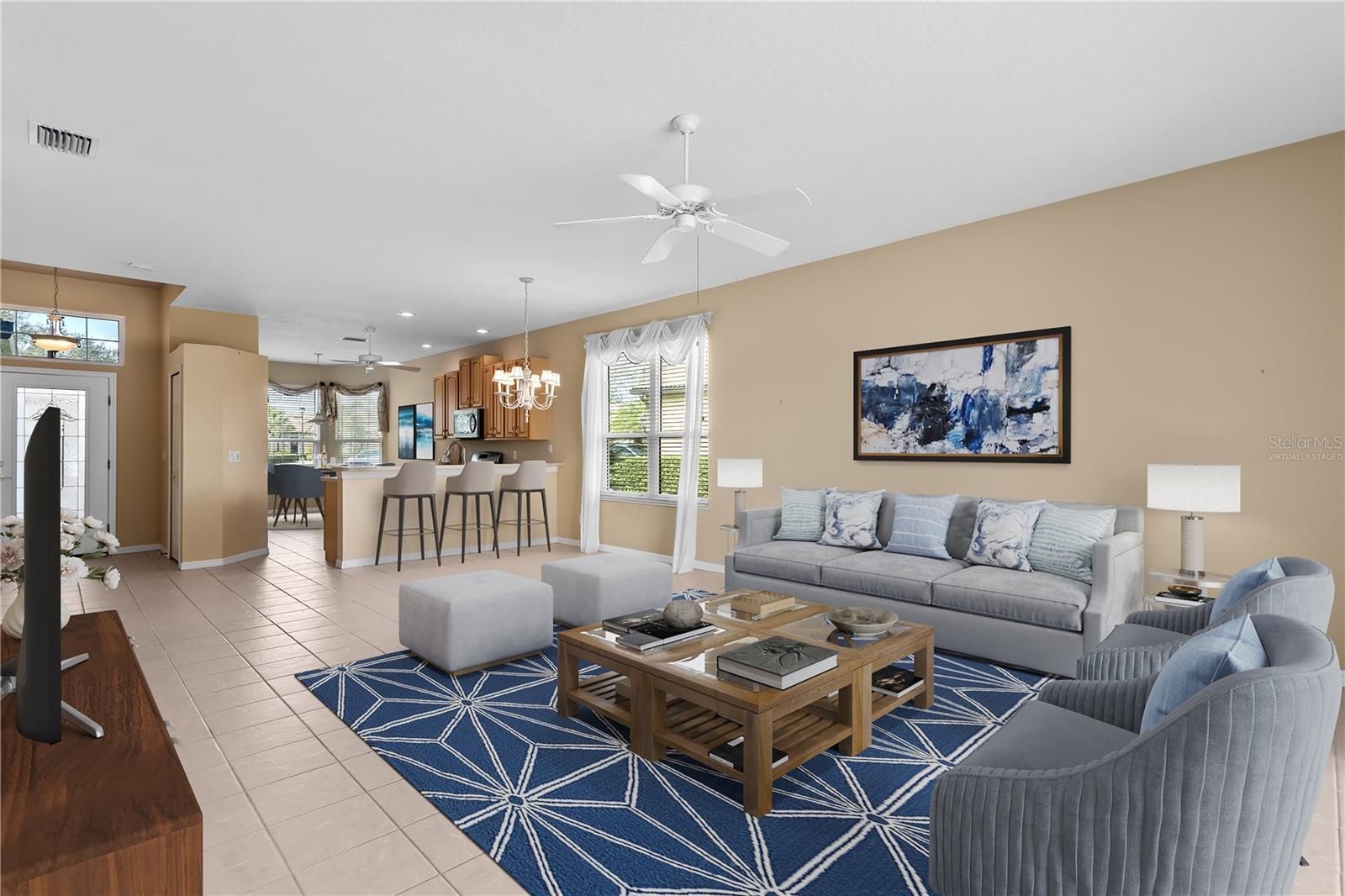 - Eat-in Kitchen, High Ceilings, In-Wall Pest Control, Living/Dining Room, Open Floorplan, Main Level Primary, Walk-In Closet(s), Window Treatments