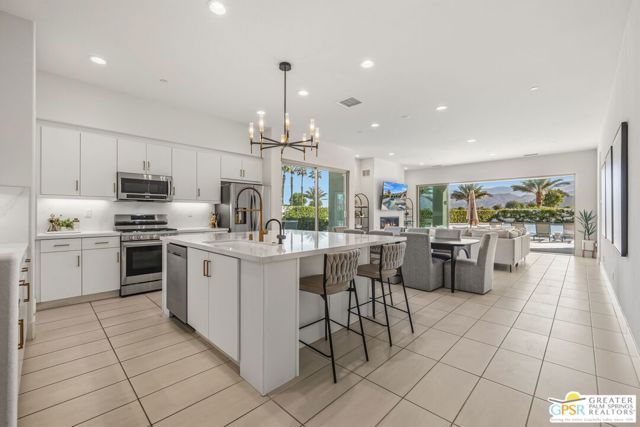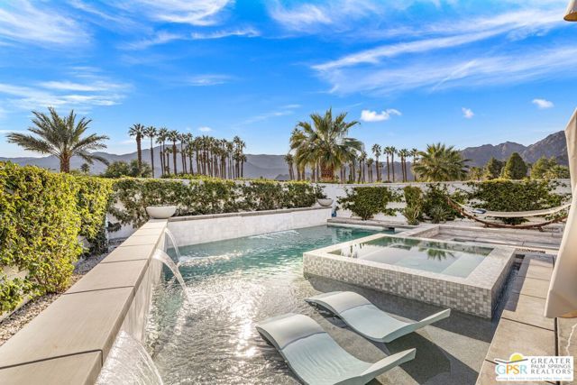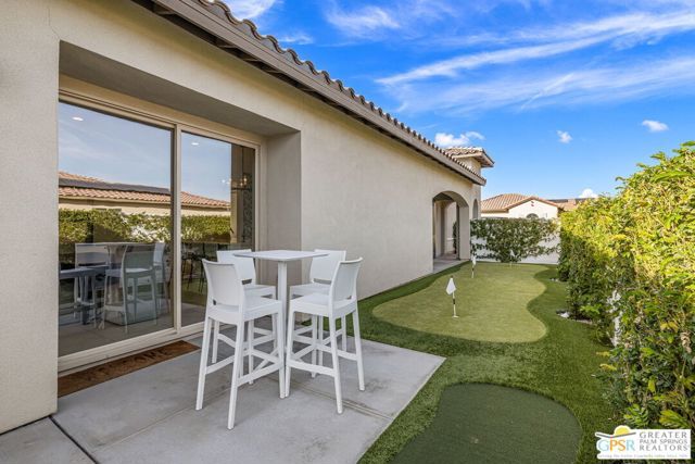 THE ONE you've been waiting for at PGA West Signature where dramatic mountain scenery takes center stage. This residence claims one of the premier lots in the newest enclave at legendary PGA West and delivers a true wow factor with its panoramic south facing mountain views with no rooftops in the way. Built in 2022 and offered furnished, the home's resort style private yard is a full-on destination with outdoor TVs, a putting green, multiple conversation areas, waterfalls cascading into the pool, a Baja style sunning bench, and an exceptional fire pit lounge featuring built in seating that wraps around the space, all perfectly positioned to enjoy the mountains from sunrise to starlight. Open concept living and dining areas with fireplace deliver a fabulous indoor outdoor experience, while stylish finishes and clean lines set the tone throughout. Inside, thoughtful builder upgrades elevate the experience. Bedrooms enjoy a nice separation. Owned rooftop solar and tankless hot water add comfort and efficiency. The two car garage with an additional space for golf cart parking is another plus. An ideal choice for full time living, seasonal enjoyment, or investors who appreciate Signature's flexible short term rental rules. Life at PGA West Signature only heightens the appeal with the Signature Club offering a suite of amenities including fitness, pool, spa, clubhouse gathering areas, and resident events geared toward relaxed desert living. Signature is also one of only three communities in La Quinta where owners may secure a short term rental license, creating both lifestyle and investment advantages, all set within the iconic PGA West master plan known for world class golf, dining, social offerings, and a spectacular mountain backdrop at every turn.