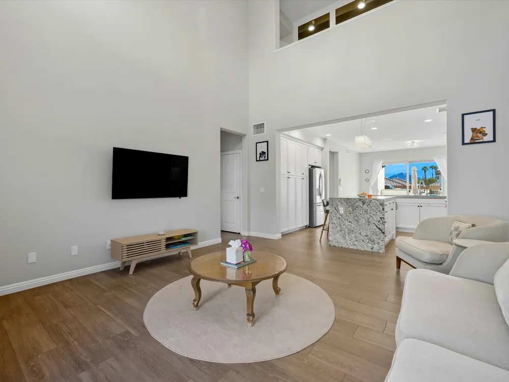 Welcome to PGA West Signature, where resort living meets prime convenience. This 3-bedroom, 3.5-bath residence offers one of the most desirable locations in the community, directly adjacent to the clubhouse for easy access to the gym, shuffleboard, resort-style pool and spa, outdoor BBQs, and more. PGA West is home to the world-famous American Express Tournament, and Signature is one of the few La Quinta communities that allows short-term rentals, providing excellent income potential along with personal enjoyment. Inside, you'll find soaring ceilings, a private office, and a dramatic floor-to-ceiling accent wall with wainscoting and custom baseboards. The open kitchen features a waterfall edge slab counter, modern finishes, and flows seamlessly into the living and dining areas. A spacious two-car garage adds practicality to this stylish home. This is more than a home, it's an opportunity to own a piece of the PGA West lifestyle. Whether as a full-time residence, vacation retreat, or investment, Signature remains one of La Quinta's most sought-after communities. Don't miss out on this opportunity.
