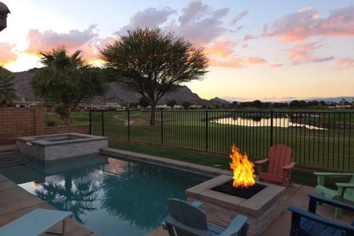 Spectacular Lake, Golf Course & Mountain View Home in PGA WestWelcome to your dream home on the legendary Stadium Course at PGA West, perched directly on the 18th green with breathtaking views of the lake, fairway, and mountains. This rare location gives you a front-row seat to the annual American Express PGA Tour event, offering an unmatched lifestyle for golf enthusiasts and entertainers alike. Step outside to your private oasis, where a sparkling pool, spa, and gas fire pit create the perfect backdrop for enjoying vibrant sunsets and year-round outdoor living. Whether you're hosting friends or unwinding in the spa, every moment here feels like a five-star resort experience. This newer home offers 3 spacious bedrooms and 3 bathrooms, designed with a luxurious open floor plan. The chef's kitchen features a large center island for casual gatherings, complemented by premium appliances and elegant finishes. Energy-efficient owned solar panels ensure low utility costs, while the newer construction means limited wear on appliances, pool systems, and HVAC.Located in a sought-after enclave of PGA West, this home combines the prestige of world-class golf with modern comforts. For investors, a short-term vacation rental (STVR) permit is available, making this an exceptional income opportunity as well as your personal home. This property offers it all--views, lifestyle, and investment potential. It is furnished per inventory. Don't wait--schedule your private showing today.