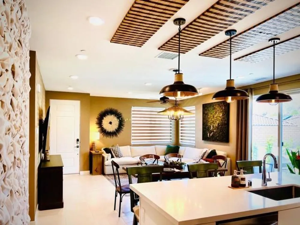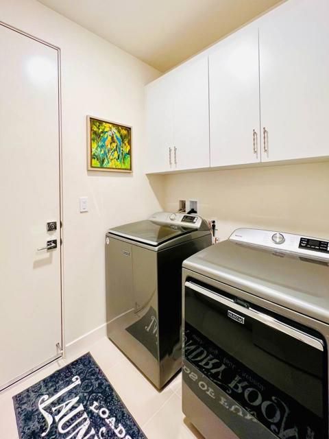 Discover the ultimate desert retreat in PGA West Signature, La Quinta's premier short-term rental community. This nearly new, professionally designed home boasts stylish, high-end furnishings and an open-concept layout, perfect for modern living. Built in 2023, this end-unit home features 2 bedrooms and 2 bathrooms across 1,222 square feet of thoughtfully designed space. Positioned adjacent to additional parking and next to the pool, it offers breathtaking mountain views and includes an electric car charging outlet. Located in a 24/7 guard-gated community, the home ensures privacy, security, and access to world-class amenities, all while being close to both private and public clubhouses of PGA West.The modern kitchen is a chef's delight, featuring an island with bar seating, white cabinetry, quartz countertops, a tile backsplash, and stainless steel appliances. The primary suite is a luxurious retreat, complete with a walk-in closet and an ensuite bath that includes dual sinks and a spacious walk-in shower, evoking a spa-like experience. Throughout the home, luxury tile flooring enhances the contemporary design. Additional conveniences include a dedicated laundry room equipped with a new Maytag washer and dryer, as well as a tankless water heater for energy efficiency.Residents enjoy exclusive access to the Signature Club, which offers a resort-style pool, a fully equipped gym, a bocce court, BBQ areas, and a beautiful recreation gathering space. As the home of the annual American Express Golf Tournament, PGA West provides an unparalleled lifestyle where you can golf, hike, bike, swim, and relax in a premier desert setting. Whether you're looking for an income-generating property or your own private getaway, this exceptional home delivers the ultimate resort lifestyle. Your dream home awaits--schedule a showing today!