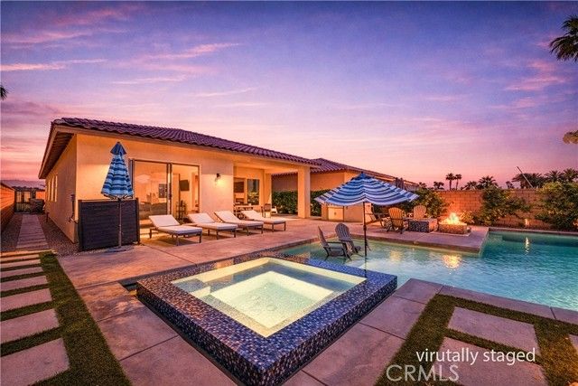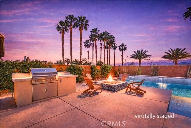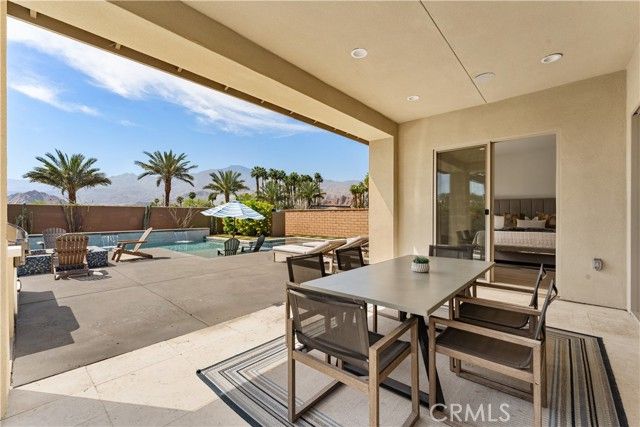 Welcome to your private desert retreat located within the prestigious Signature community of PGA West. This beautifully furnished 3-bedroom, 2.5 bath residence offers the perfect blend of luxury living, resort style amenities, and exceptional short-term rental history. Designed for seamless indoor-outdoor living, the home features a dramatic wall to wall retractable glass door system blending interior comfort with outdoor space showcasing the breathtaking backyard oasis and mountain views from nearly every angle. The open floor concept layout is ideal for entertaining, with spacious living area that flows effortlessly into the dining space and modern kitchen, the chef in the family will feel right at home with all the amenities this kitchen has to offer, large kitchen island allows for more gatherings. Step outside to a sparkling pool, spa multiple lounging areas, firepit for your enjoyment and panoramic desert and mountain vistas that stretch for days. Whether hosting guests or enjoying a quite sunset, this outdoor space delivers the ultimate resort lifestyle. Ideally situated with only one neighboring property, this home offers added privacy. Offered fully furnished (per inventory), this turnkey property is perfectly suited as a primary residence, second home or income-producing vacation rental. Located just minutes from world-class golf, dining, and renowned desert events, this is an exceptional opportunity to own in one of La Quinta's most sought-after communities.