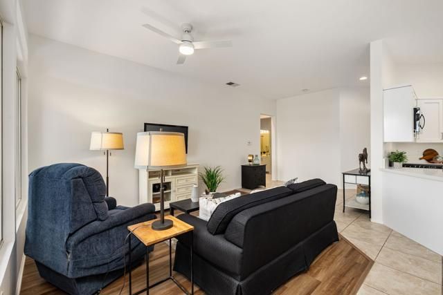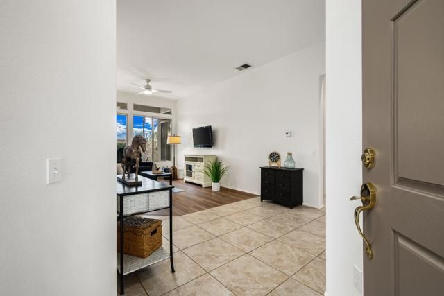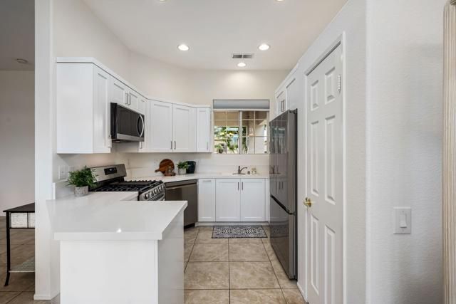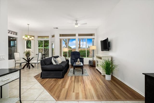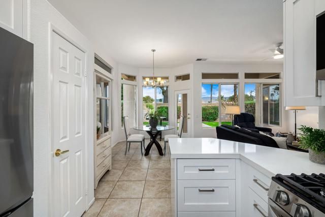 Welcome to effortless desert living in the highly sought-after 55+ community of Heritage Palms.This light, bright, move-in-ready 2-bedroom, 2-bathroom residence is truly move-in ready! The open living and dining areas create an easy, comfortable flow for everyday living and casual entertaining. The fully renovated kitchen is BRAND NEW and beautifully appointed with custom cabinetry, quartz countertops, a large pantry, and new, never-used stainless steel appliances.Large windows fill the home with natural light, and a door opens to the private rear yard, perfect for morning coffee or evening relaxation. The spacious primary suite features an en suite bathroom with dual vanities and a walk-in closet, while the secondary bedroom is ideal for guests or a home office. An interior laundry room and a two-car garage with room for storage complete the functional layout.Recent upgrades include fresh interior paint, new luxury plank vinyl flooring, new window coverings, and updated ceiling fans throughout.Enjoy a private front courtyard and a serene rear yard with a covered patio and mature landscaping, offering outdoor spaces that are both usable and inviting.Heritage Palms offers resort-style amenities centered around an 18-hole championship golf course, with indoor and outdoor pools, a fitness center with classes including water aerobics, tennis and pickleball courts, an on-site restaurant with outdoor patio, billiards, card rooms, social clubs, and gated security. HOA dues of $600 per month include cable, internet, security, and access to all amenities except pay-as-you-play golf.This is low-maintenance living without compromise. Pristine, upgraded, and ready for its next chapter.