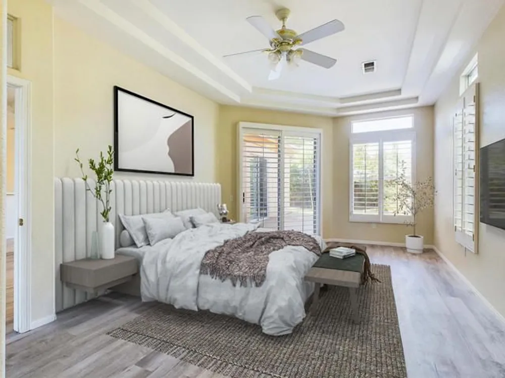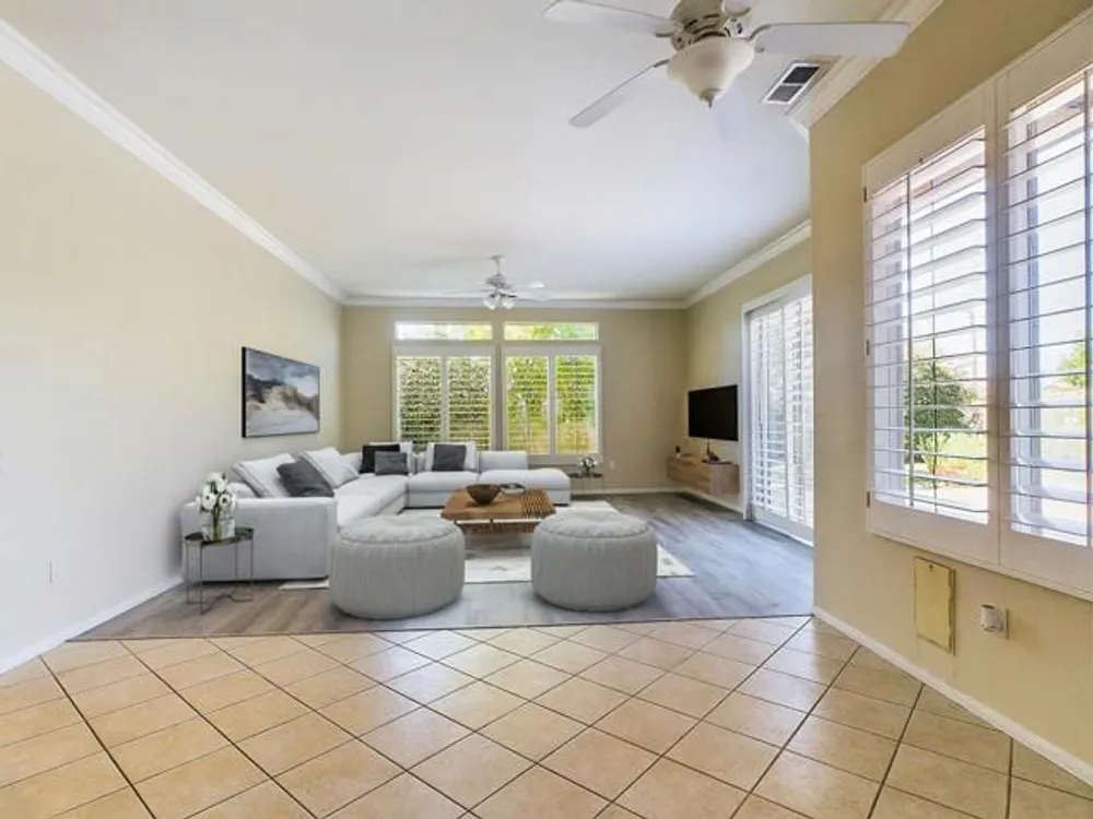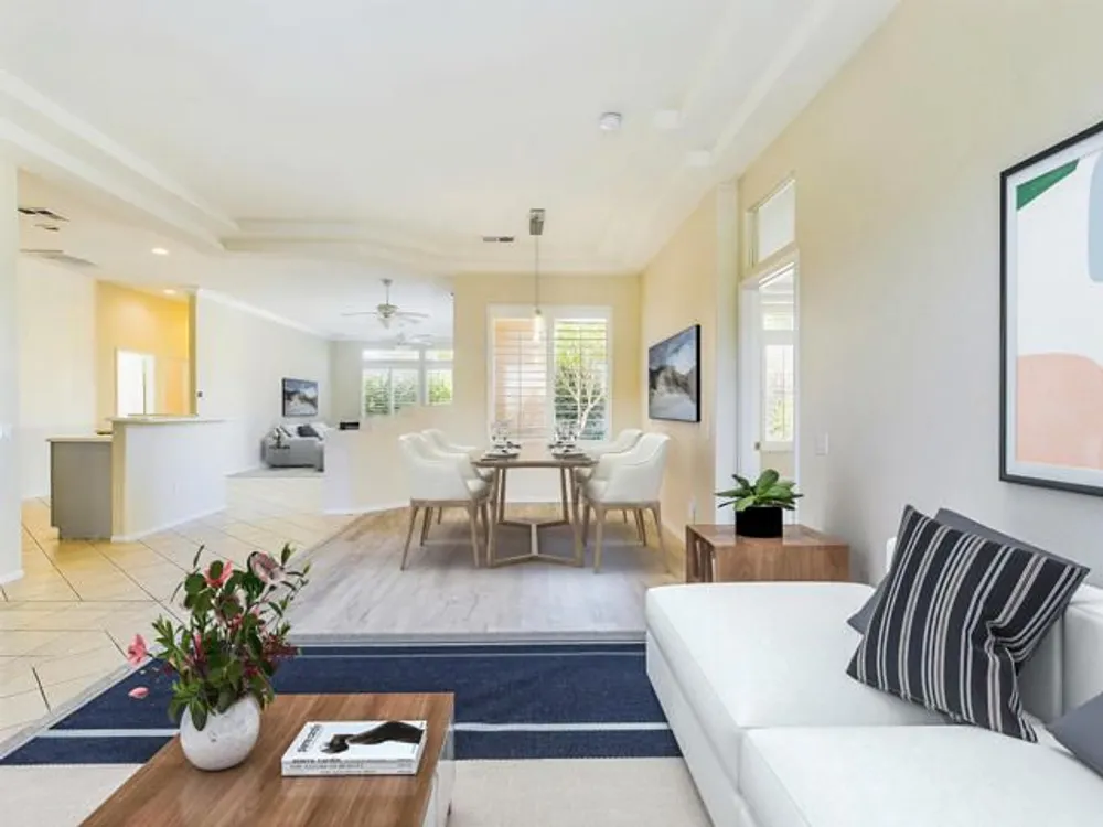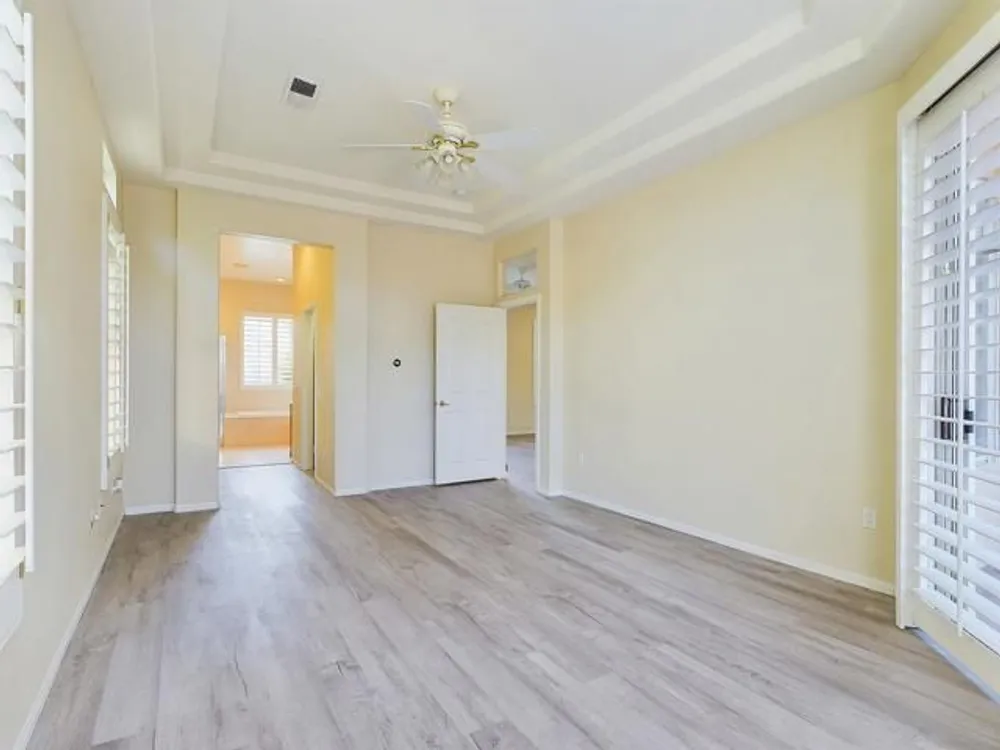 Welcome to the esteemed Heritage Palms Country Club. This 3-Bedroom 2-Bath home features a brand new HVAC system, newly painted interior, and new luxury vinyl flooring throughout. Step inside to discover the elegance of 9 ft tray ceilings, a spacious open kitchen, a delightful dining area, a comfortable living room, and an inviting family room. The home is adorned with custom shutters and crown moldings, adding a touch of sophistication. The sale includes a brand new refrigerator, washer and dryer.Experience the vibrant lifestyle of Heritage Palms with access to an array of amenities. Enjoy indoor and outdoor pools, a beautifully designed 18-hole golf course, tennis and pickleball courts, a clubhouse, spas, and a state-of-the-art gym, too many to list here. This home is located minutes away to the world renowned Indian Wells Tennis Gardens and shopping. Don't miss out on this excellent opportunity!