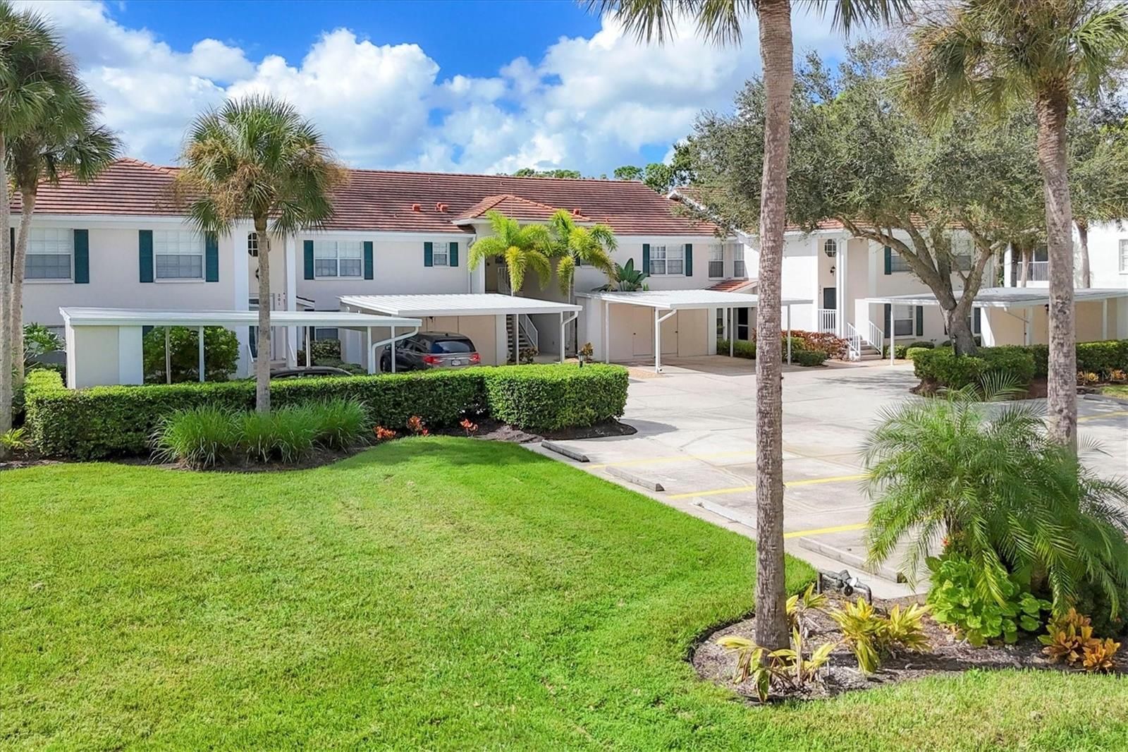 This light, bright and well maintained Plantation jewel in Venice is move-in ready. Offers 3 bedrooms, 2 full baths, plantation shutters throughout, and end-unit privacy with stunning golf views of the Bobcat Course from the screened lanai balcony. Located in the highly-desired St. Andrews Park at the Plantation Golf and Country Club, new owners will appreciate the updated kitchen, elevated ceilings, laundry closet with cabinets, guest parking and carport with locked storage area. With no CCD fees, this well-established community welcomes both golf carts and golfers who may wish to optionally join the Plantation Golf land Country Club. All residents enjoy low-cost utilities through association fees that cover water/sewer, cable, trash, gardening and exterior maintenance--and a location that is just minutes from Venice's stunning beaches, plentiful dining options, shopping, historic downtown activities and lively theater performances. Furnishings negotiable.