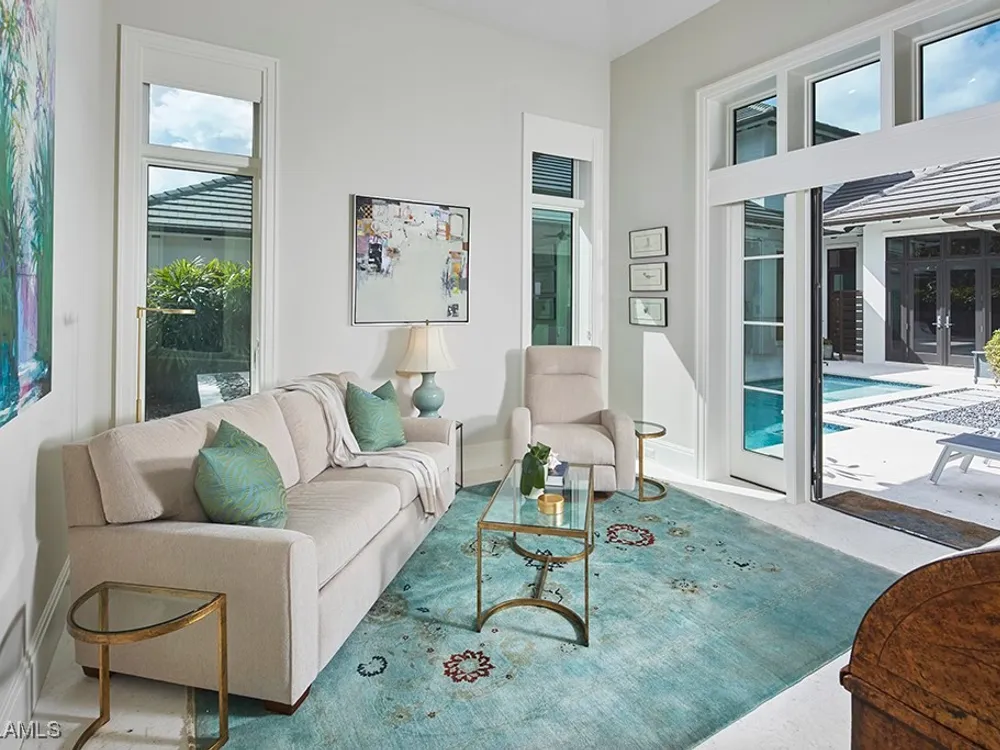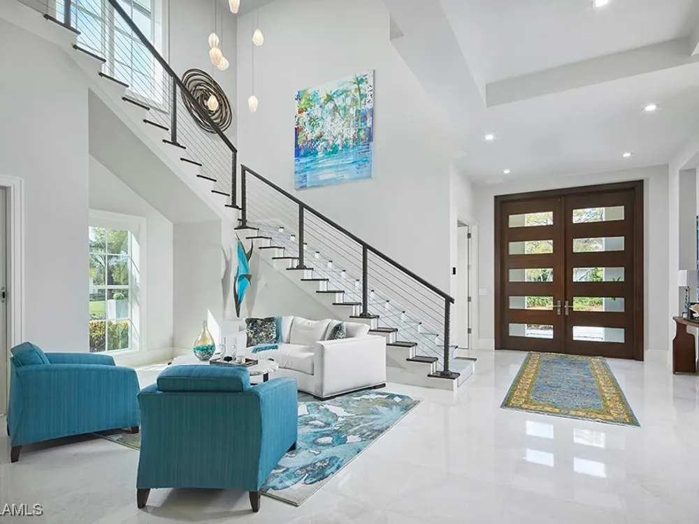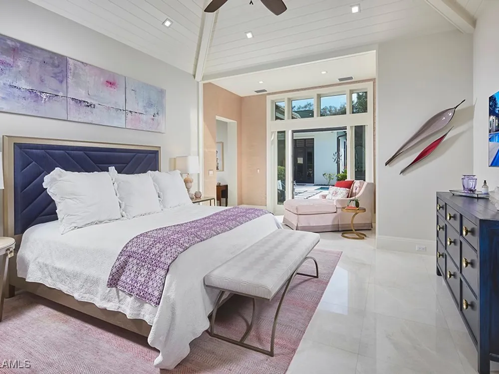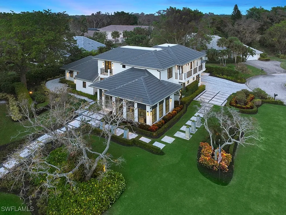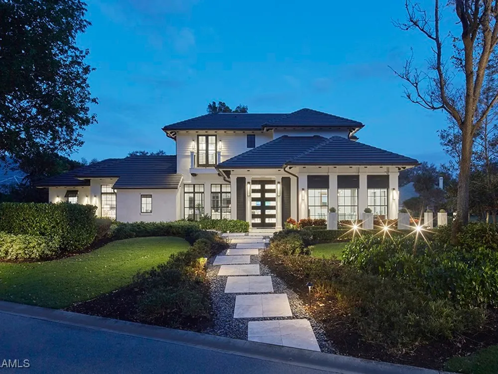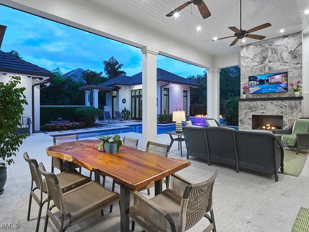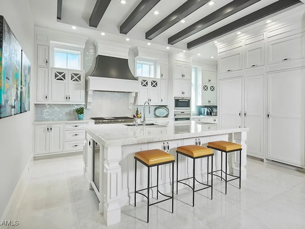 Discover unparalleled luxury in this 2018-built masterpiece located in the prestigious Oakmont subdivision of Pelican Bay. Perfectly positioned on a generous 0.38-acre corner lot in a quiet cul-de-sac, this exquisite residence offers 4,607 square feet under air and 6,137 square feet under roof. Set at a high elevation with no history of storm flooding, the home provides both peace of mind and refined living. Inside, soaring vaulted and tray ceilings, a striking open floating staircase, and gleaming marble floors highlight the home’s sophisticated design, while natural light pours in through Anderson impact windows. The chef’s kitchen is a showstopper, featuring Cristallo quartz countertops, Wolf and Sub-Zero appliances, a spacious eat-in island, wine cooler, and walk-in pantry—ideal for everyday comfort and upscale entertaining. The thoughtfully designed layout includes four en-suite bedrooms and a formal dining room that can double as a den. Upstairs, two guest suites and a spacious loft offer flexible living options. A detached casita provides a private fourth bedroom, perfect for guests or a home office, and two laundry rooms—one on each floor—add everyday convenience. Step outside into your private outdoor oasis. The expansive lanai features a summer kitchen and dramatic floor-to-ceiling marble fireplace, perfect for entertaining. Enjoy the saltwater pool with sun shelf and integrated spa, surrounded by lush landscaping, built-in seating, and complete privacy. An outdoor shower adds to the resort-like experience. Additional highlights include a three-car garage, motorized hurricane screens, and a new 24kW whole-house generator. Ideally located within the community, this home offers easy access to Pelican Bay’s world-class amenities: nearly three miles of private beach, beachfront restaurants, a state-of-the-art fitness center, 18 Har-Tru tennis courts, and upcoming pickleball courts. You're also just minutes from Waterside Shops, Artis–Naples, and a variety of upscale dining and shopping options. This exceptional property seamlessly blends elegance, comfort, and an unbeatable location—delivering the ultimate Naples lifestyle.