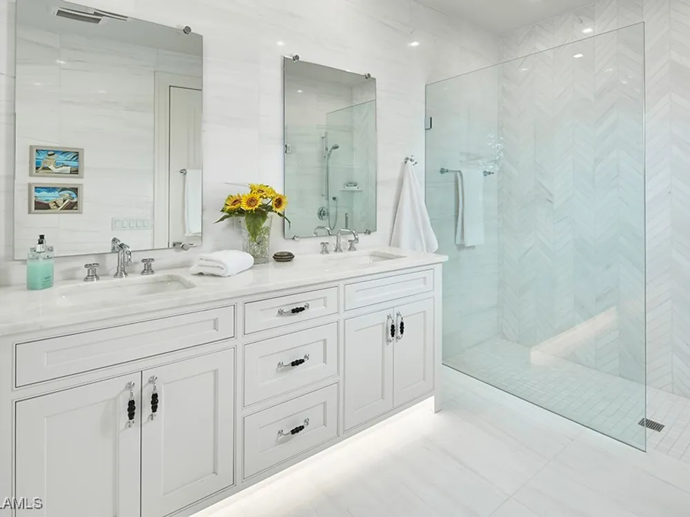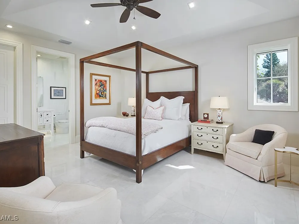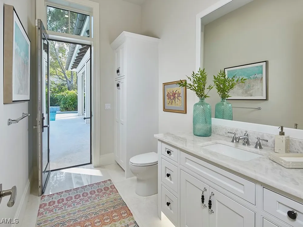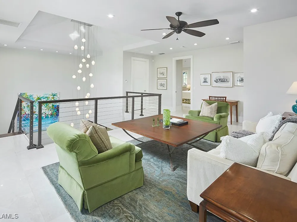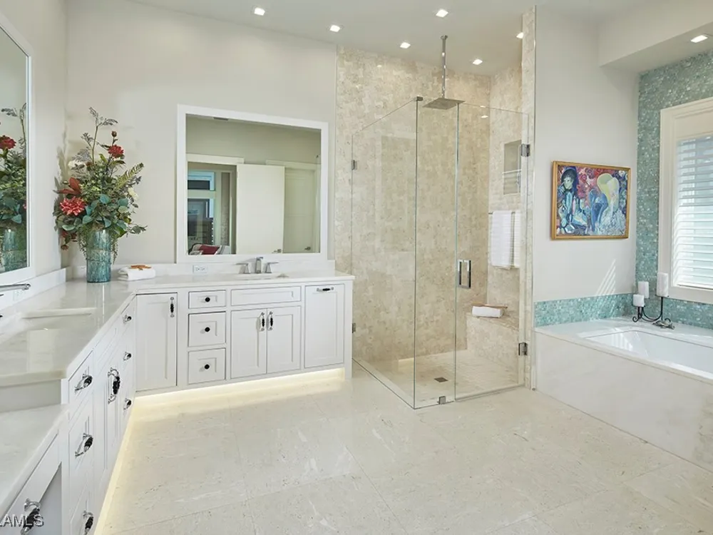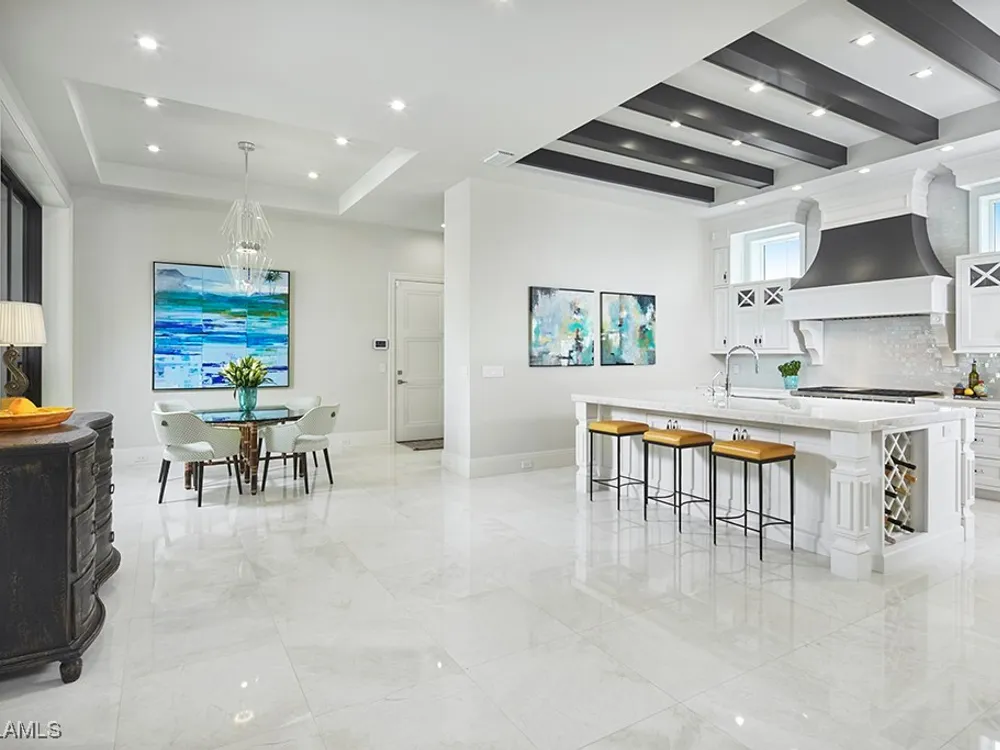 Discover unparalleled luxury in this 2018-built masterpiece located in the prestigious Oakmont subdivision of Pelican Bay. Perfectly positioned on a generous 0.38-acre corner lot in a quiet cul-de-sac, this exquisite residence offers 4,607 square feet under air and 6,137 square feet under roof. Set at a high elevation with no history of storm flooding, the home provides both peace of mind and refined living. Inside, soaring vaulted and tray ceilings, a striking open floating staircase, and gleaming marble floors highlight the home’s sophisticated design, while natural light pours in through Anderson impact windows. The chef’s kitchen is a showstopper, featuring Cristallo quartz countertops, Wolf and Sub-Zero appliances, a spacious eat-in island, wine cooler, and walk-in pantry—ideal for everyday comfort and upscale entertaining. The thoughtfully designed layout includes four en-suite bedrooms and a formal dining room that can double as a den. Upstairs, two guest suites and a spacious loft offer flexible living options. A detached casita provides a private fourth bedroom, perfect for guests or a home office, and two laundry rooms—one on each floor—add everyday convenience. Step outside into your private outdoor oasis. The expansive lanai features a summer kitchen and dramatic floor-to-ceiling marble fireplace, perfect for entertaining. Enjoy the saltwater pool with sun shelf and integrated spa, surrounded by lush landscaping, built-in seating, and complete privacy. An outdoor shower adds to the resort-like experience. Additional highlights include a three-car garage, motorized hurricane screens, and a new 24kW whole-house generator. Ideally located within the community, this home offers easy access to Pelican Bay’s world-class amenities: nearly three miles of private beach, beachfront restaurants, a state-of-the-art fitness center, 18 Har-Tru tennis courts, and upcoming pickleball courts. You're also just minutes from Waterside Shops, Artis–Naples, and a variety of upscale dining and shopping options. This exceptional property seamlessly blends elegance, comfort, and an unbeatable location—delivering the ultimate Naples lifestyle.