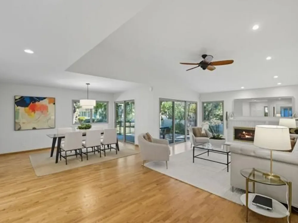 Located in the exclusive Villages Golf & Country Club 55+ community, this beautifully updated unit with new bathrooms and renovated kitchen (work done by licensed contractors) offers comfortable, single-level living with the convenience of 2 car garage. The office can be made into a 3rd bedroom. Nestled on a peaceful cul-de-sac in a gated community with 24/7 security. Enjoy a bright, open floor plan with high ceilings, a spacious living room with fireplace, and separate dining room accessing the outdoor area ideal for entertaining. The kitchen features quartz countertops and stainless steel appliances. The primary suite includes dual sinks and ample closet space. Relax on the private patio or explore the lush, resort-style grounds with golf, tennis, pickleball, bocce ball, 4 pools, fitness center, hiking trails, horse barn, clubs, restaurants, and more.