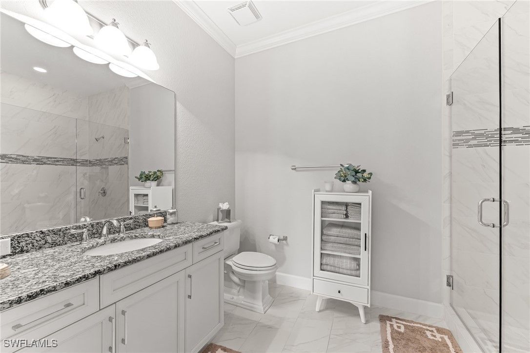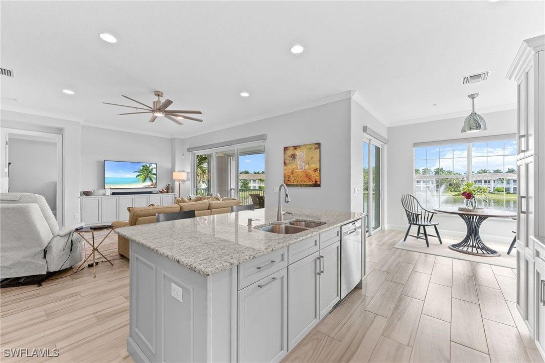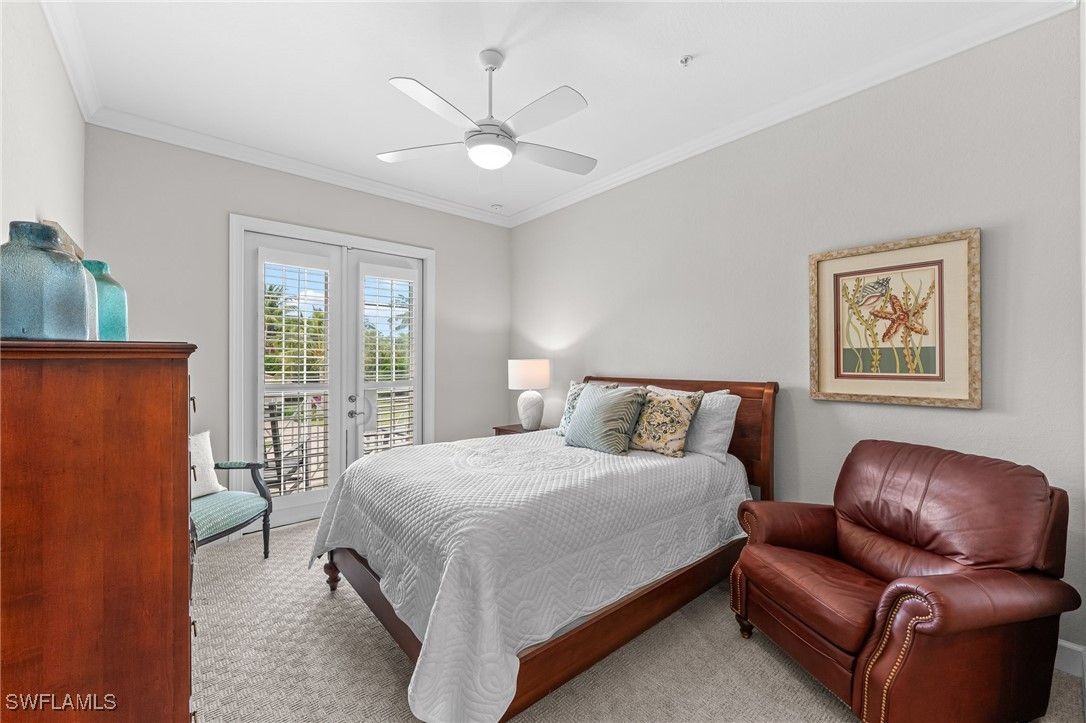 Rarely Available Luxury! Experience the pinnacle of resort living in this meticulously maintained, second-floor St. Andrews model at Lely Resort's exclusive Signature Club. Built by Stock Development in 2015, this highly desirable 2,738 sq. ft. condominium is an entertainer's dream, featuring four bedrooms, 3.5 baths, and a private elevator. Step inside a light-filled, private haven surrounded by lush magnolias and palms. The grand foyer sets a luxurious tone with a 19-foot ceiling, custom chandelier, and tray ceiling. Throughout, you'll find elegant finishes like crown molding, recessed lighting, white plantation shutters, and beautiful tile flooring. The chef's kitchen is spectacular, boasting white cabinetry, quartz countertops, stainless steel appliances, a wall oven, and natural gas cooking. A large island and formal dining area flow seamlessly into the spacious living room, where glass sliders open to the serene lanai with stunning water views. The outdoor living space is protected by impact-resistant enclosures and remote-controlled Storm-Smart shutters. Retreat to the private owner's suite, complete with lanai access, a tray ceiling, and two custom walk-in closets. The en-suite bath is a spa-like escape with a dual vanity, frameless glass walk-in shower, and separate soaking tub. Guest accommodations are equally lavish, including one bedroom with a private balcony and en-suite bath, and another with an en-suite bath, plus a versatile fourth bedroom/den/study. Additional features include a well-appointed laundry room with a utility sink and desk, impact-resistant windows/doors/sliders, and an epoxy-floored two-car garage. As a resident, you unlock the doors to the famed, "Eight-time Club of the Year" Players Club & Spa. Imagine your weekends spent by the cascading 22-foot waterfall pool, enjoying drinks at the tiki hut, or challenging friends on the premier tennis and pickleball courts. With gourmet restaurants, a state- of-the-art fitness center, a full spa, and three championship golf courses all at your fingertips, you're not just buying a condo—you're securing a life of unparalleled resort amenity and Naple's bliss. LIVE THE LELY LIFE TODAY!!