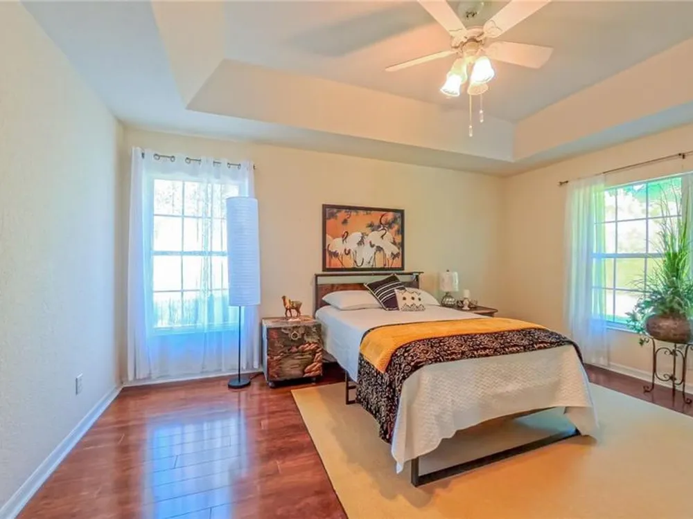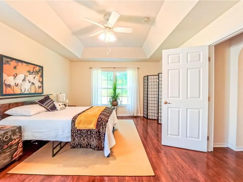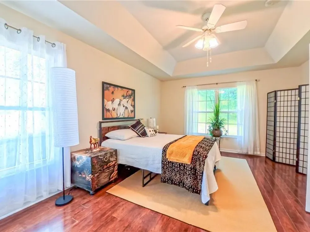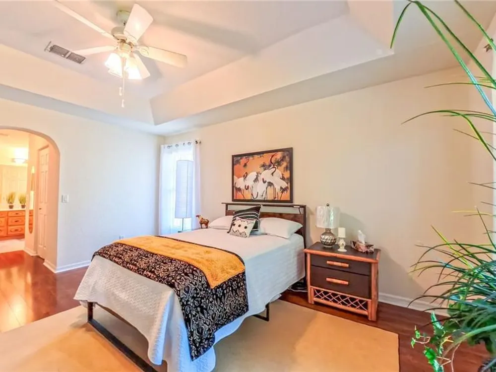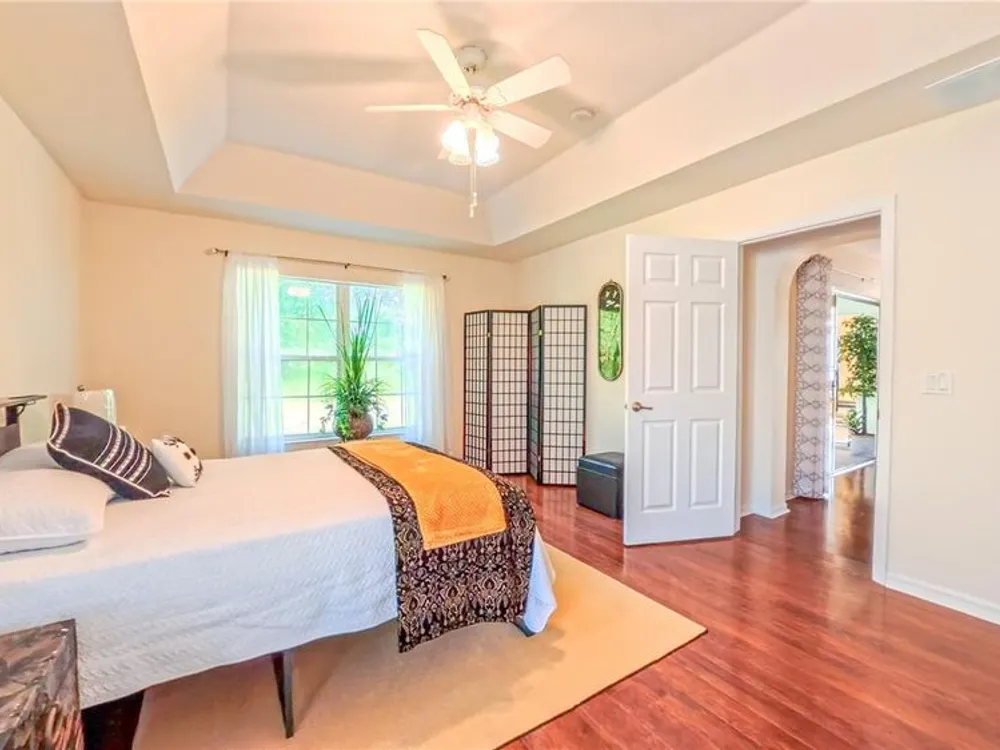 - Ceiling Fan(s), Eat-in Kitchen, Main Level Primary, Stone Counters, Tray Ceiling(s), Walk-In Closet(s), Window Treatments