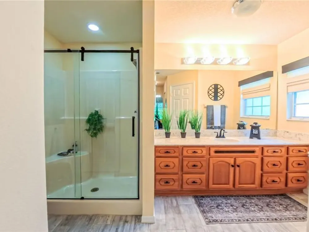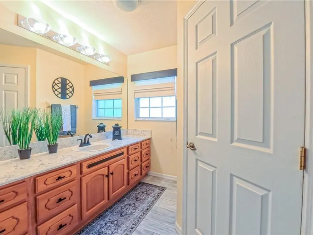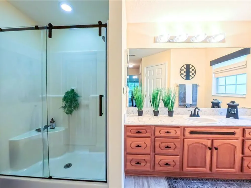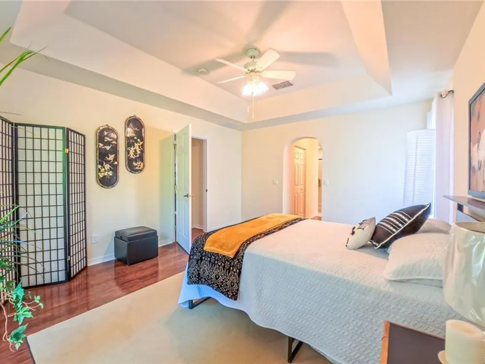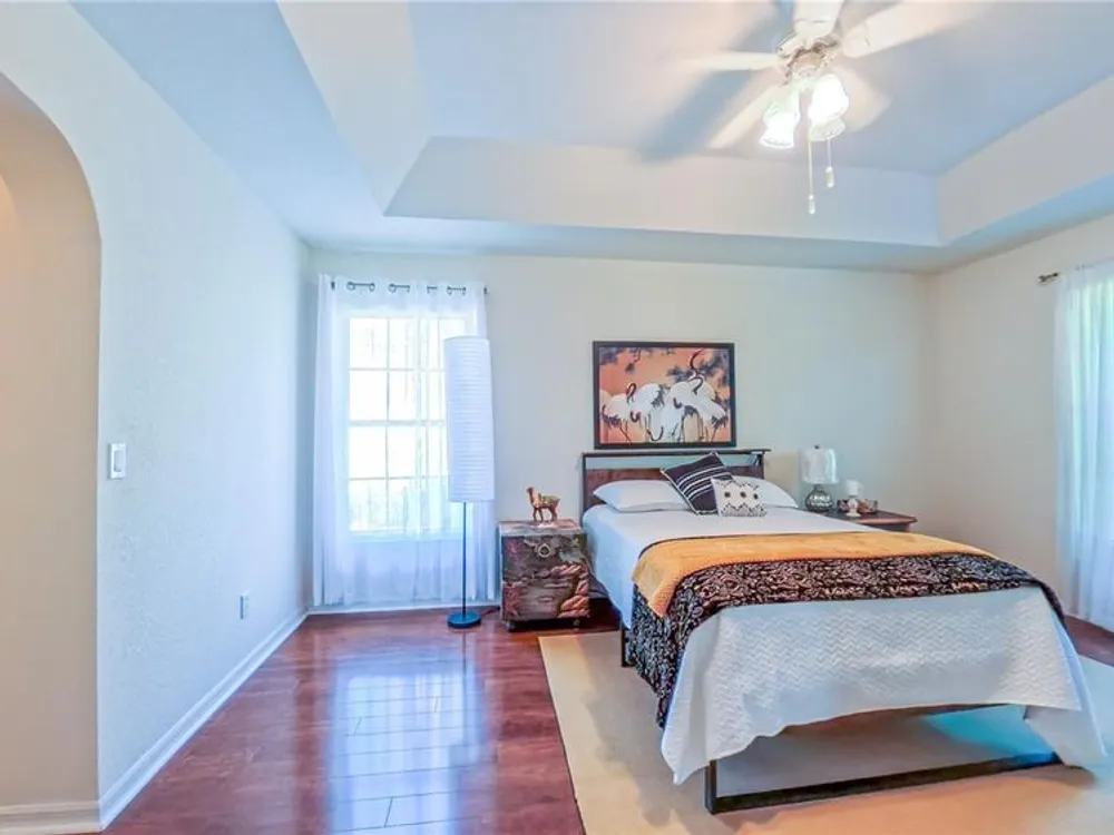 - Ceiling Fan(s), Eat-in Kitchen, Main Level Primary, Stone Counters, Tray Ceiling(s), Walk-In Closet(s), Window Treatments